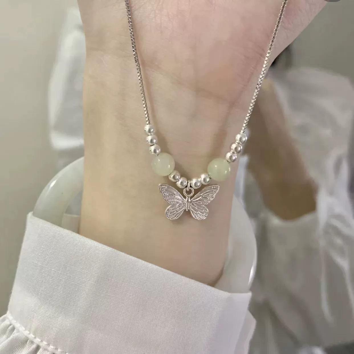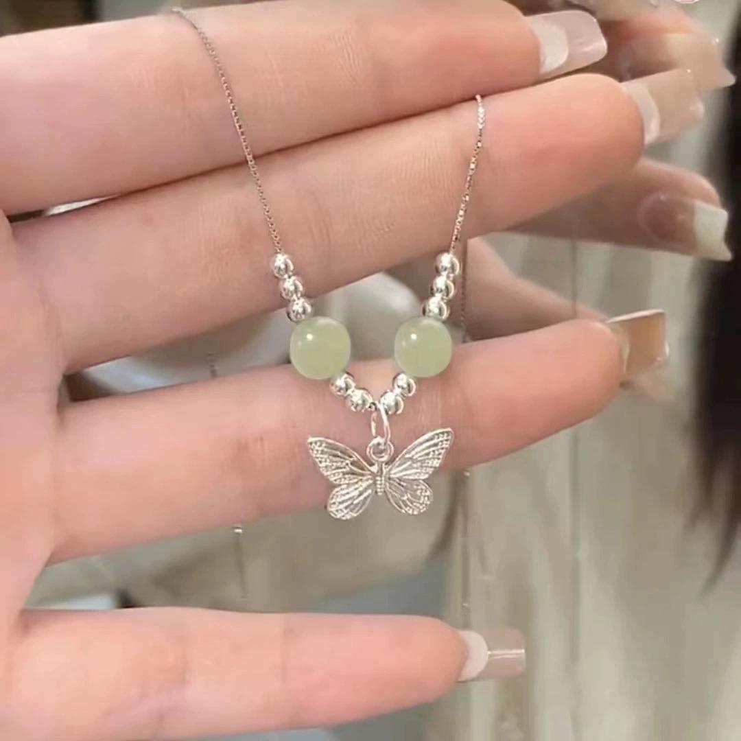 Green bead butterfly necklace