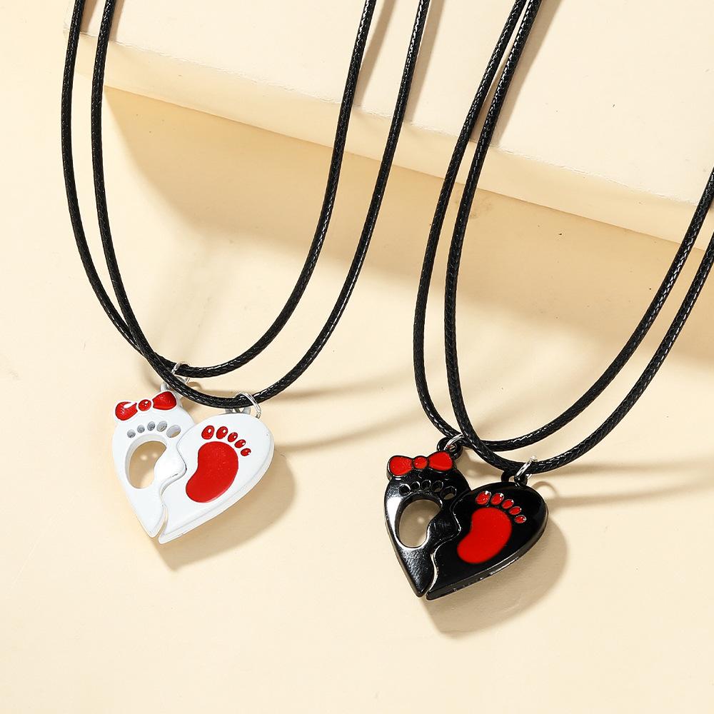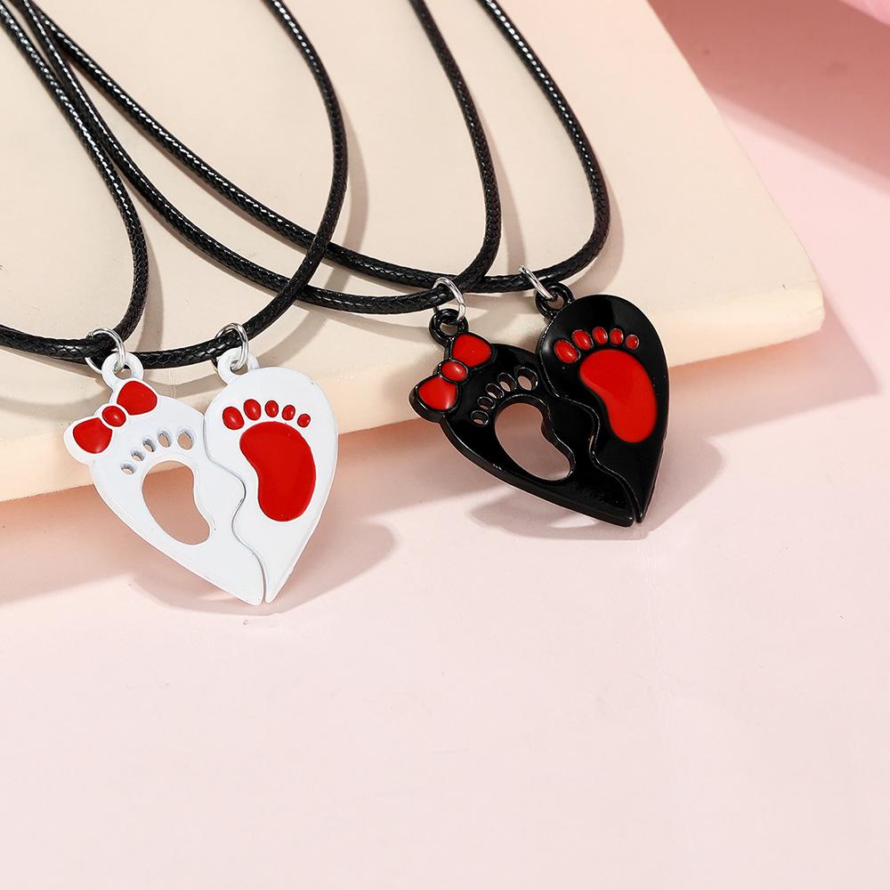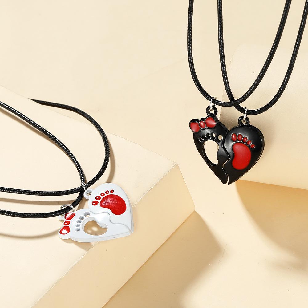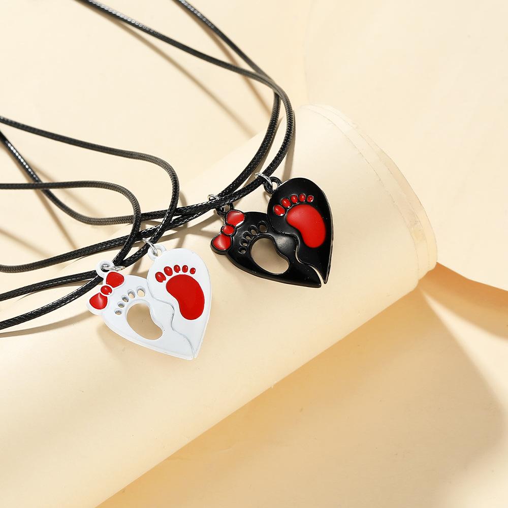 Collar con colgante de aleación de diamantes para amantes de las huellas en forma de corazón, estilo europeo y americano, transfronterizo, regalo de San Valentín al por mayor