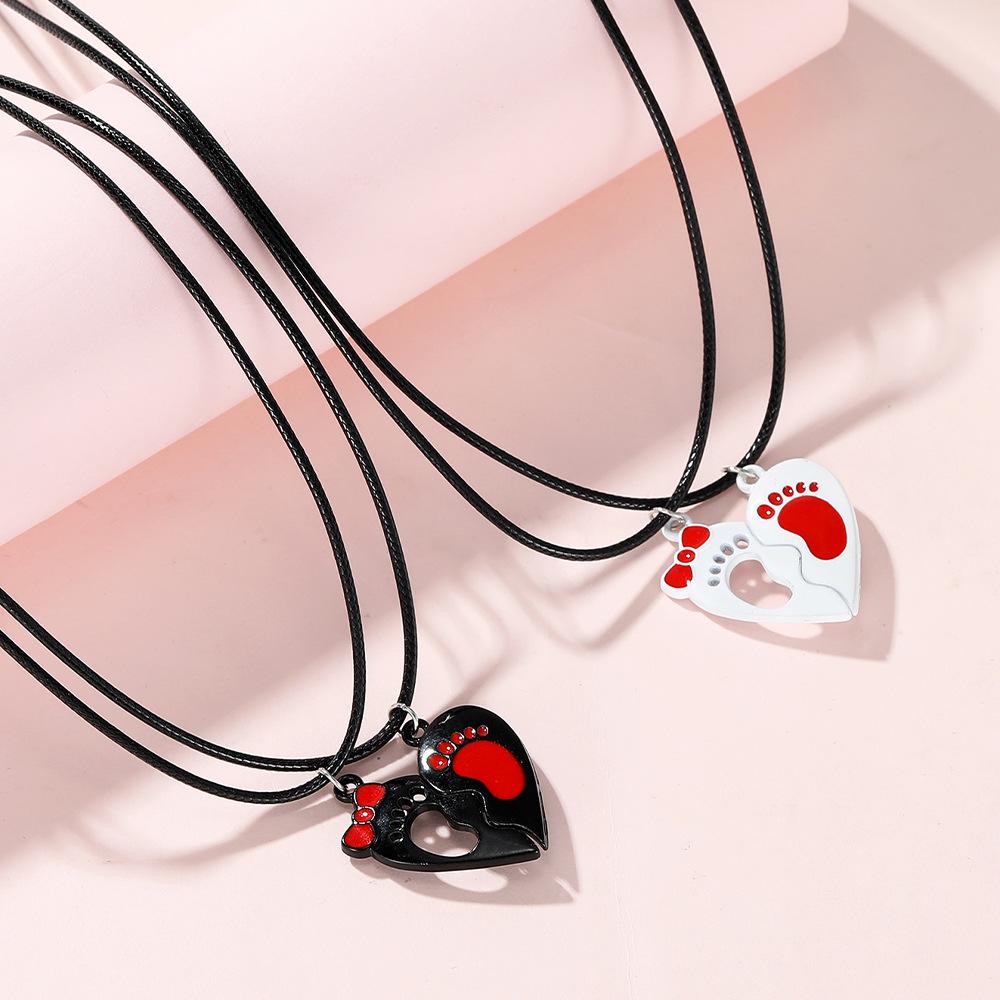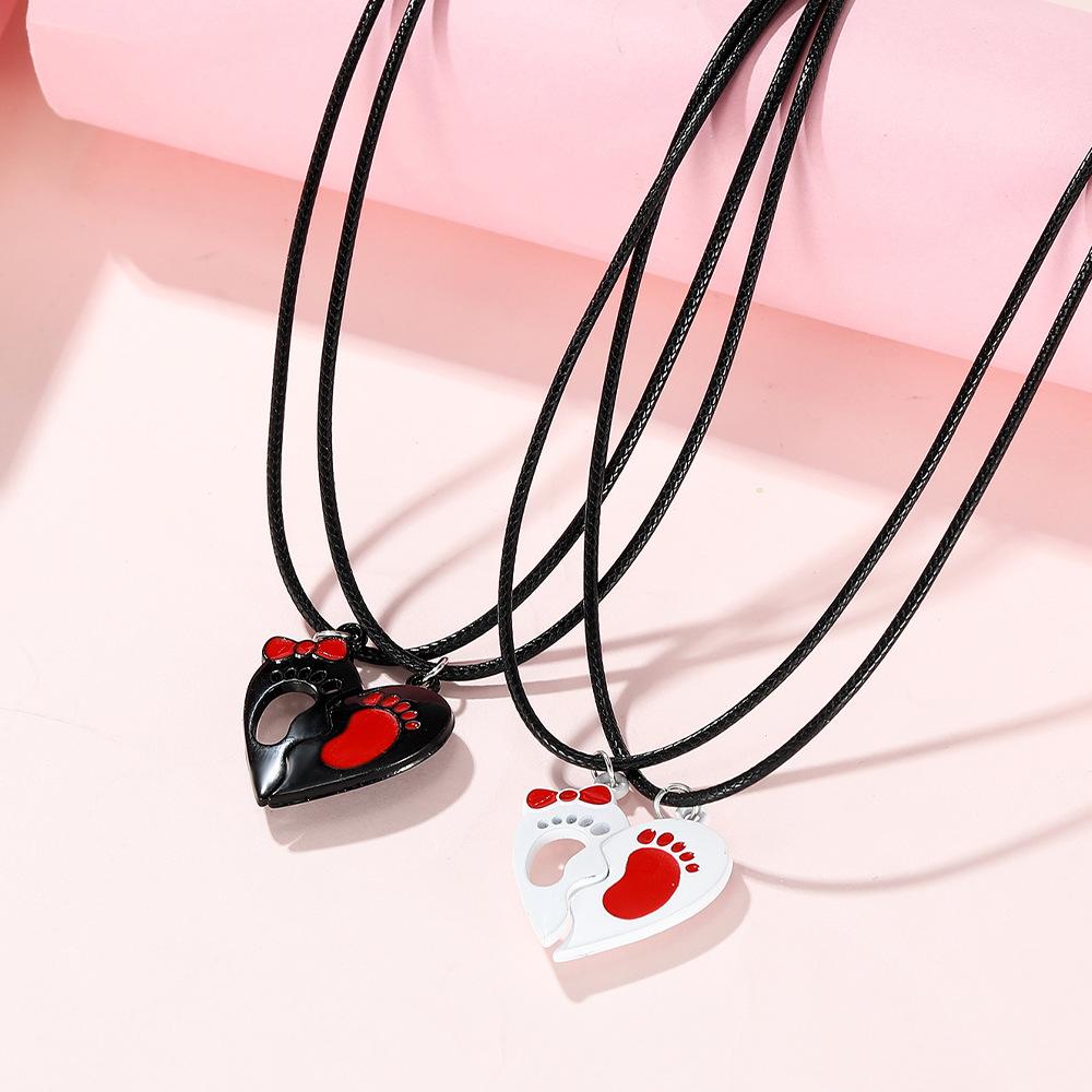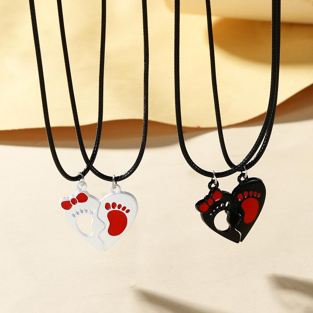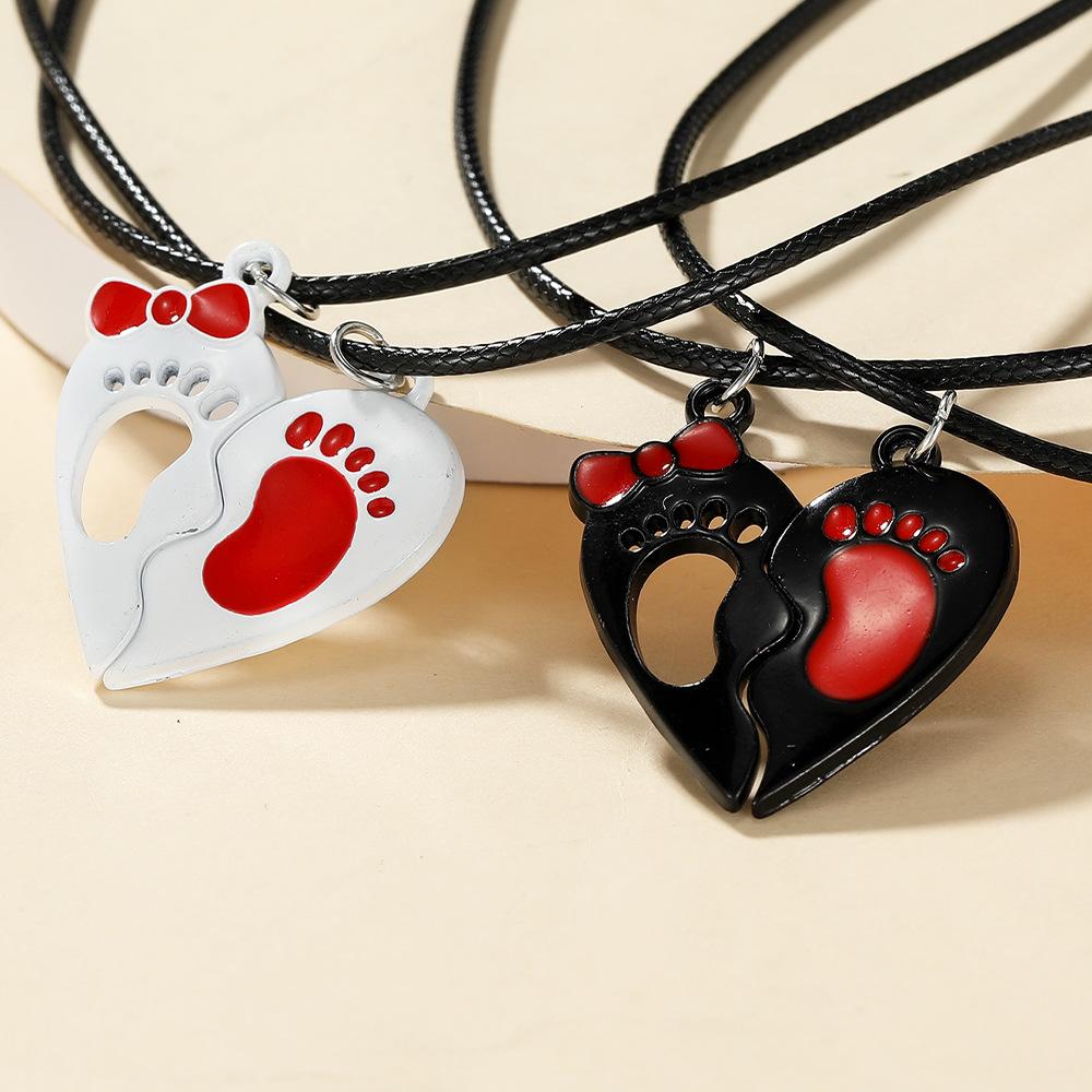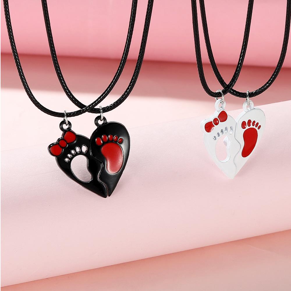 Collar con colgante de aleación de diamantes para amantes de las huellas en forma de corazón, estilo europeo y americano, transfronterizo, regalo de San Valentín al por mayor