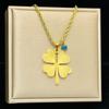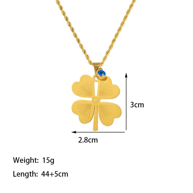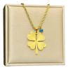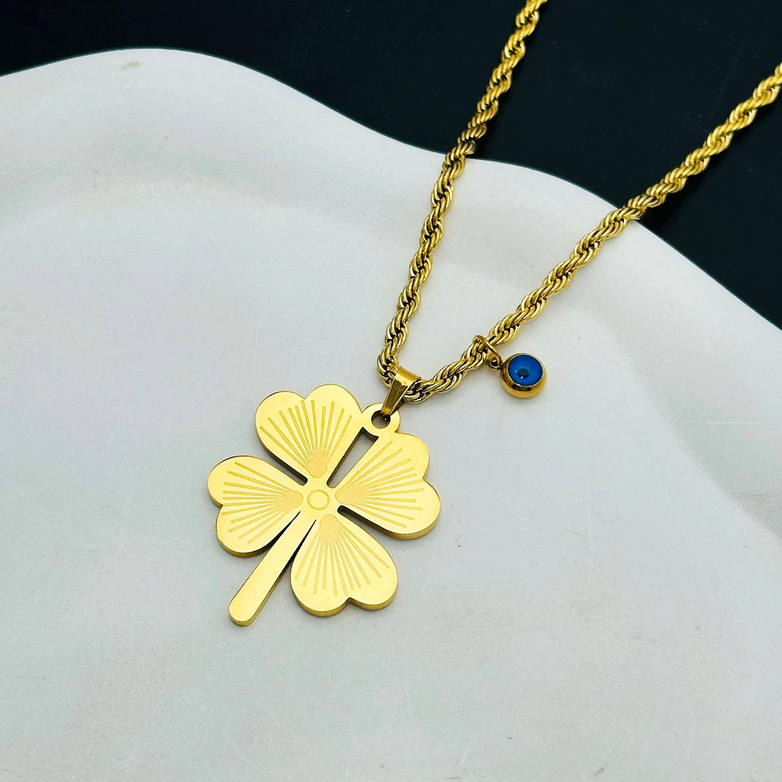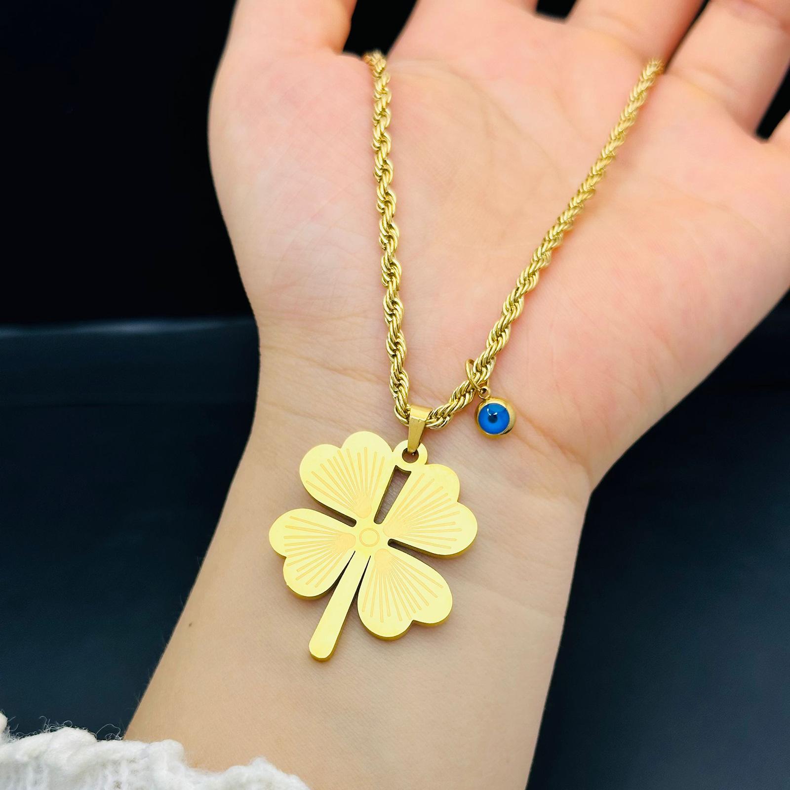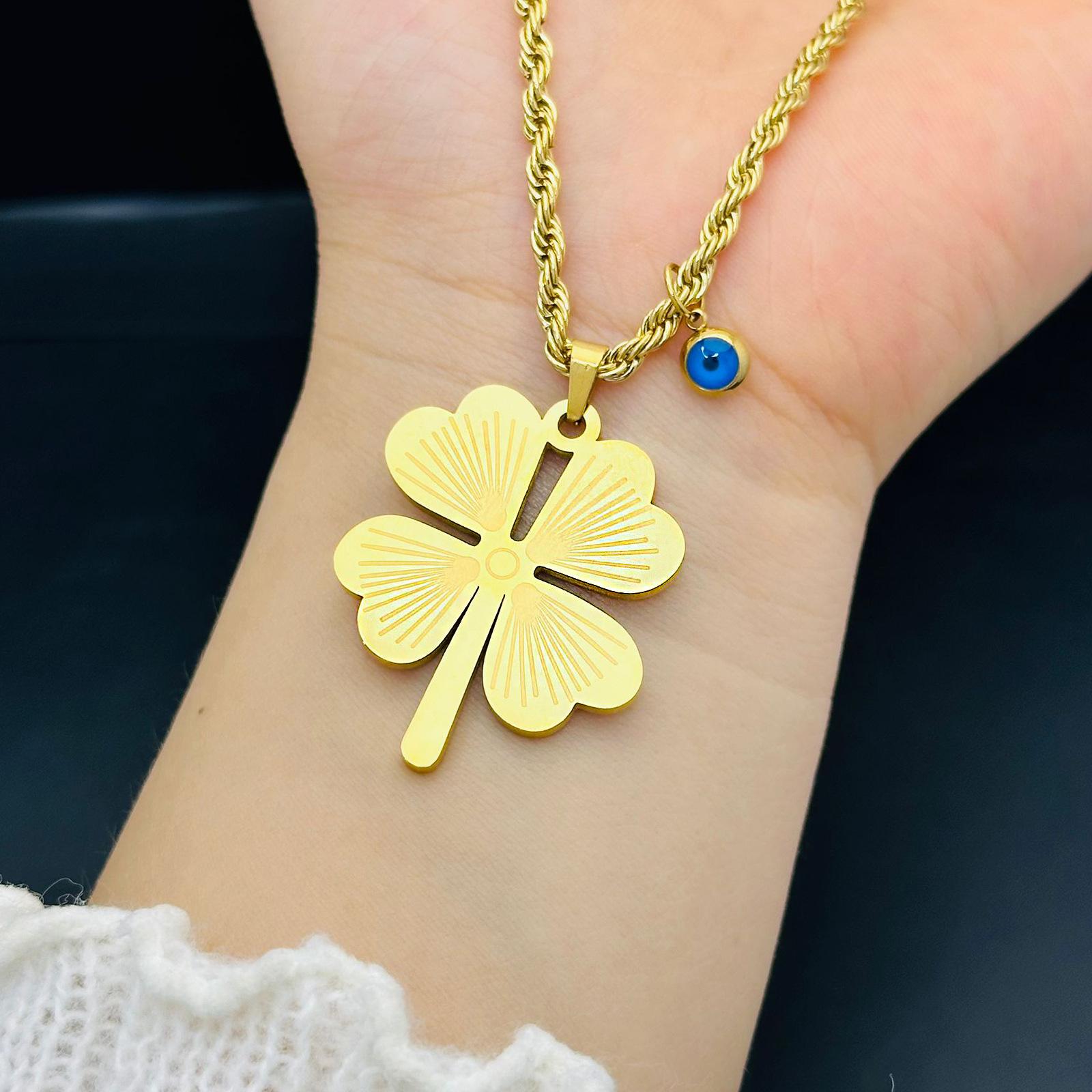 Collar de acero inoxidable con colgante de trébol de cuatro hojas con flores talladas que no se desvanecen en la frontera entre Europa y Estados Unidos.