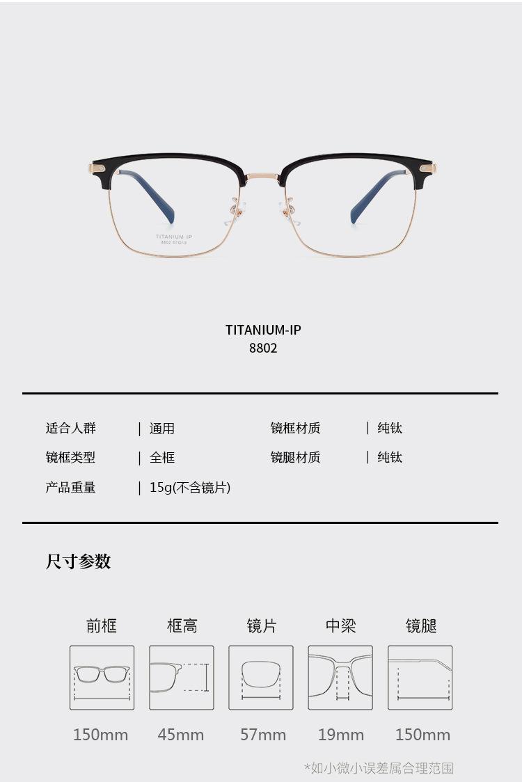 [Mismo estilo que Wang Hedi] Montura de gafas para miopía con diseño de tiranosaurio, montura de cejas para hombre con alambre dorado, combinable con monturas para mujer BT6026