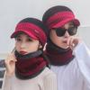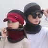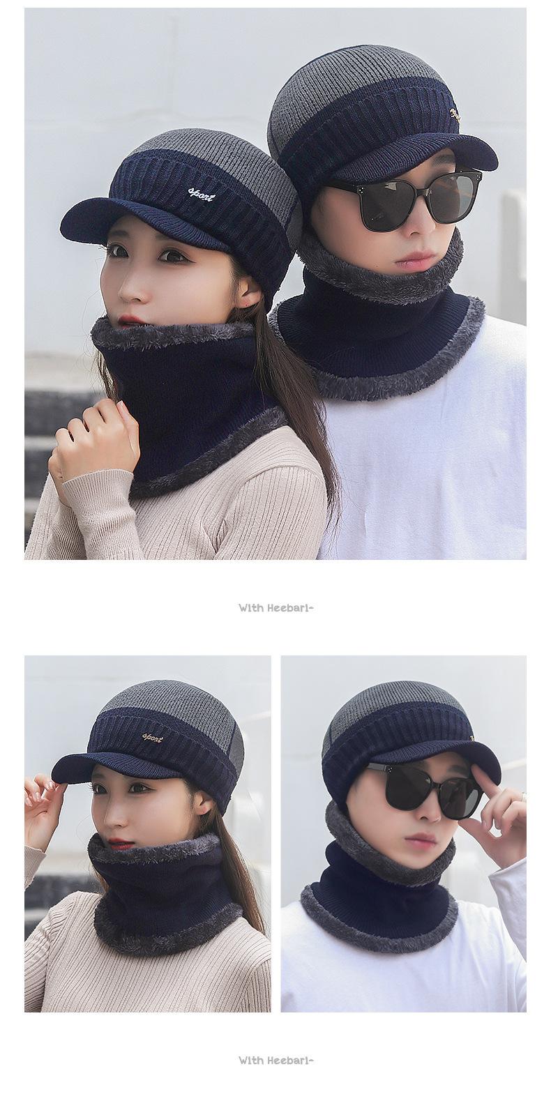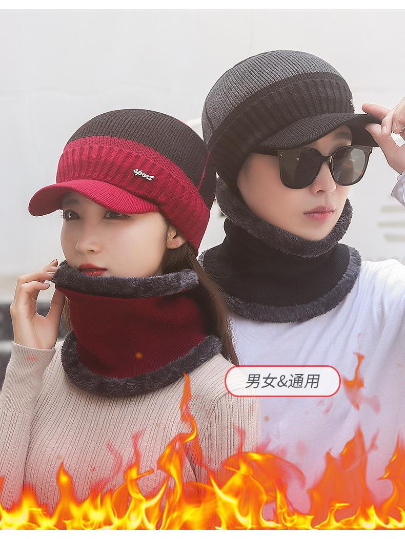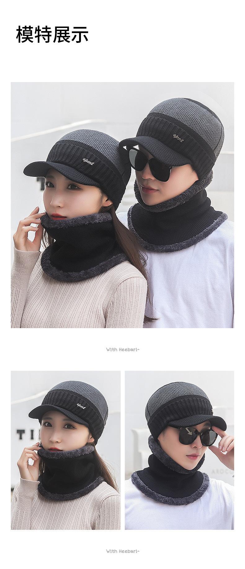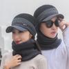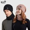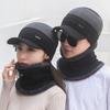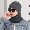 Conjunto de dos piezas de gorro y bufanda de invierno para hombre y mujer, ideal para ciclismo al aire libre, gorro de punto resistente al frío y gorro de lana con cuello de terciopelo.