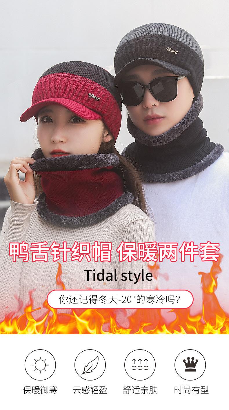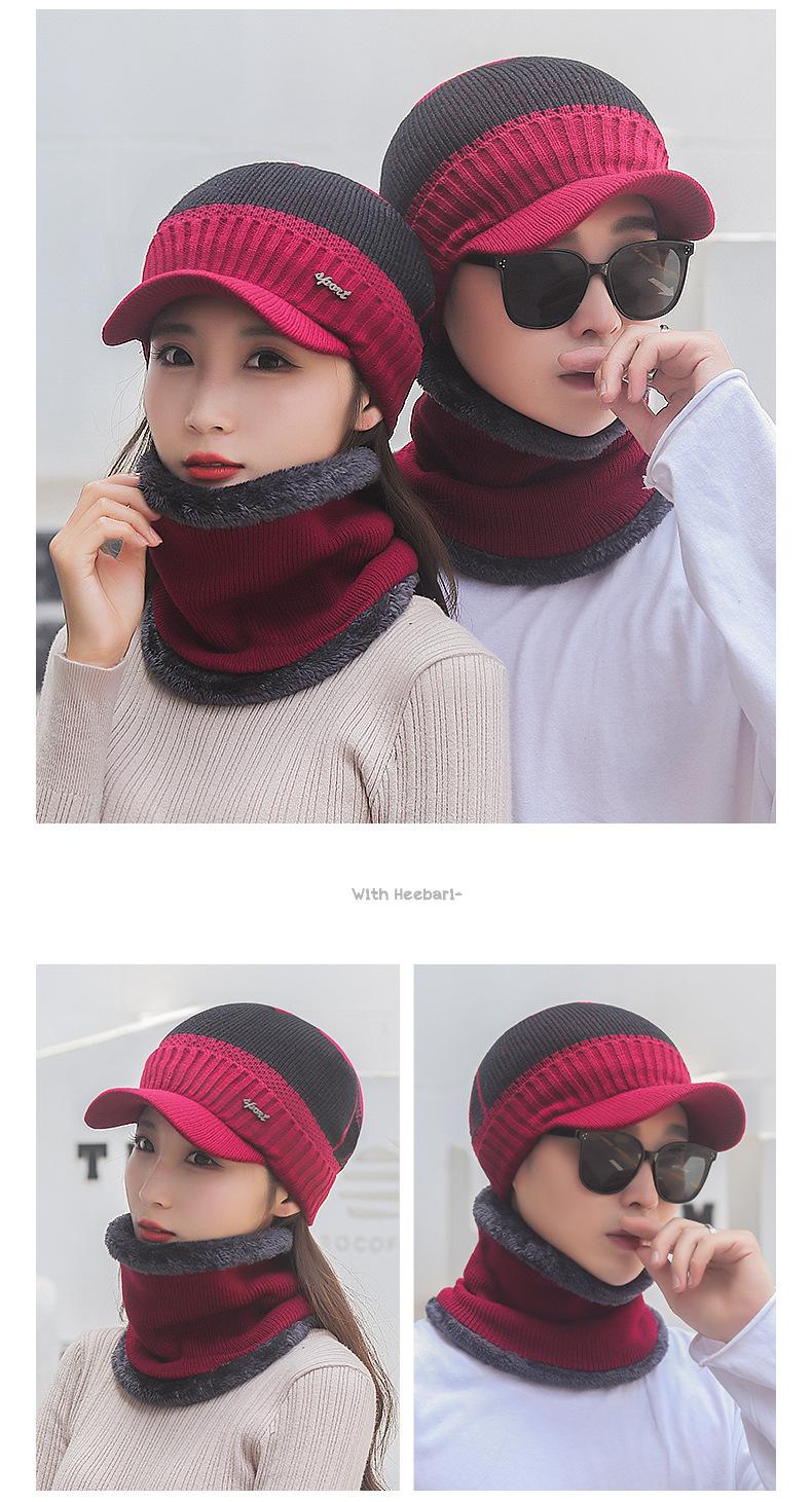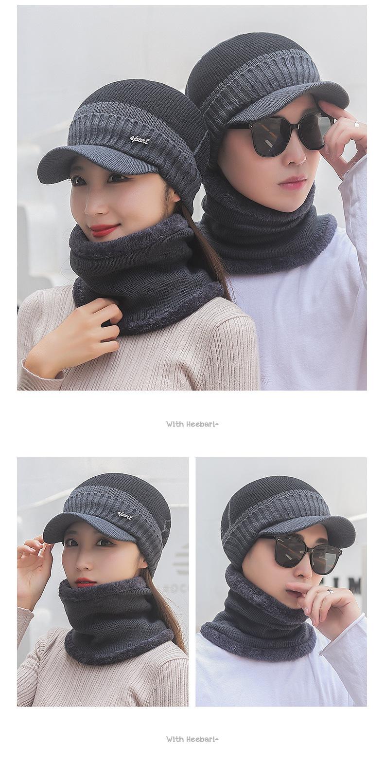 Conjunto de dos piezas de gorro y bufanda de invierno para hombre y mujer, ideal para ciclismo al aire libre, gorro de punto resistente al frío y gorro de lana con cuello de terciopelo.