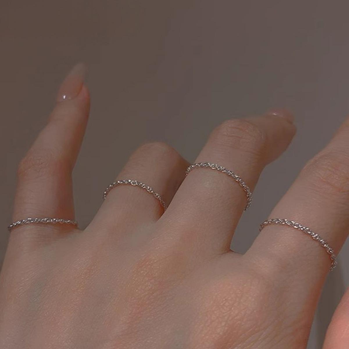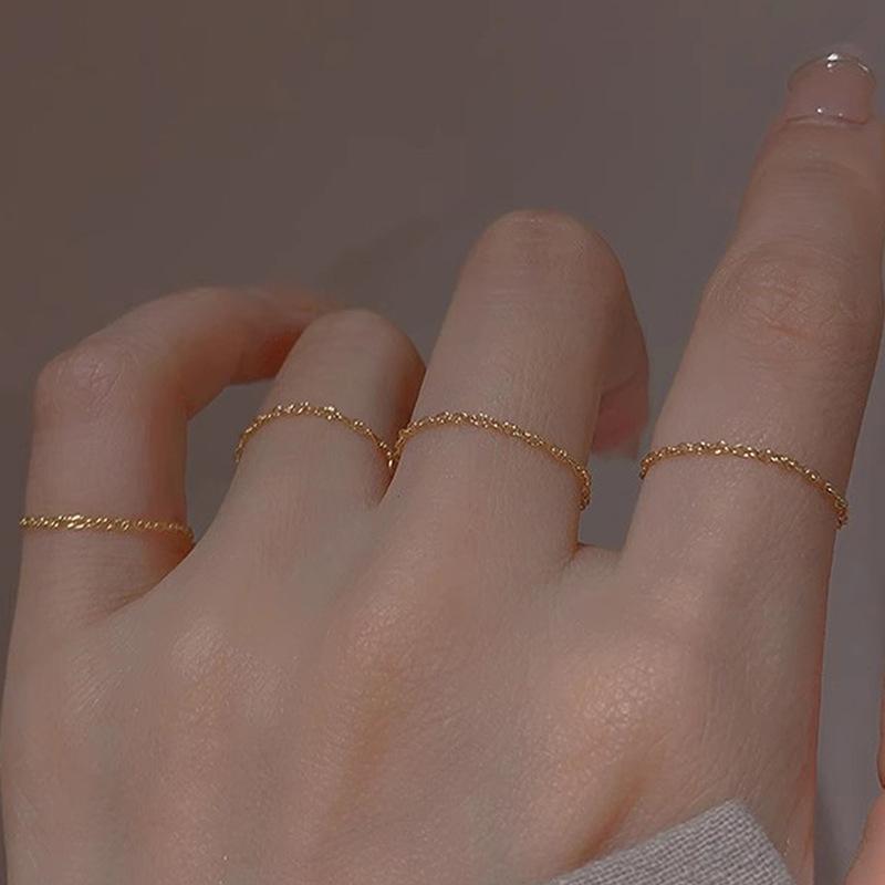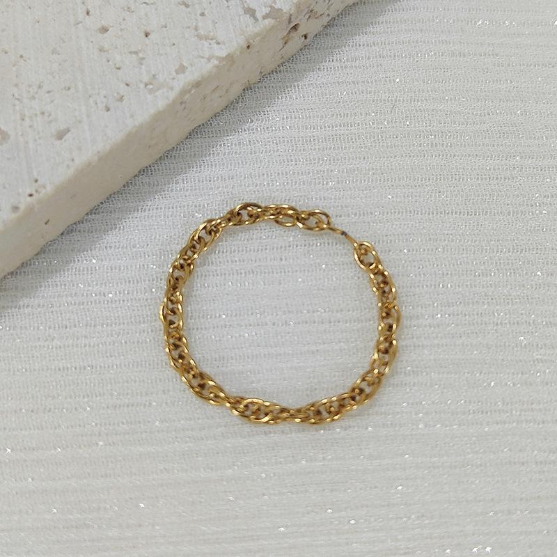 Anillo de cadena con ondas de agua y patrón de ondas doradas de acero inoxidable apilado múltiple con personalidad europea y americana, adecuado para hombres y mujeres.