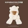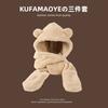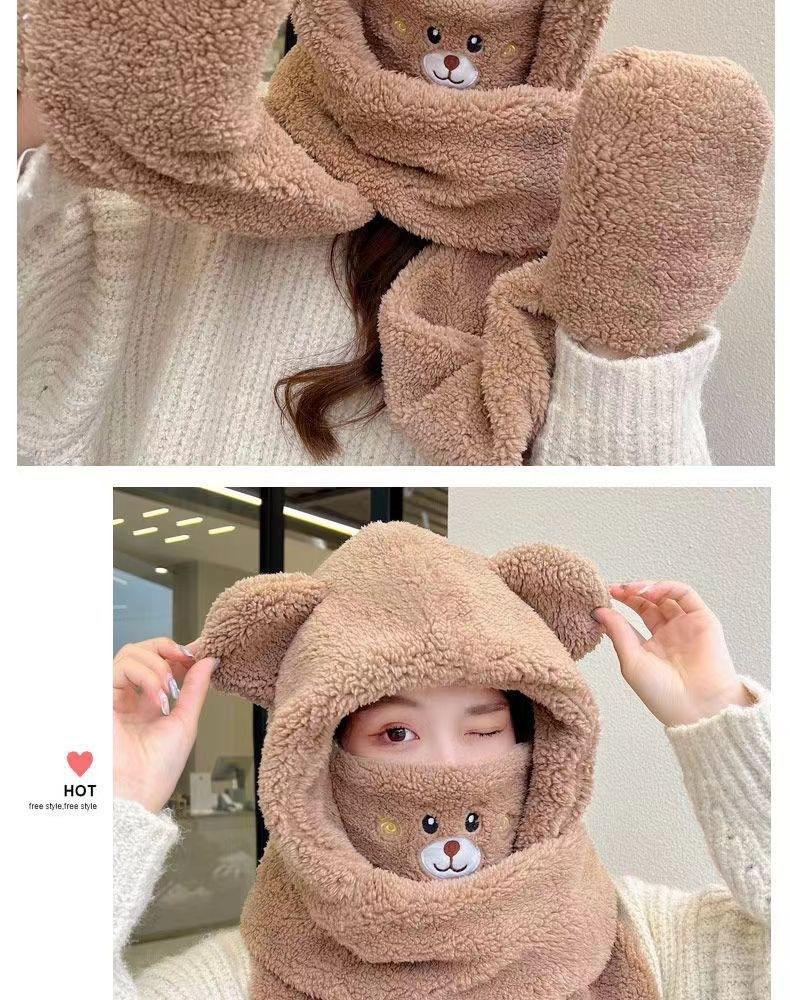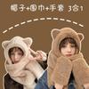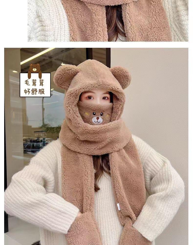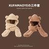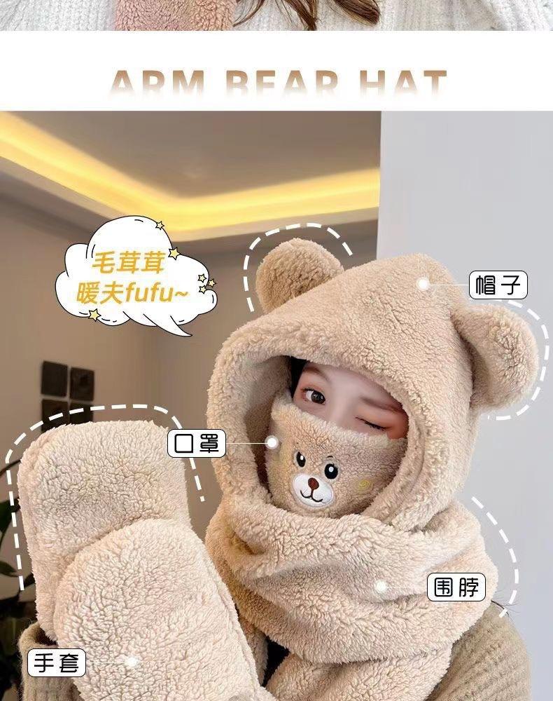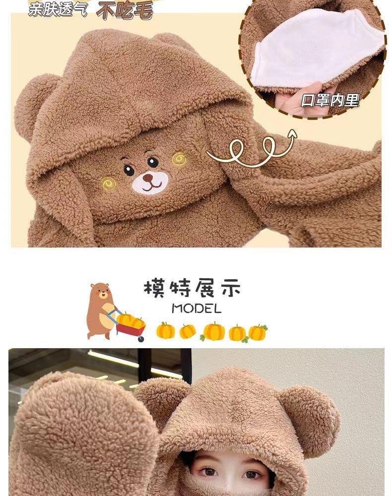 Gorro cálido todo en uno para adultos, bonito gorro de felpa para exteriores con forro polar y capucha de oso, estilo coreano, todo en uno, cuatro en uno