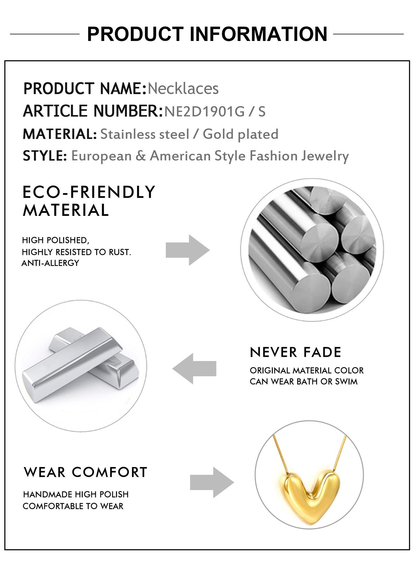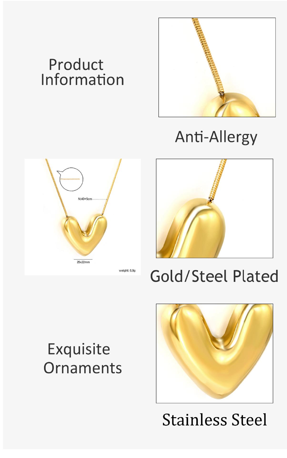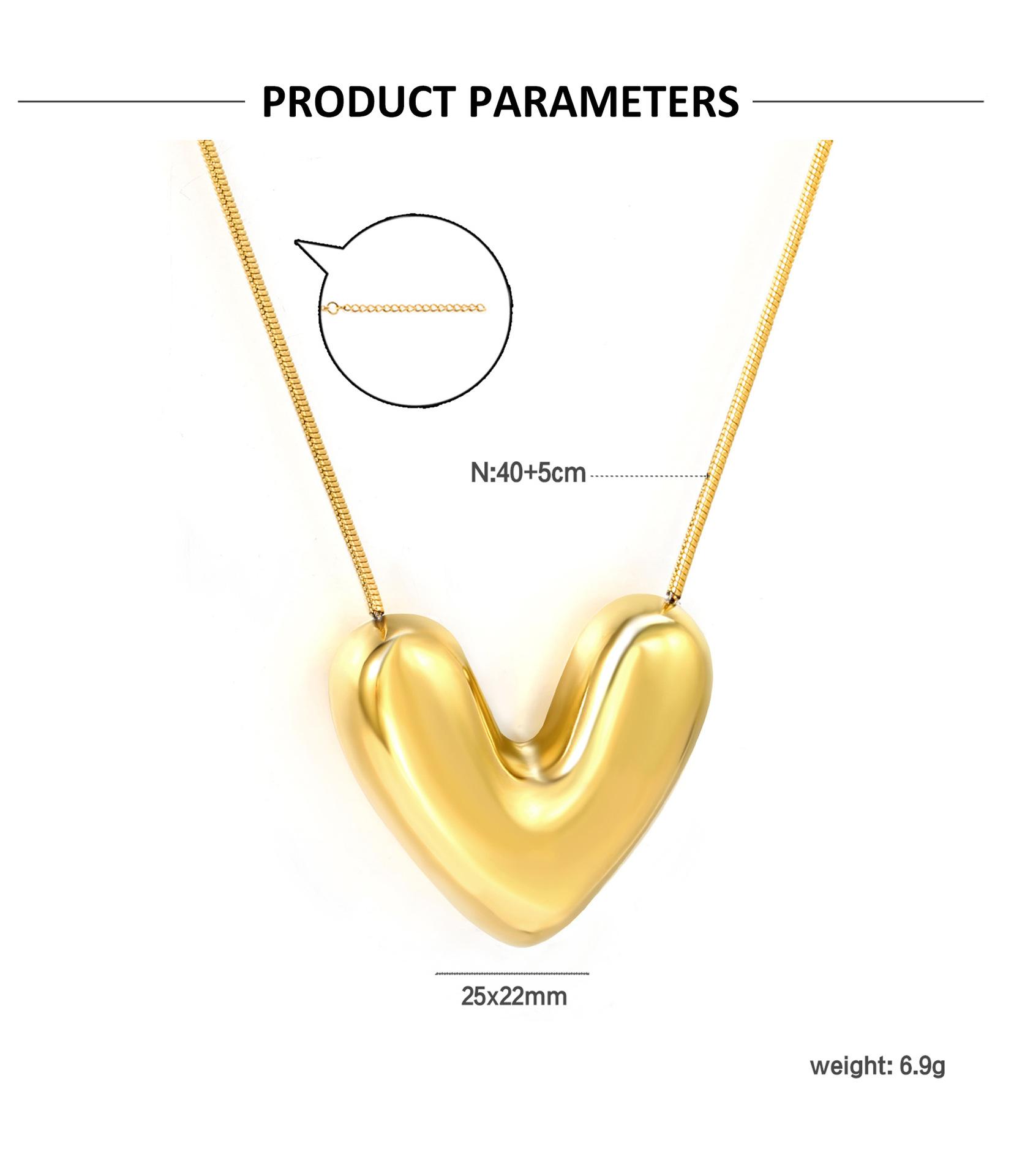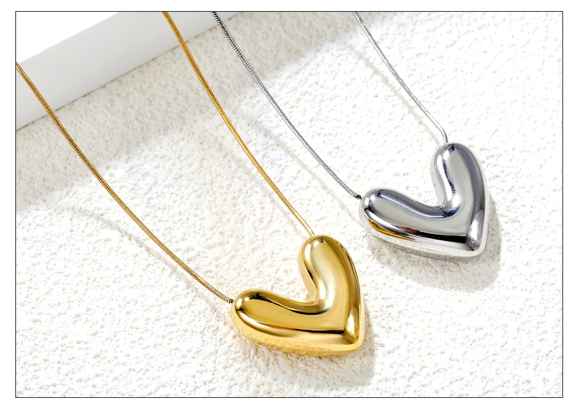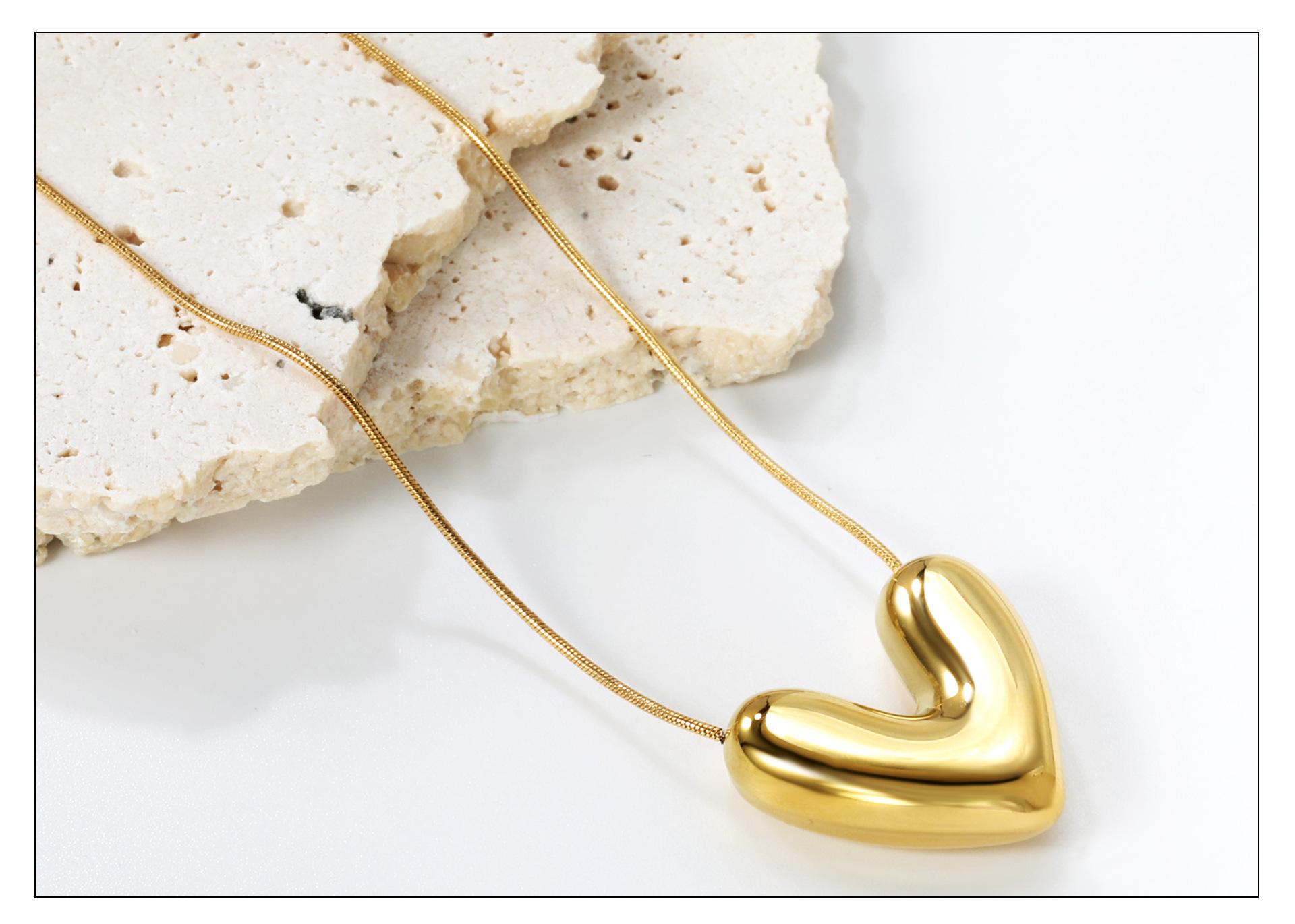 Popular Diseño de Collar de Corazón Transfronterizo, Colgante Personalizado y Versátil en Forma de Corazón Galvanizado Oro de 18K Collar de Acero Inoxidable para Mujer