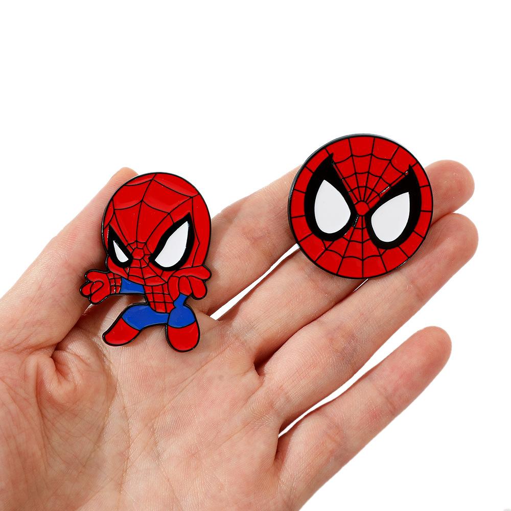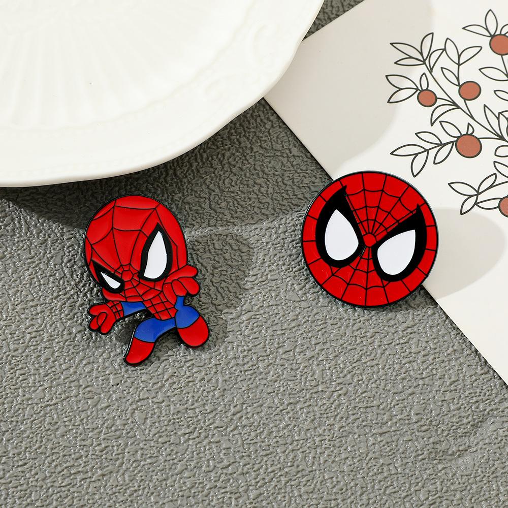 Compra Broche de metal con forma de gota de aceite de personaje de película decorativa con animación de dibujos animados de Spider-Man. Accesorios de aleación. al por mayor en Joom.pro