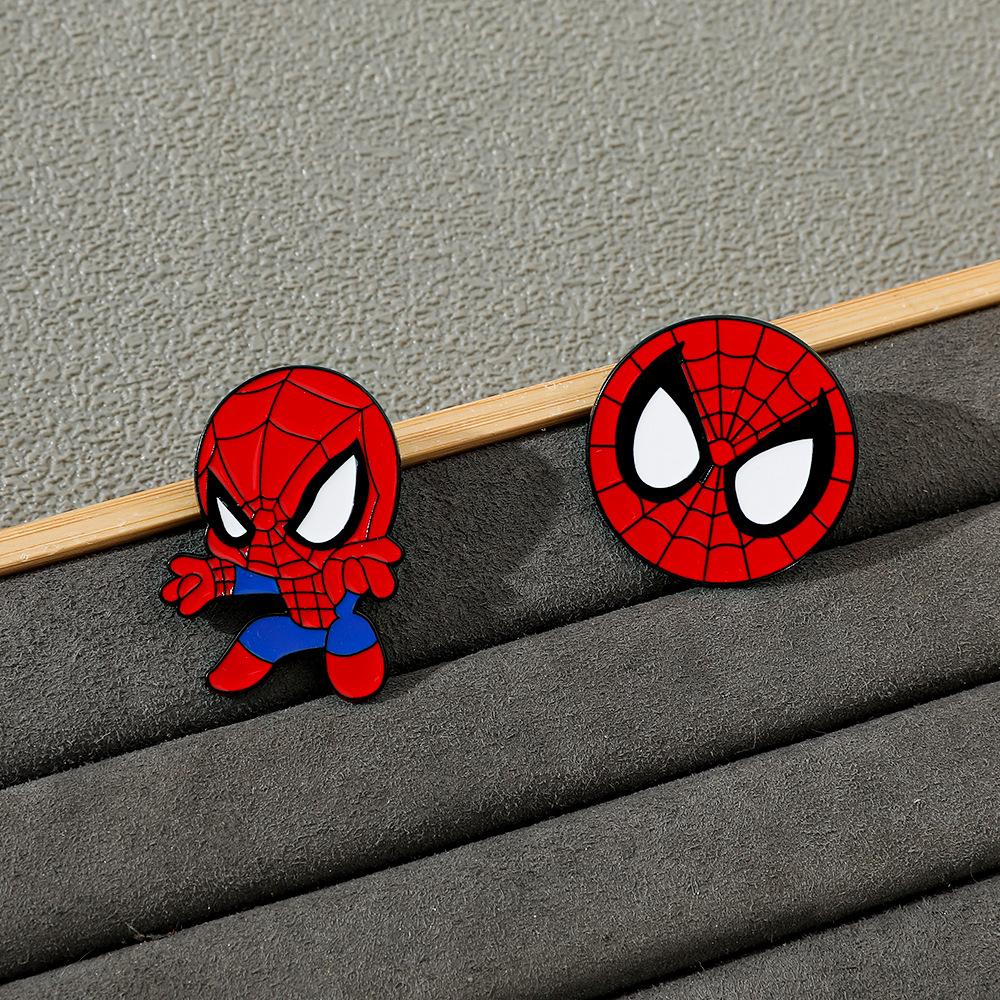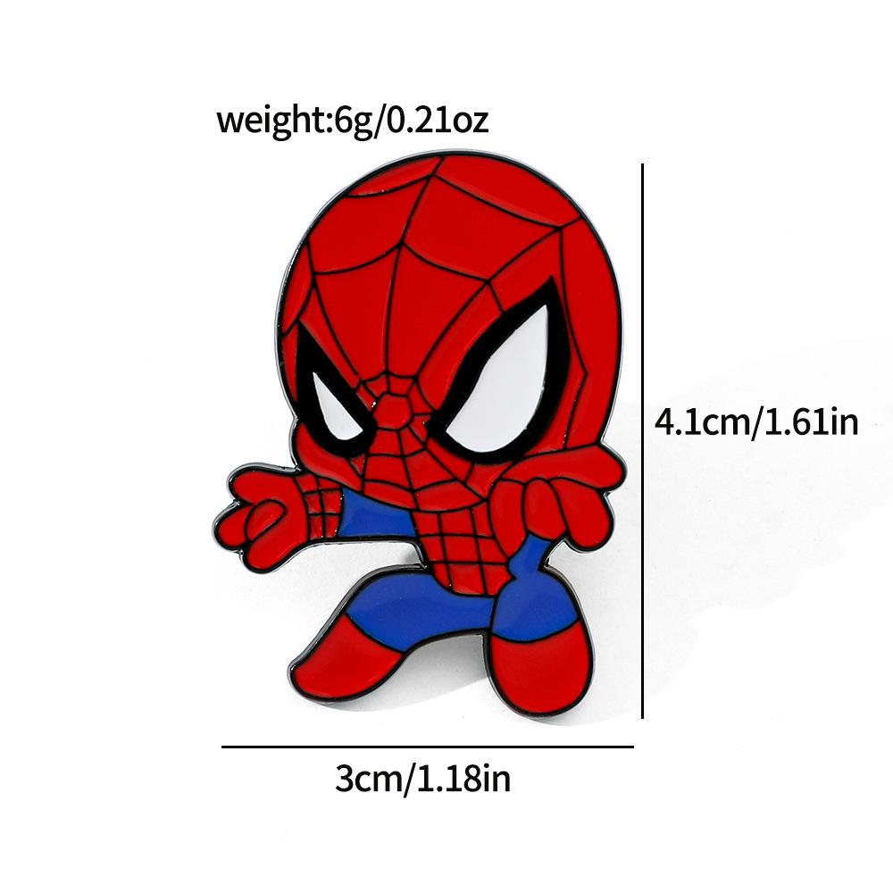 Broche de metal con forma de gota de aceite de personaje de película decorativa con animación de dibujos animados de Spider-Man. Accesorios de aleación.