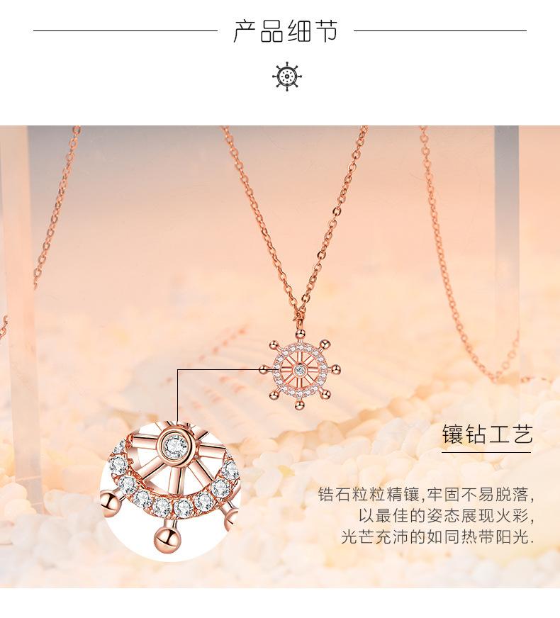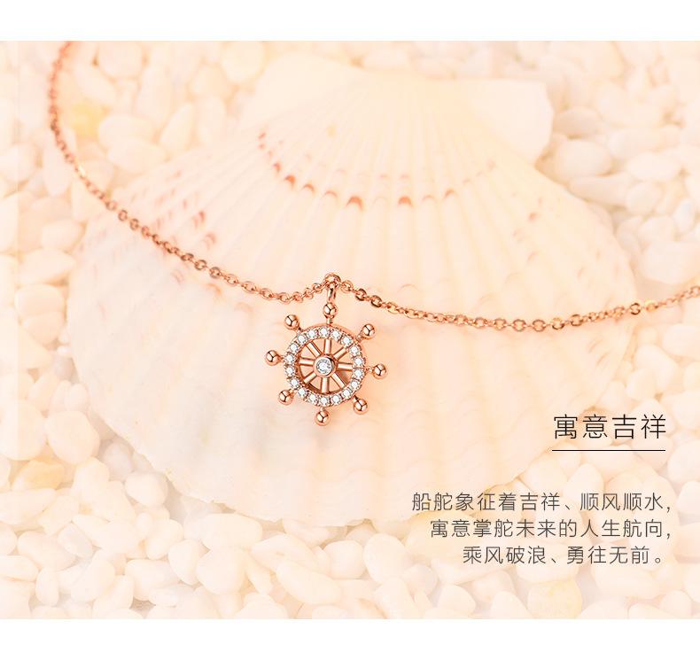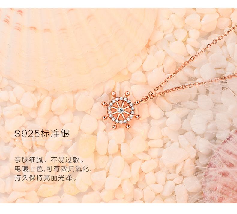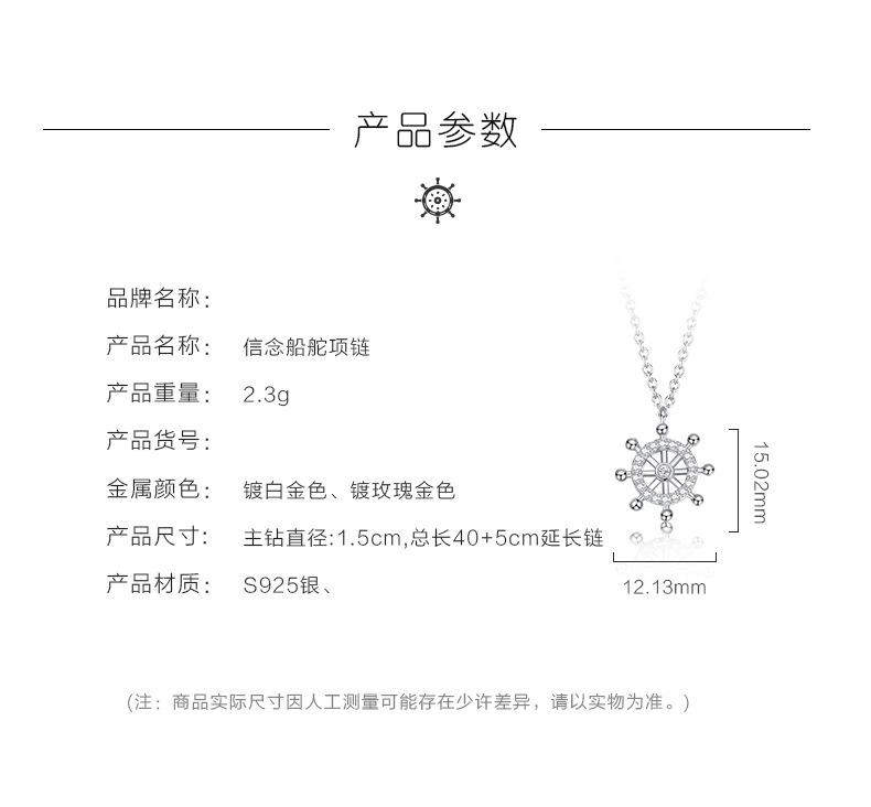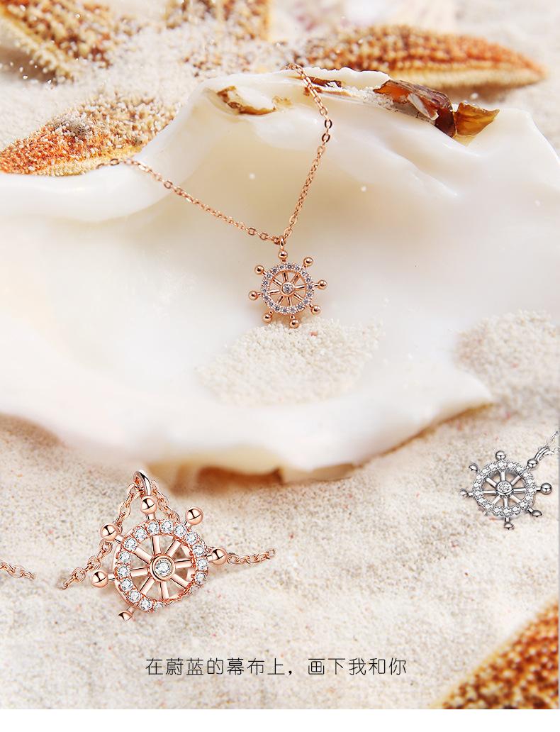 Cadena Clavícula Plata S925 Brújula Timón Simple Plata Esterlina Collar de Mujer Elegante Regalo Día de San Valentín Chino para Novia