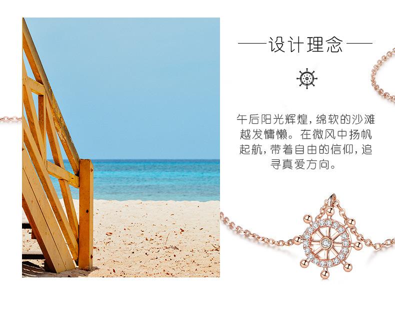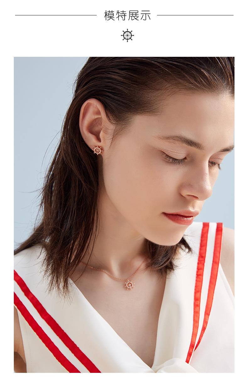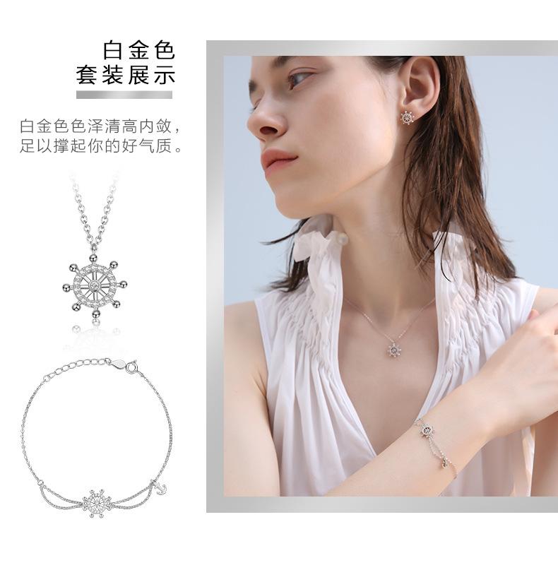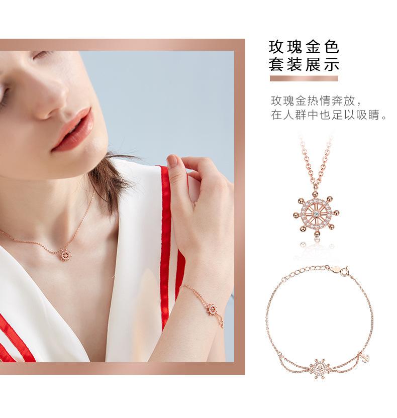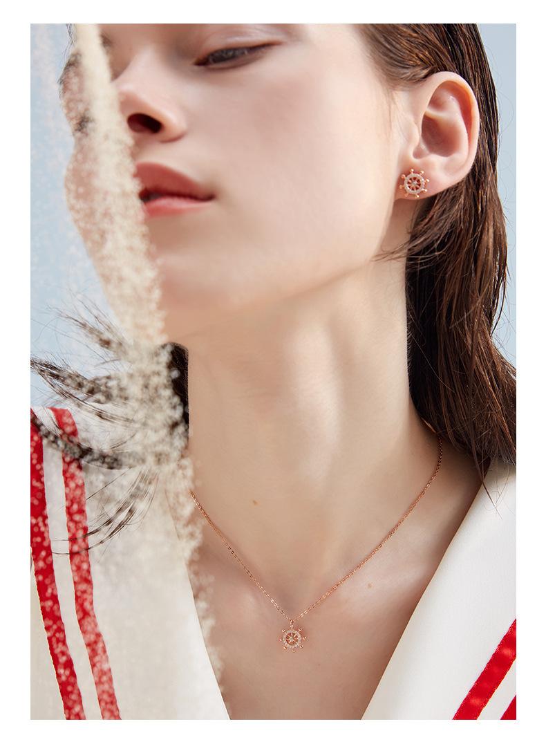 Cadena Clavícula Plata S925 Brújula Timón Simple Plata Esterlina Collar de Mujer Elegante Regalo Día de San Valentín Chino para Novia