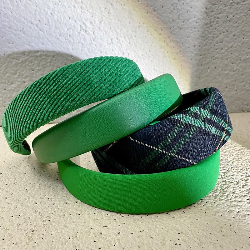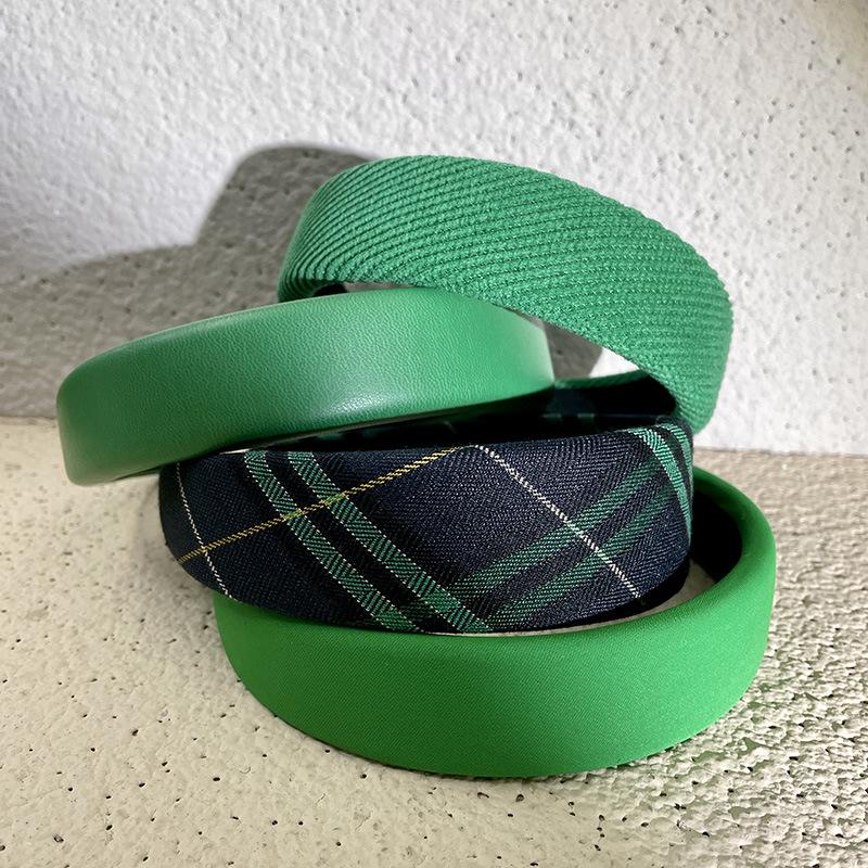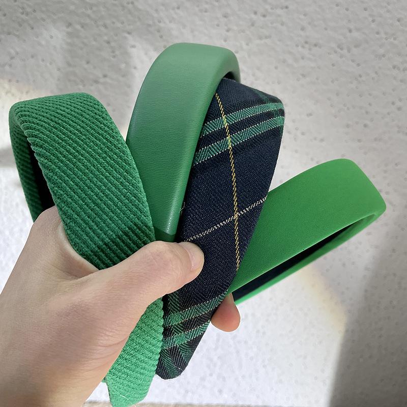 Diadema de Cuadros Verdes con Cráneo Alto Diadema Elegante y a la Moda Cuadros de Cuero PU Ins Estilo Nuevo Coreano Cabello Presionado para Mujeres