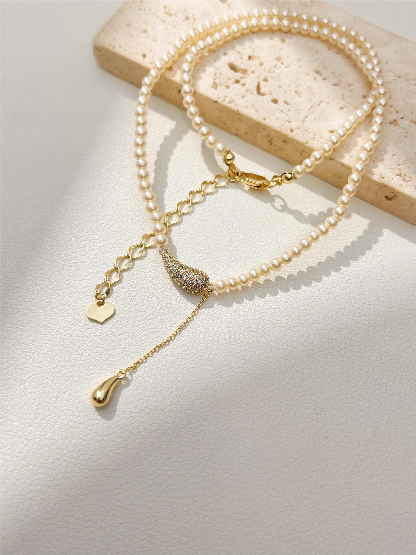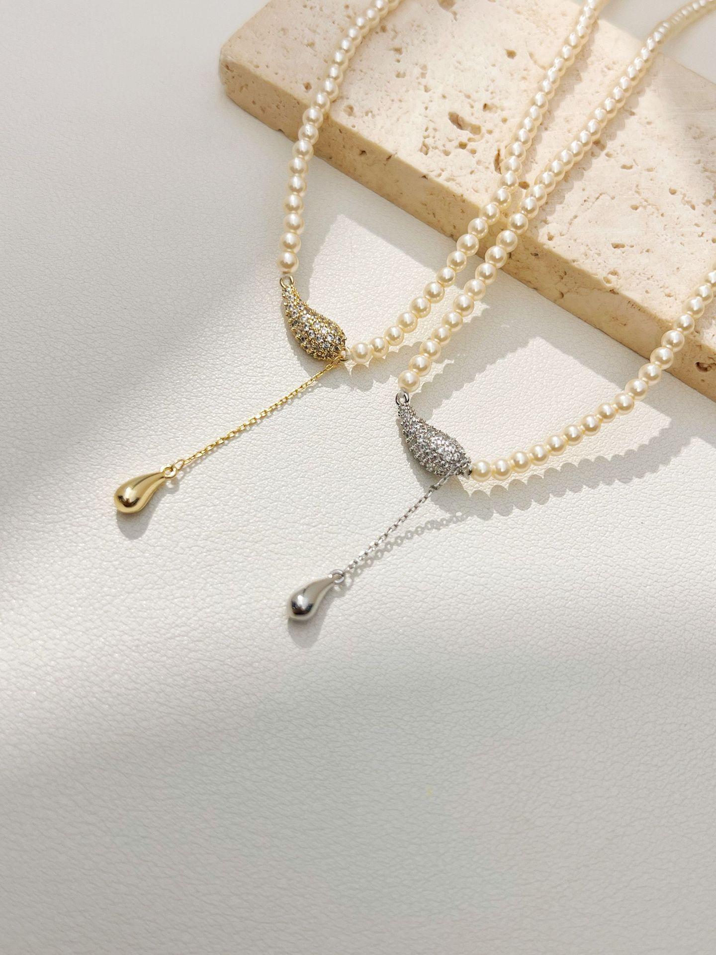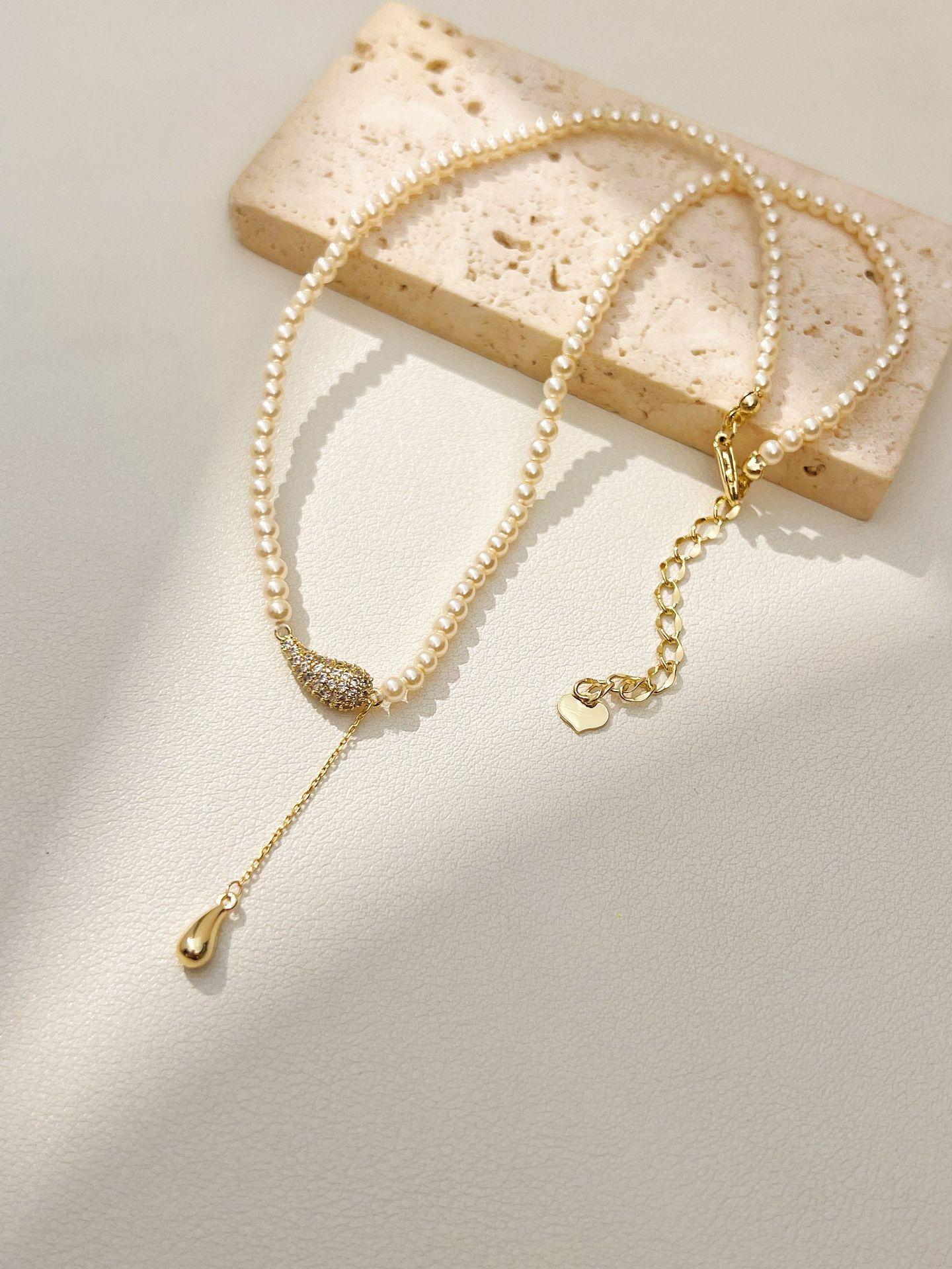 Nuevo Estilo Estilo Lujo Ligero Exquisito Diseño de Collar de Cuentas de Mijote Colgante de Gota de Agua Cadena para Clavícula