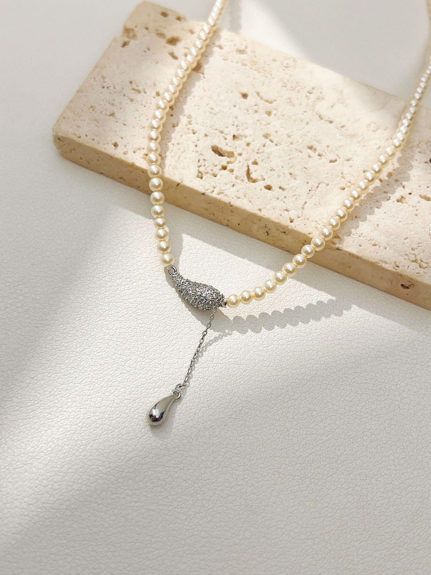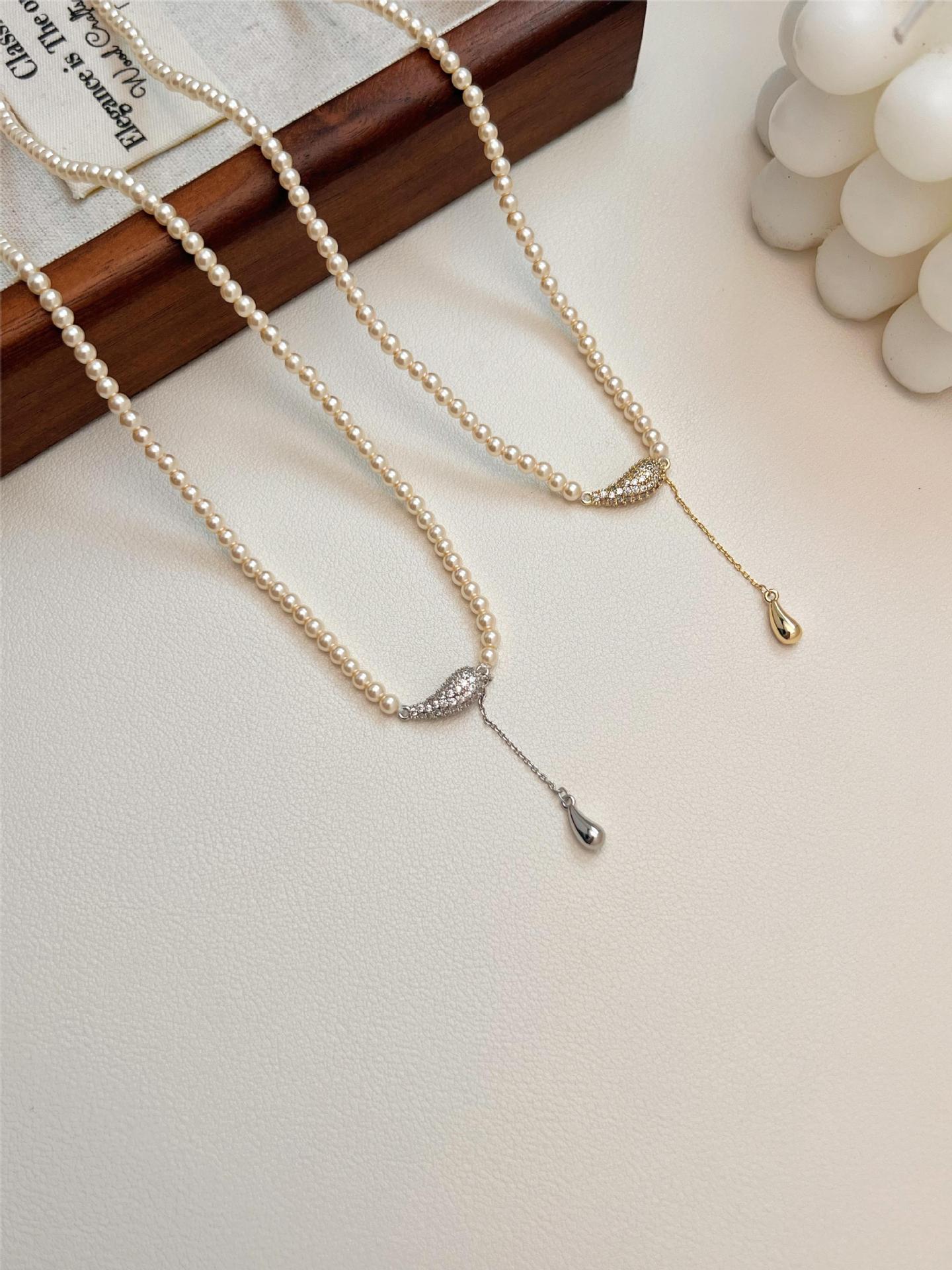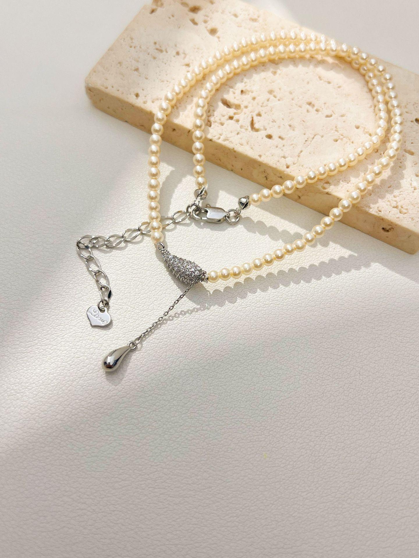 Nuevo Estilo Estilo Lujo Ligero Exquisito Diseño de Collar de Cuentas de Mijote Colgante de Gota de Agua Cadena para Clavícula