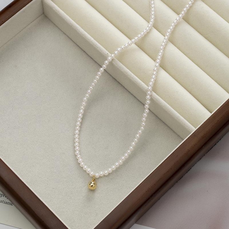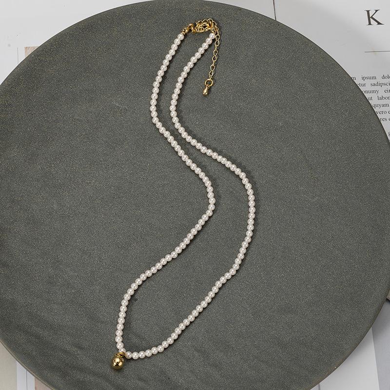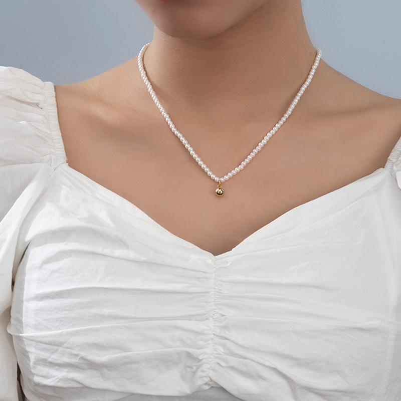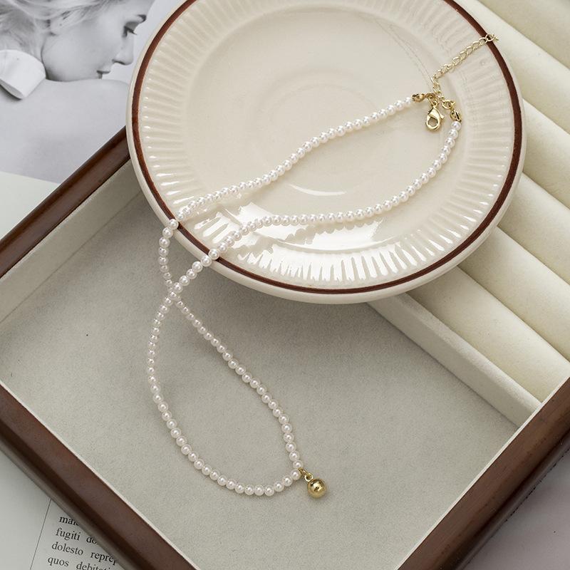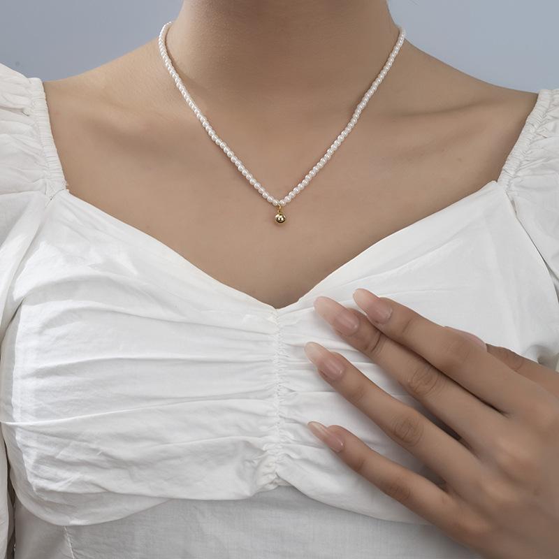 Collar pequeño de cuentas doradas, estilo francés retro de alta gama, con cadena de clavícula de perlas, elegante y combinable, nuevo collar Shijia.