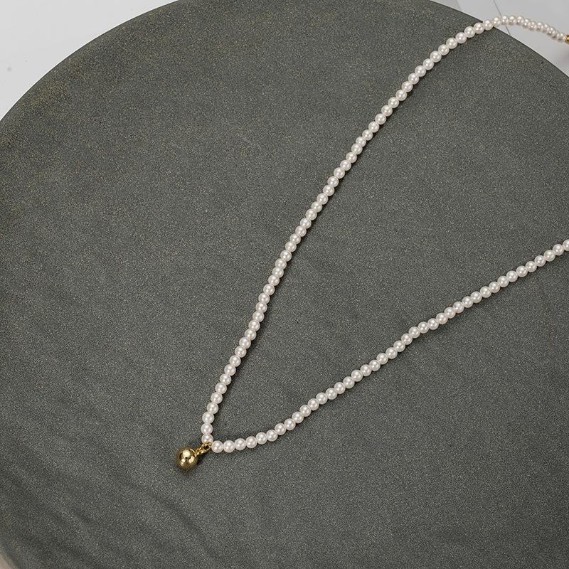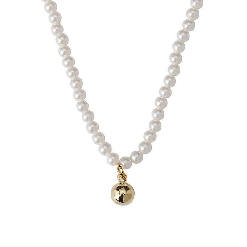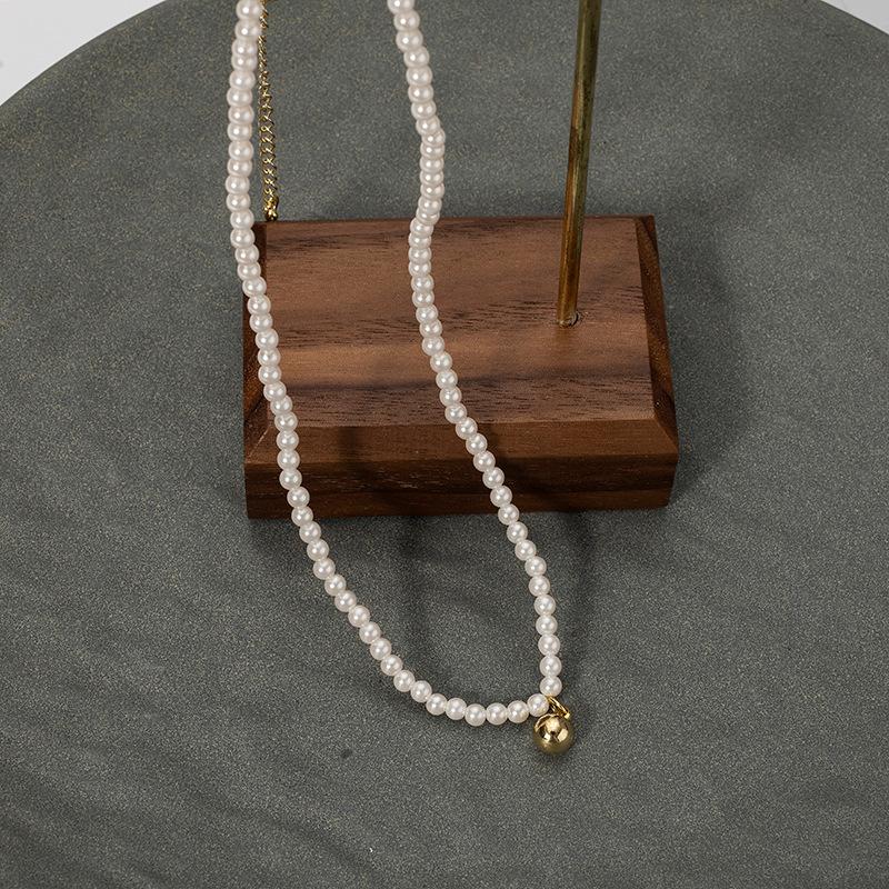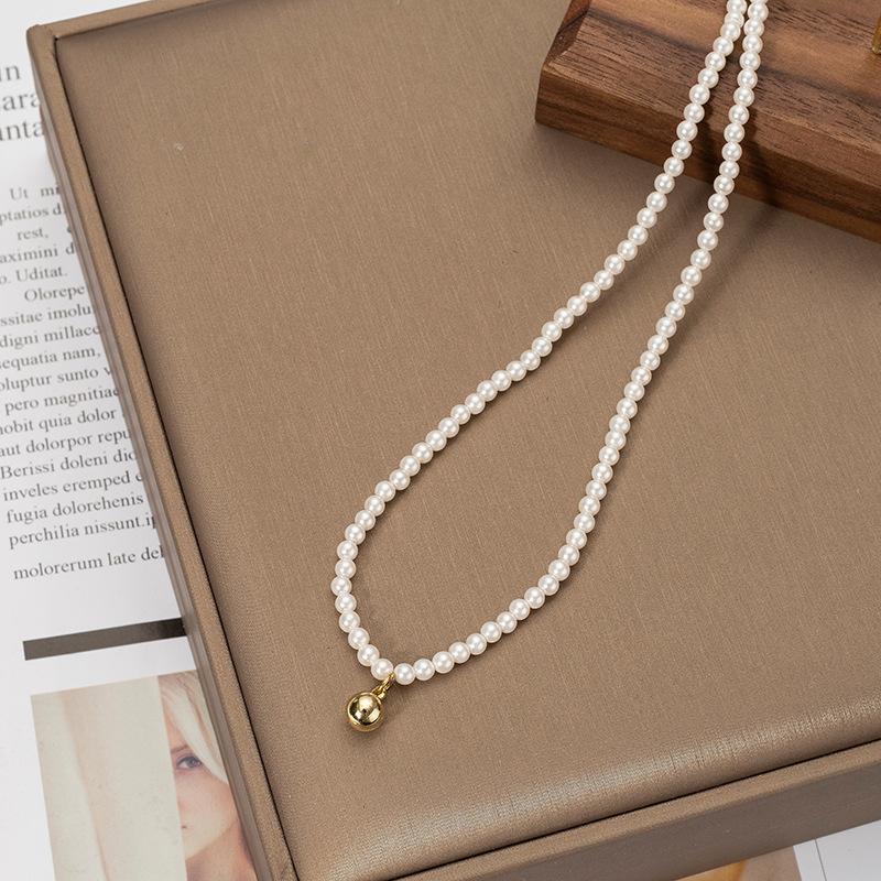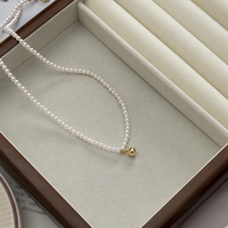 Collar pequeño de cuentas doradas, estilo francés retro de alta gama, con cadena de clavícula de perlas, elegante y combinable, nuevo collar Shijia.