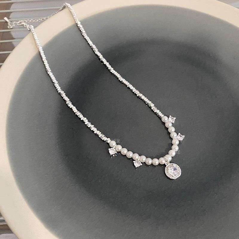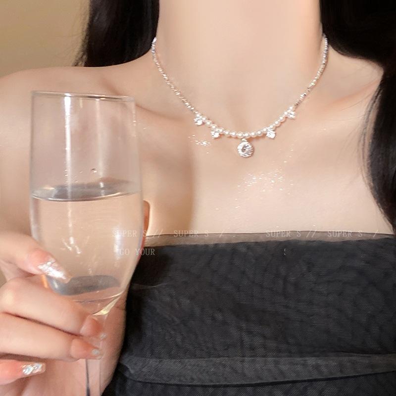 Collar de perlas de plata rotas con circonitas superbrillantes para mujer, novedad de 2024, gargantilla ligera de lujo con cadena de clavícula de nicho.