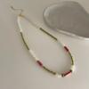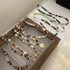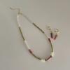 Collar y pendientes con cuentas de piedra natural y perla para mujer, estilo retro, versátil, de moda, con cadena para clavícula.