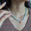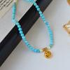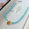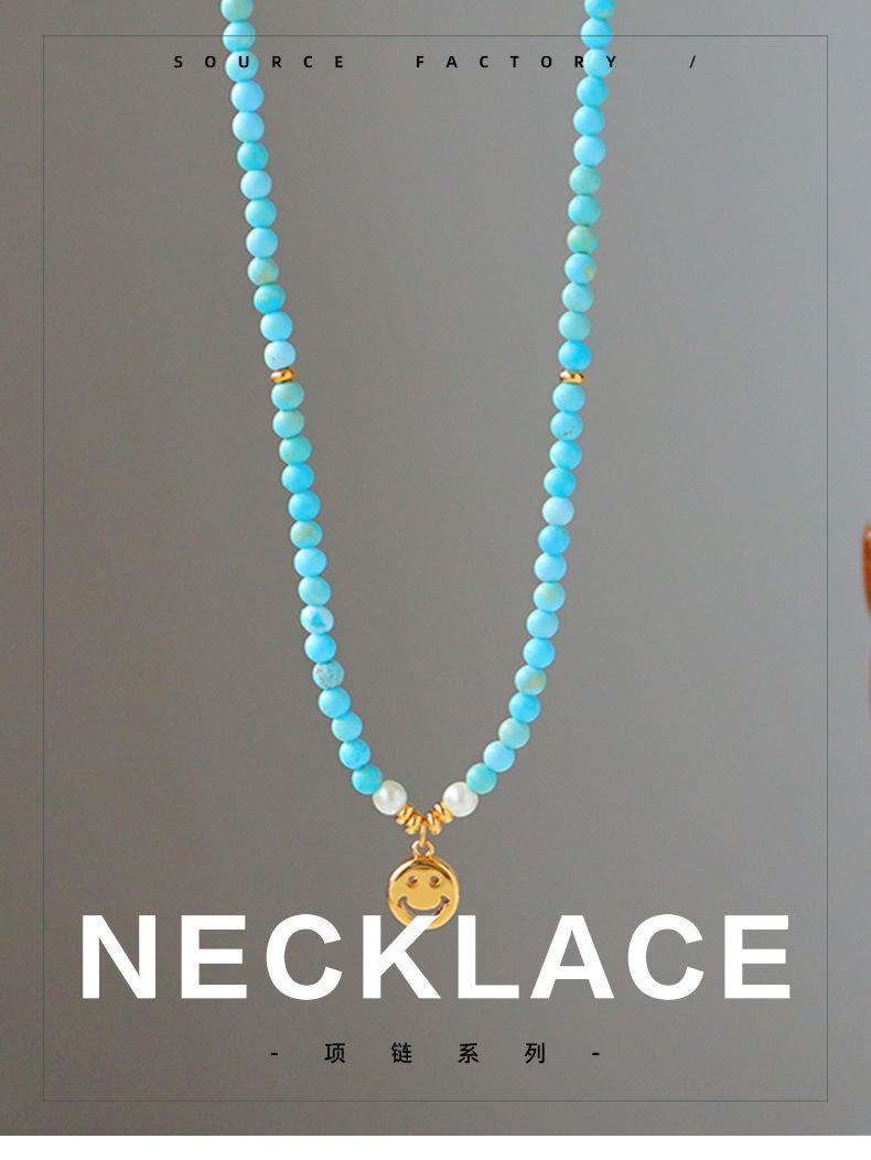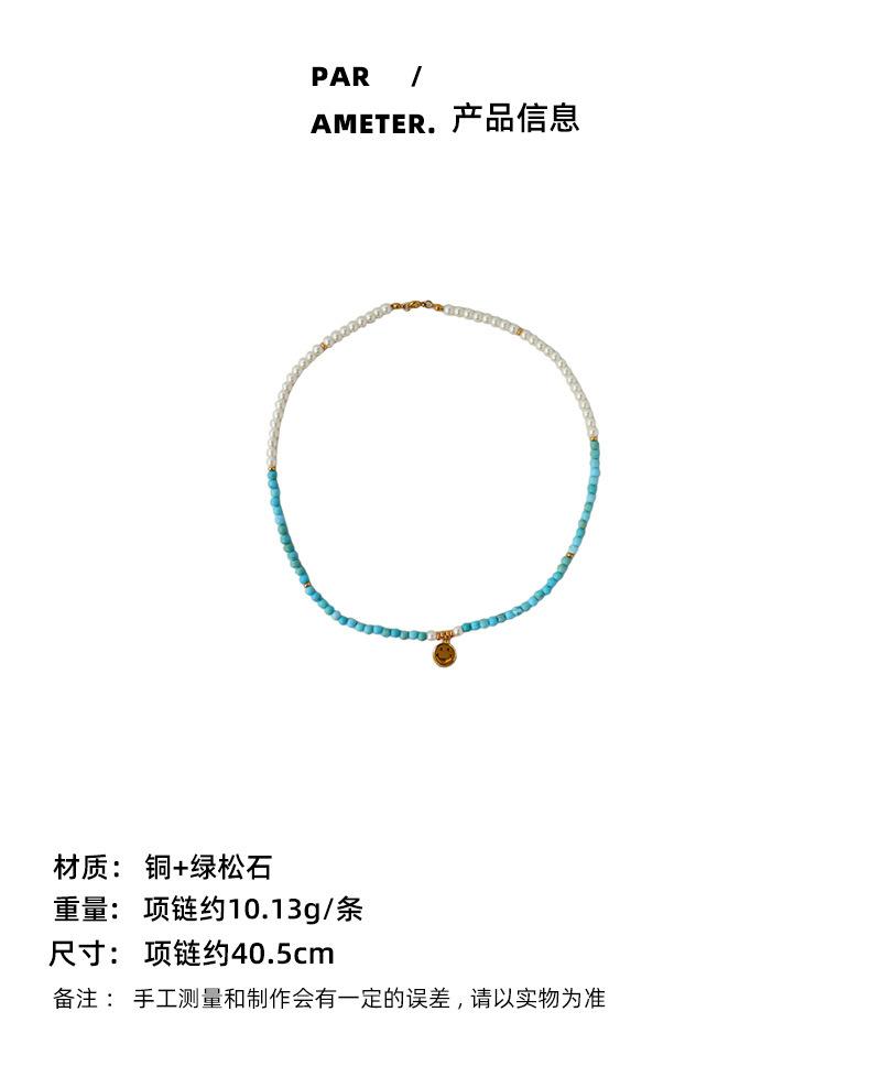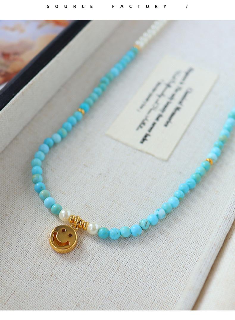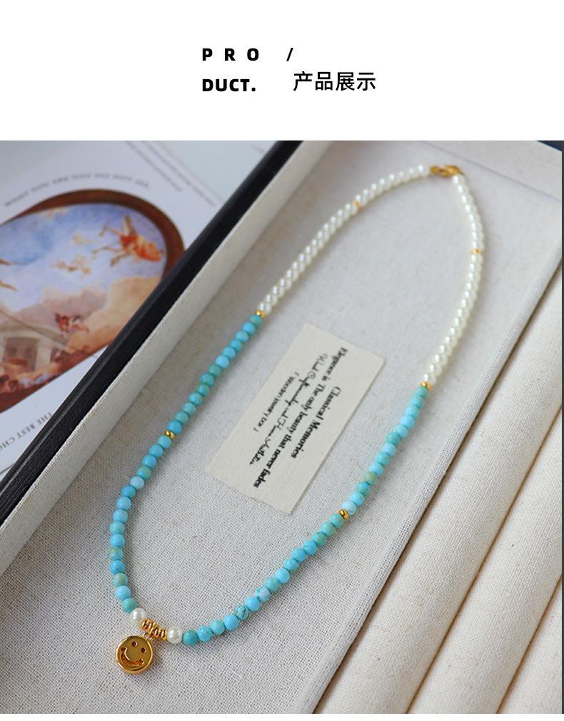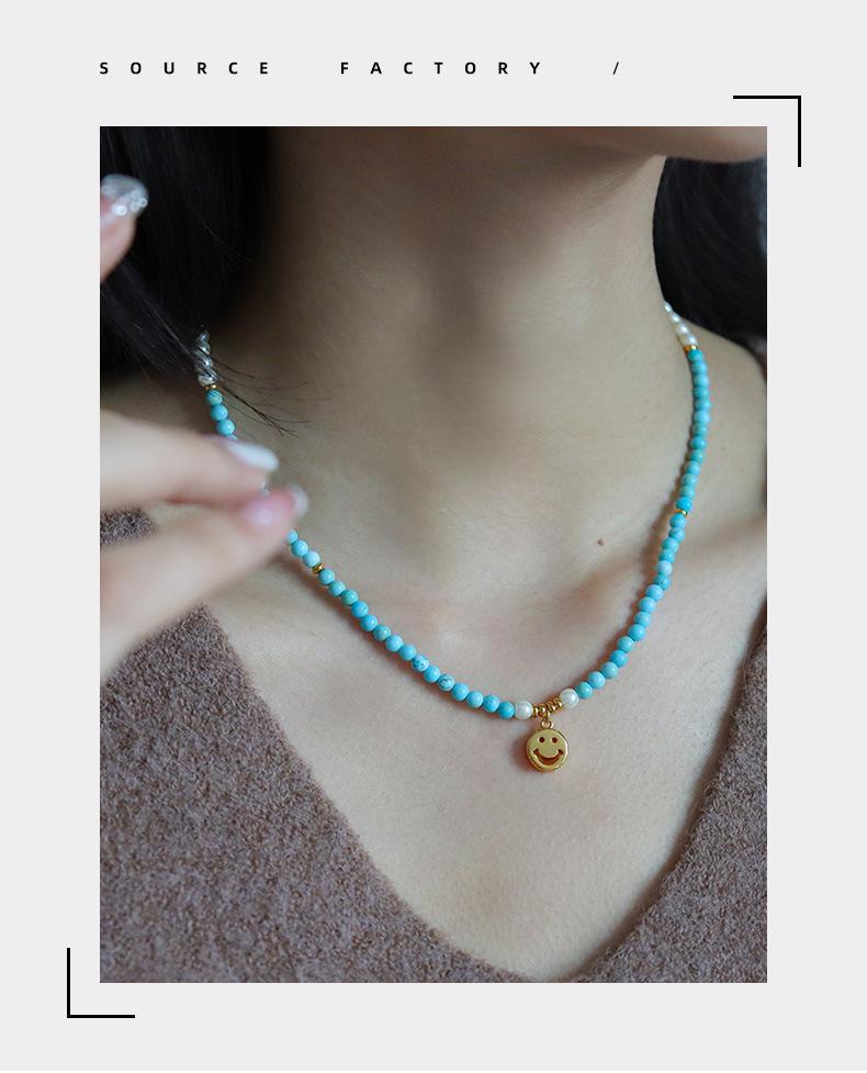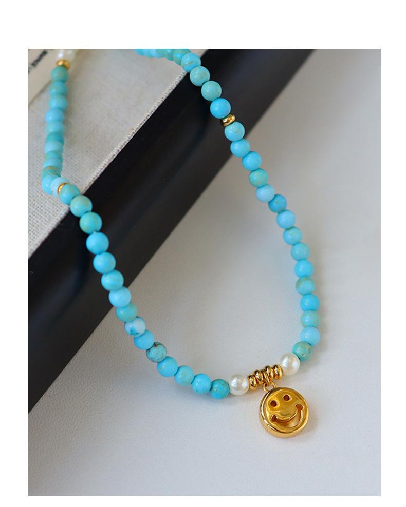 Collar de perlas turquesas con cara sonriente, estilo retro, ligero y lujoso, para mujer, de alta gama, para desplazamientos diarios, exquisito y versátil, con cadena de clavícula.