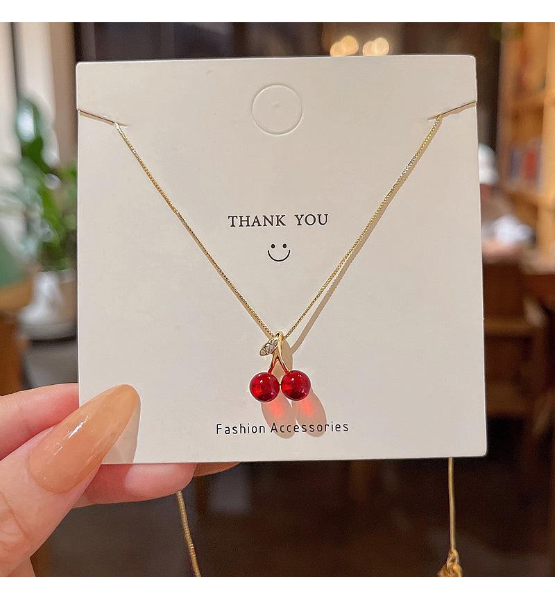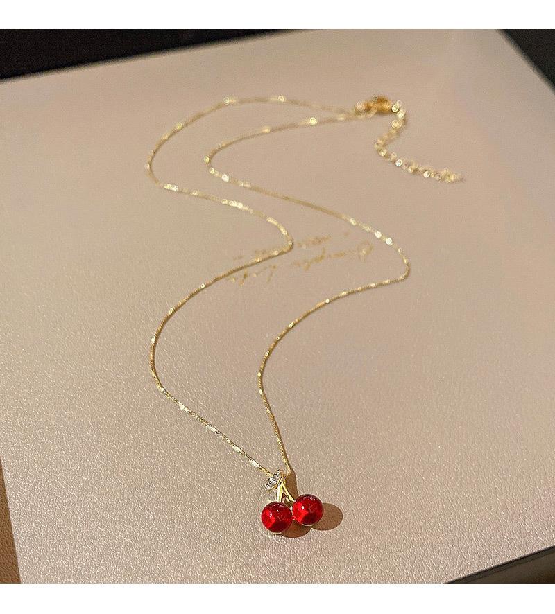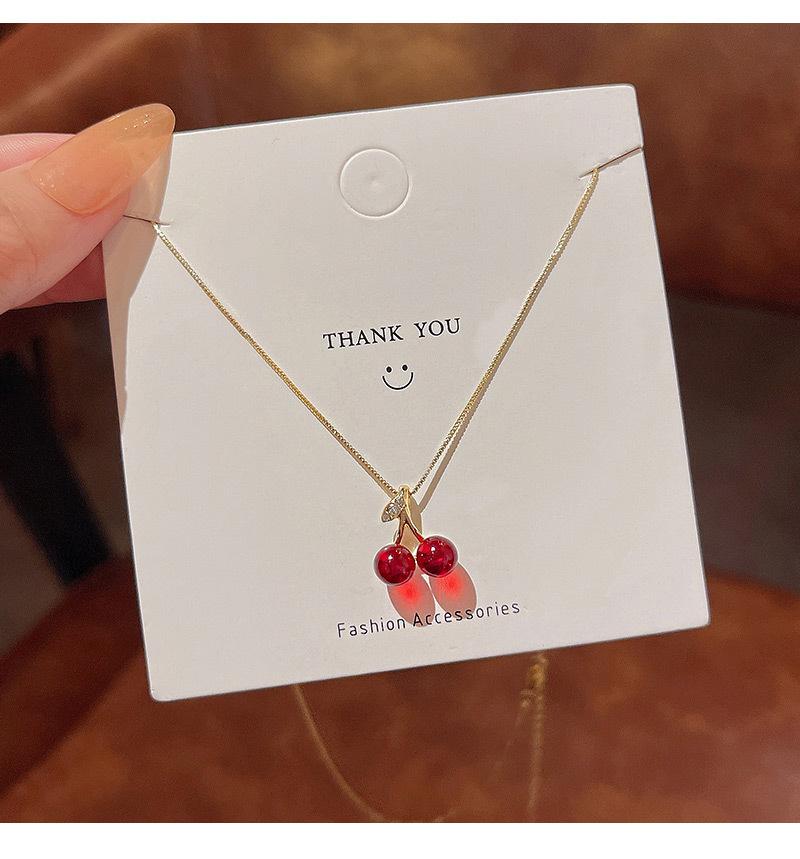 Collar coreano de cereza roja para mujer, diseño de alta gama, elegante, combinable con todo, cadena de clavícula, estilo cyber celebridad.