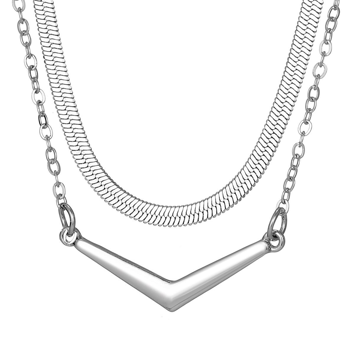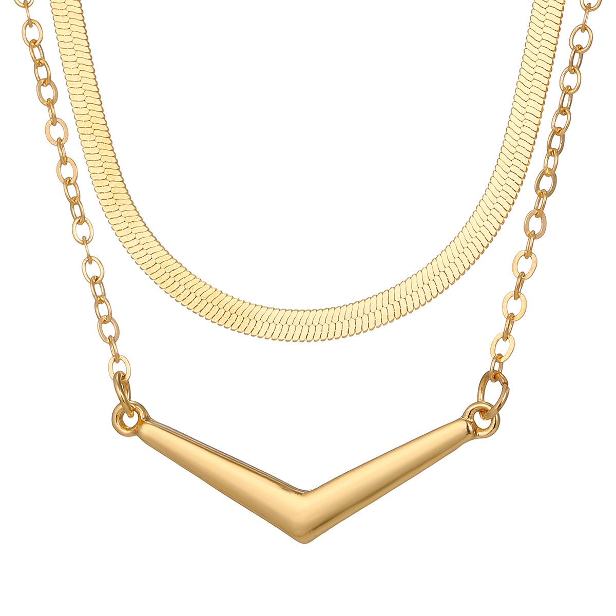 Collar de Cadena de Hueso de Serpiente Simple y Exquisito Collar Grande en Forma de V Collar Apilado de Doble Capa Cadena de Clavícula de Alta Gama Transfronteriza Oro Blanco/K