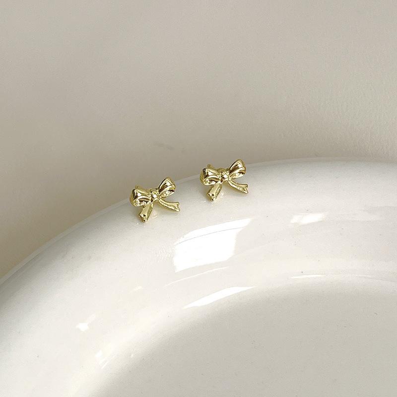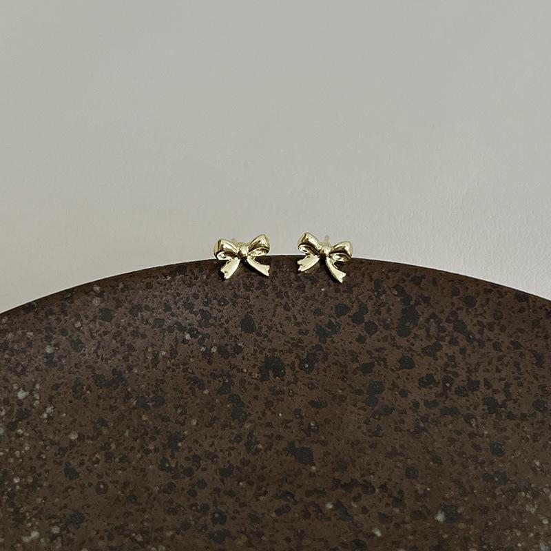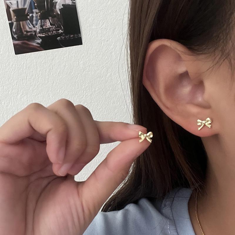 Pendientes de plata S925 con forma de mini lazo, pequeños y exquisitos, 2024. Nuevos pendientes de viento frío de alta gama y moda para mujer.