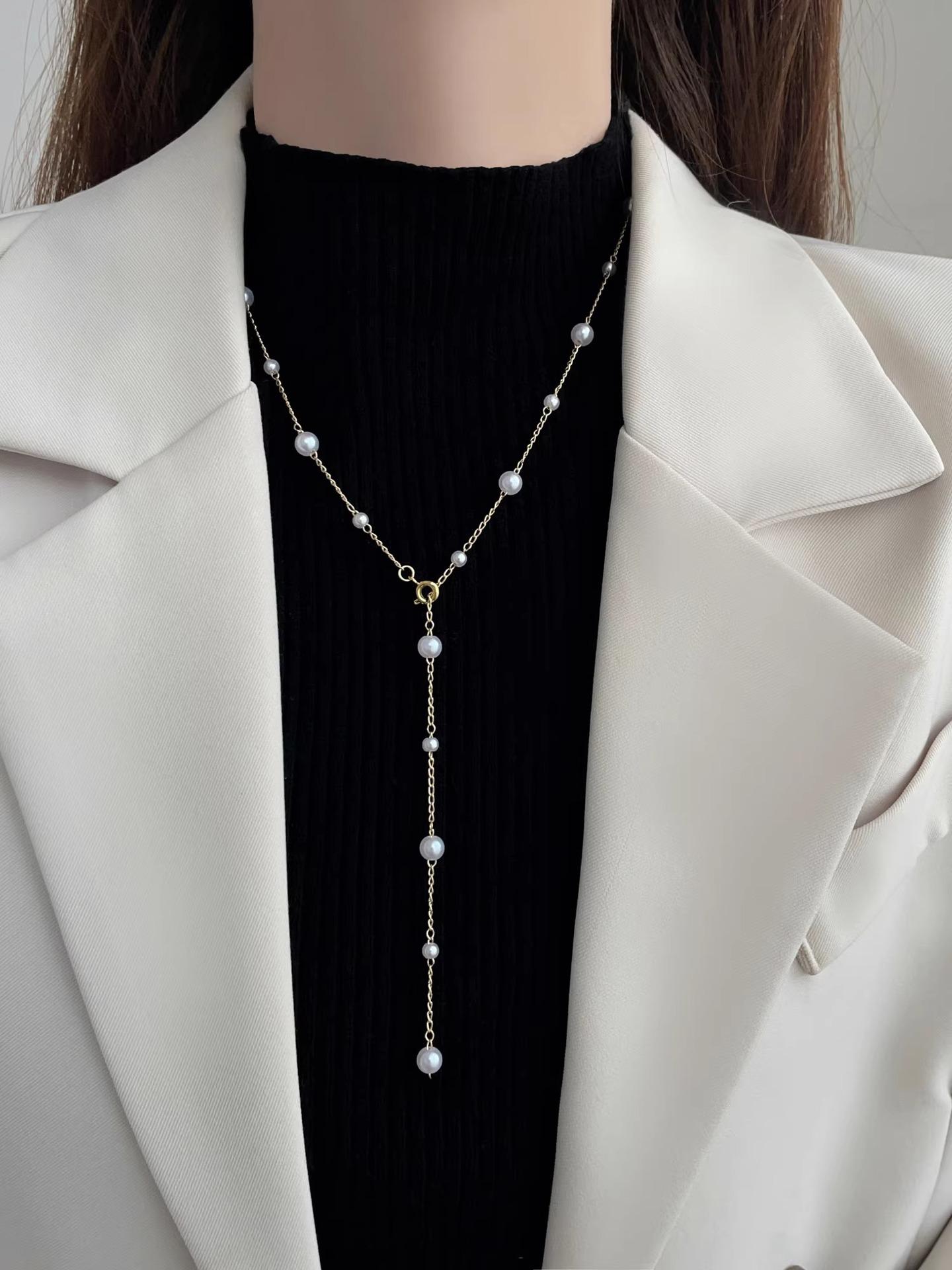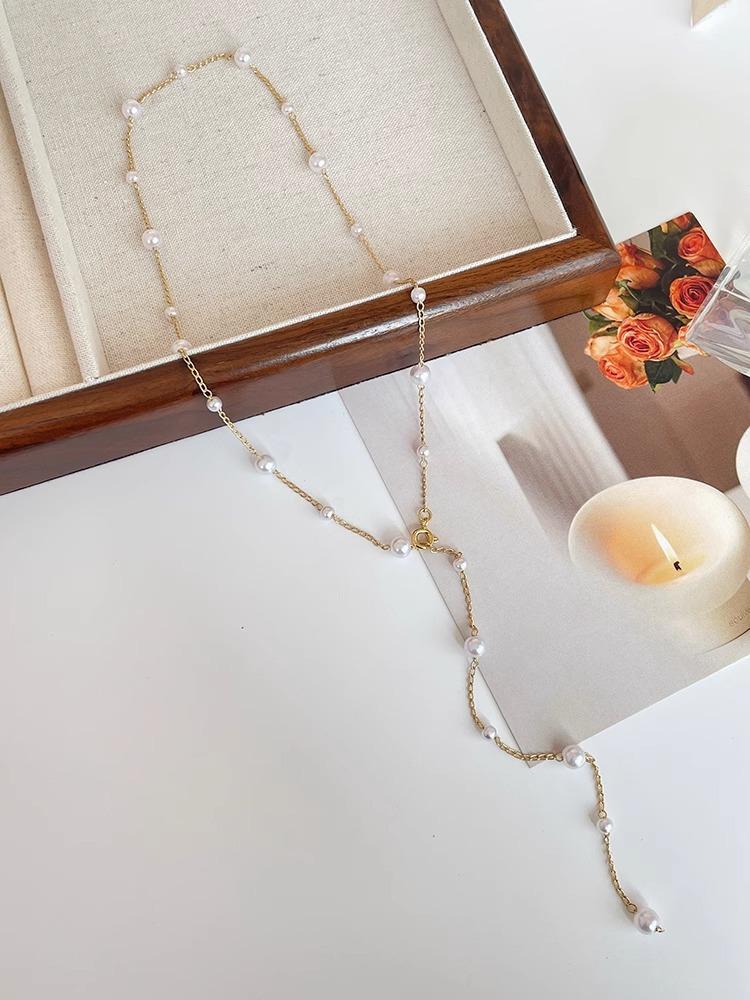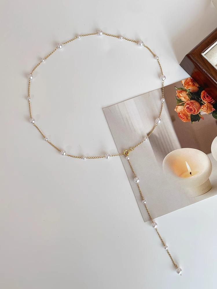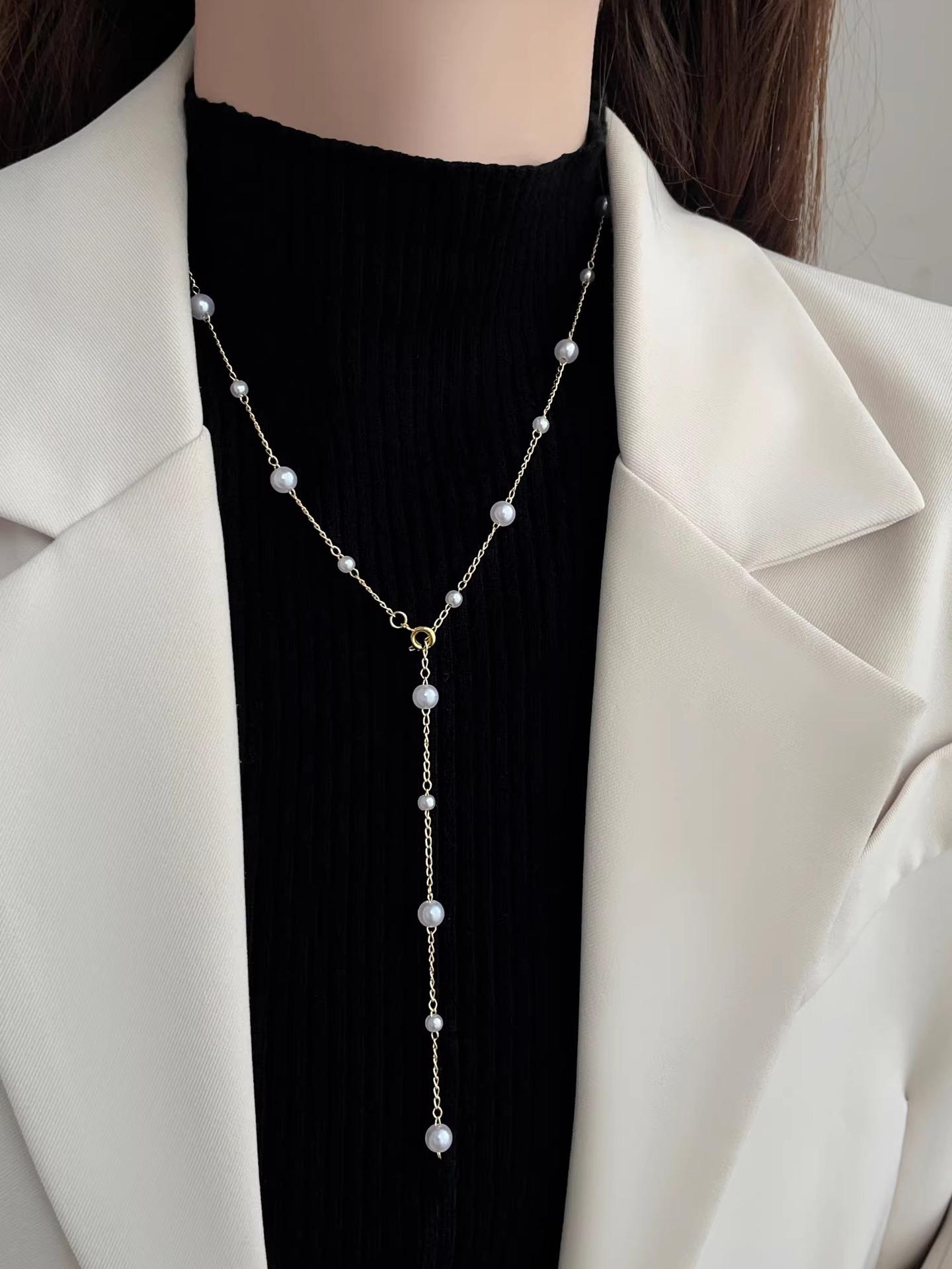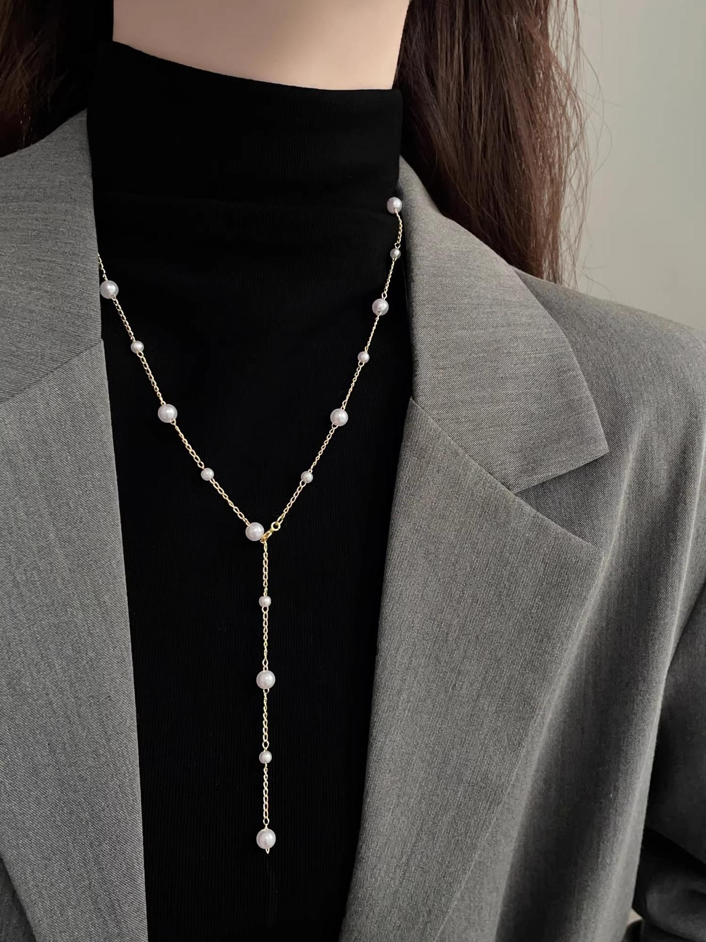 Collar de Perlas Estrella Moda Entrada Lujo Cuello de Cisne Cadena Clavícula Larga en Y Cadena Multicuello Cadena para Suéter