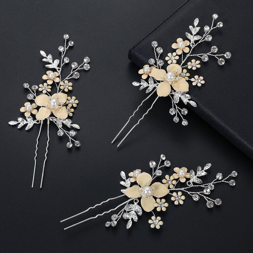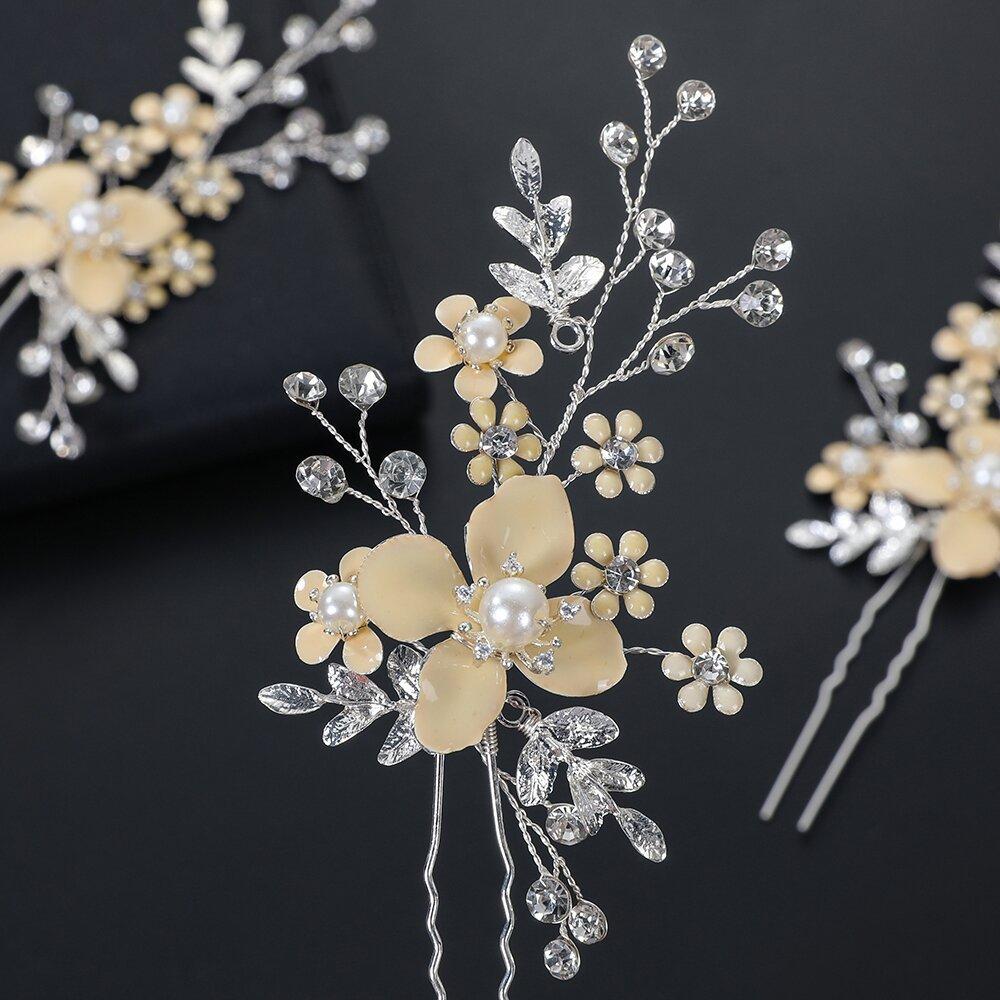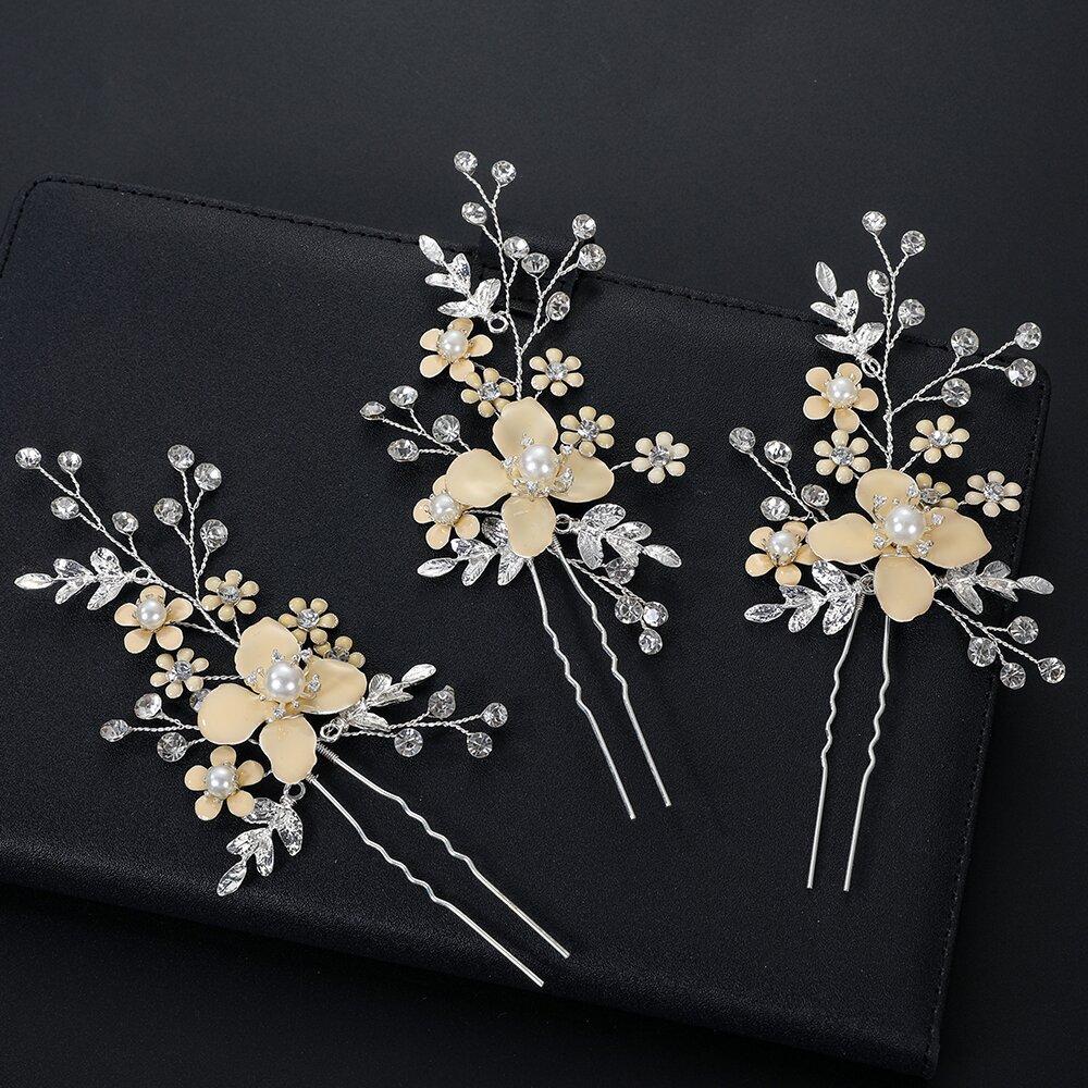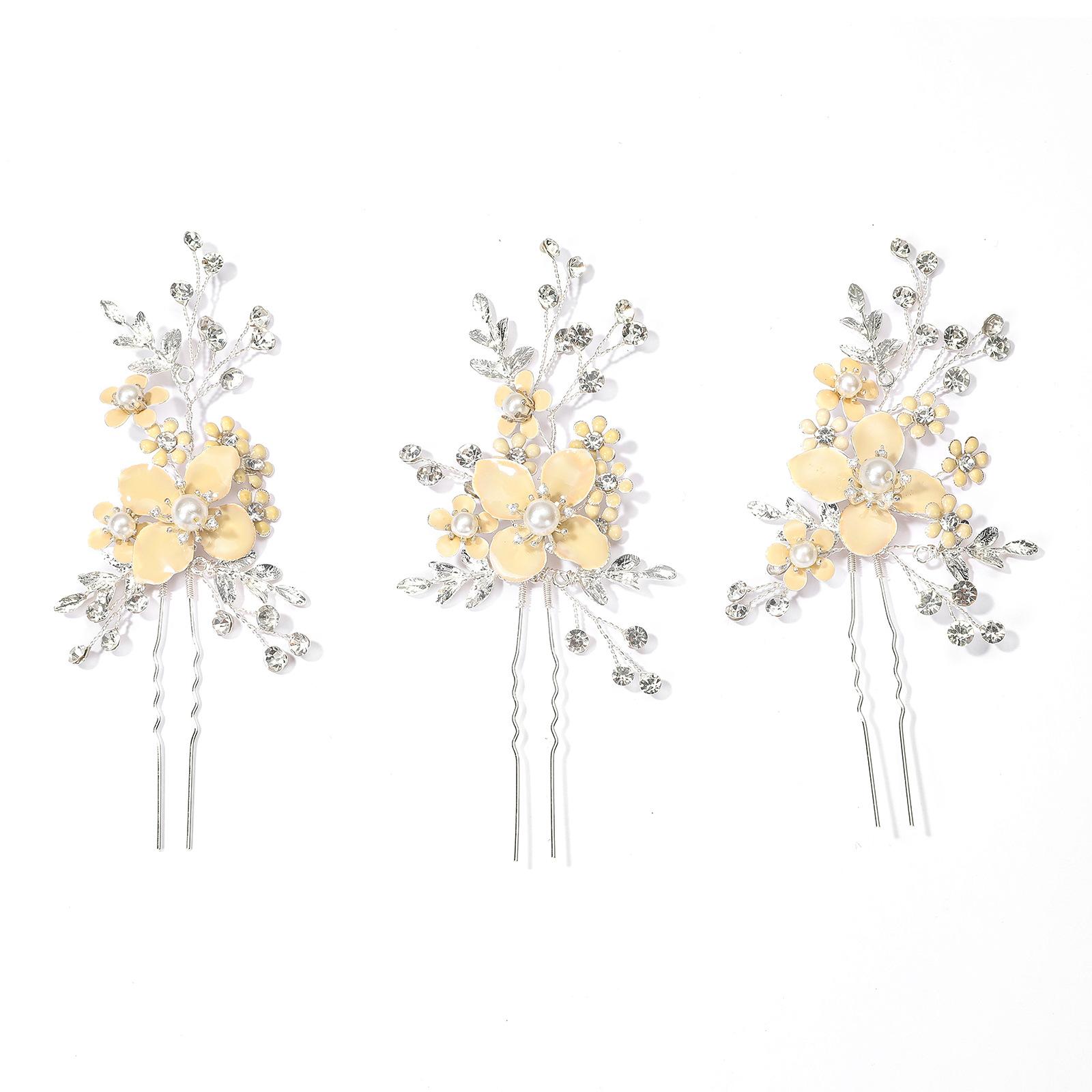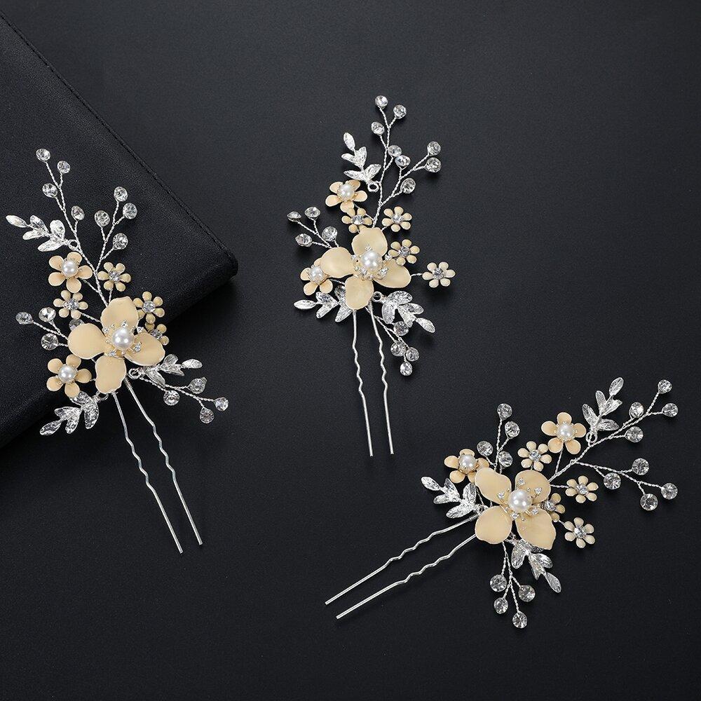 Horquillas para el pelo con forma de U de perlas y flores hechas a mano para bodas transfronterizas de Europa y Estados Unidos, fabricantes directos al por mayor