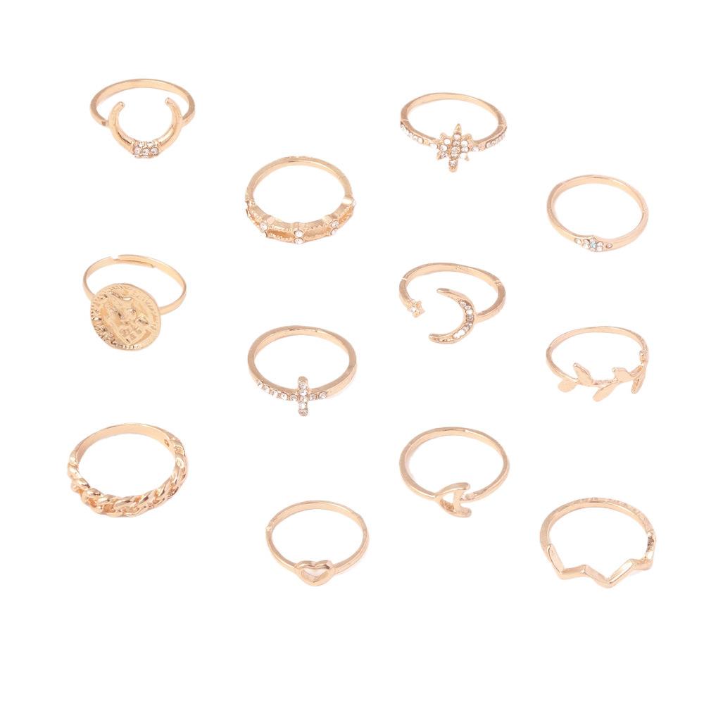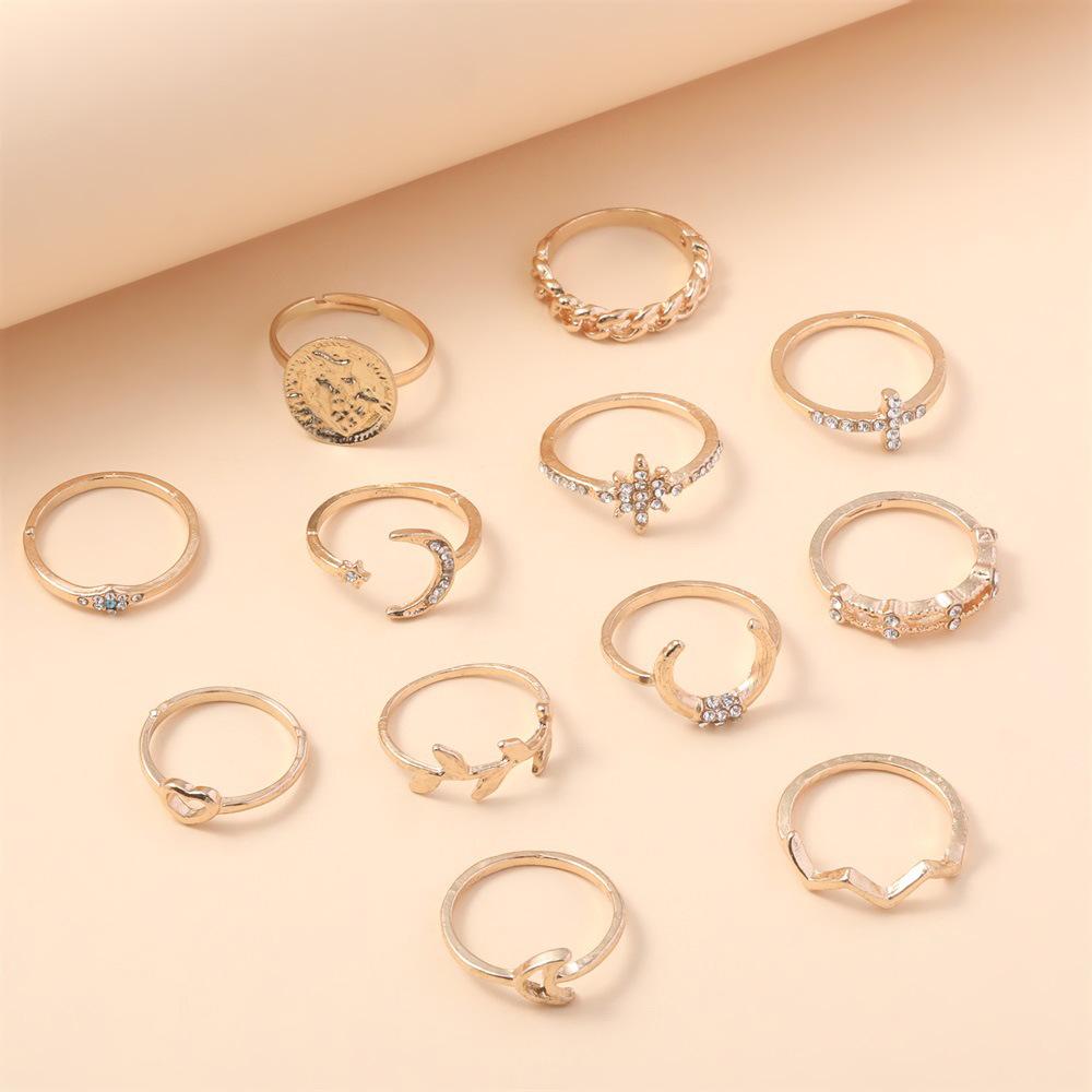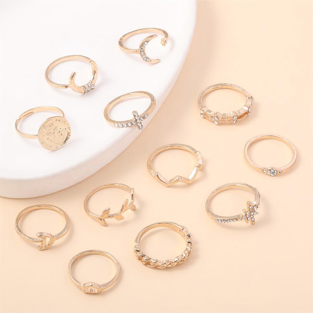 Personalidad europea y americana nuevo anillo hoja creciente amor hueco taladro aleación 12 anillos traje joyería al por mayor