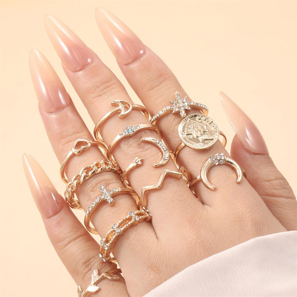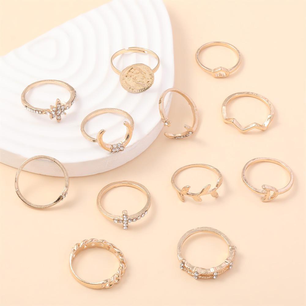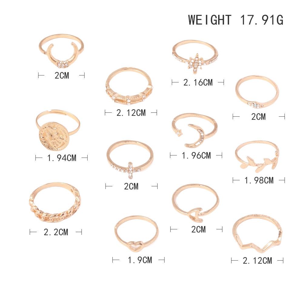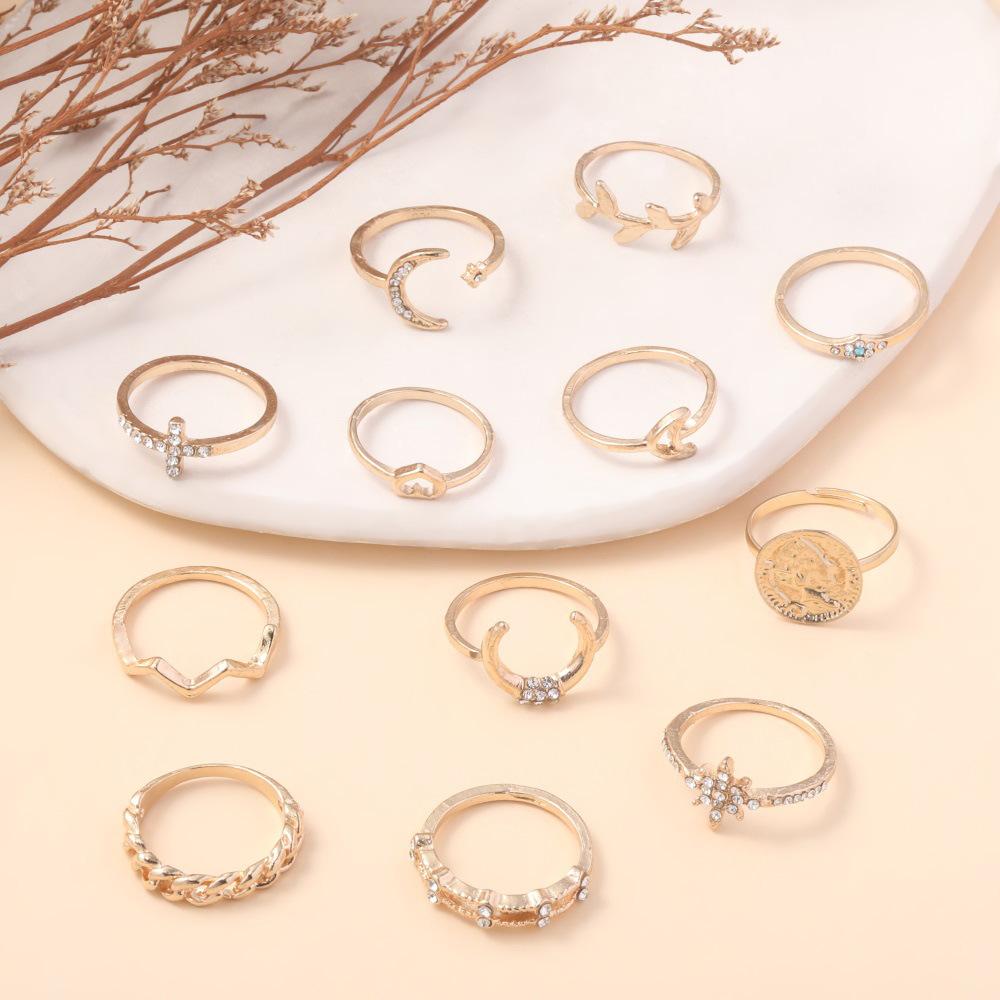 Personalidad europea y americana nuevo anillo hoja creciente amor hueco taladro aleación 12 anillos traje joyería al por mayor