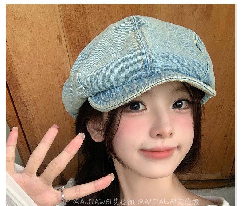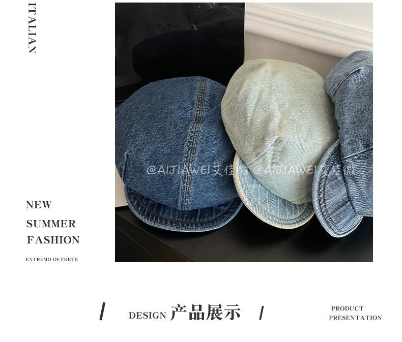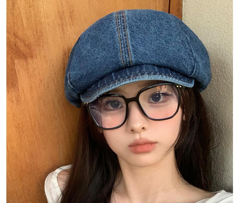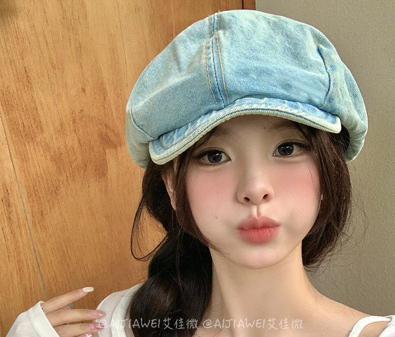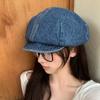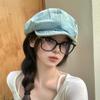 Boina vaquera para mujer, gorra de exhibición facial, gorra fina vintage octogonal de verano 2024, gorra de pintor con cabeza grande