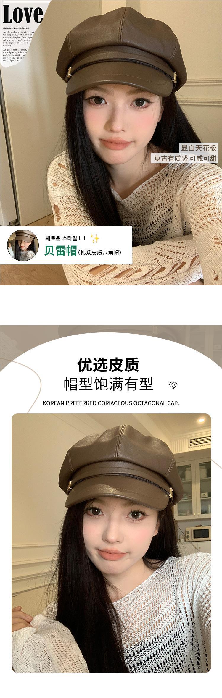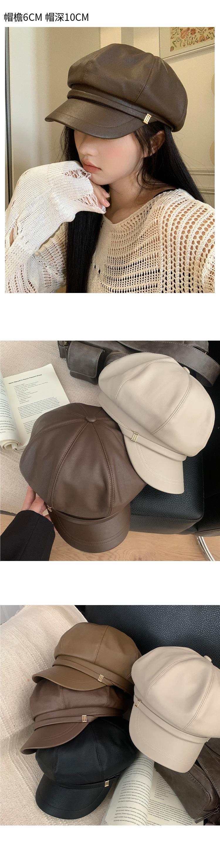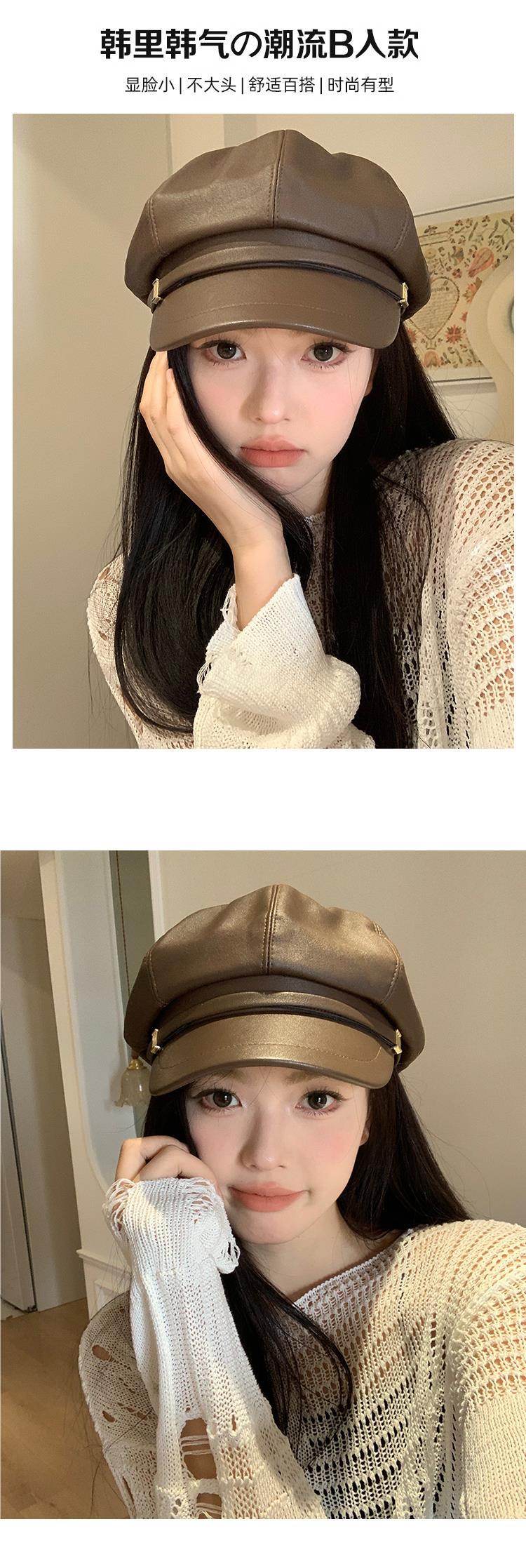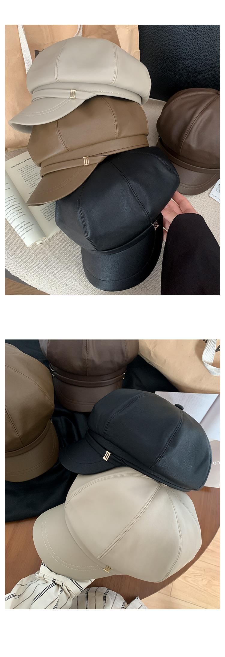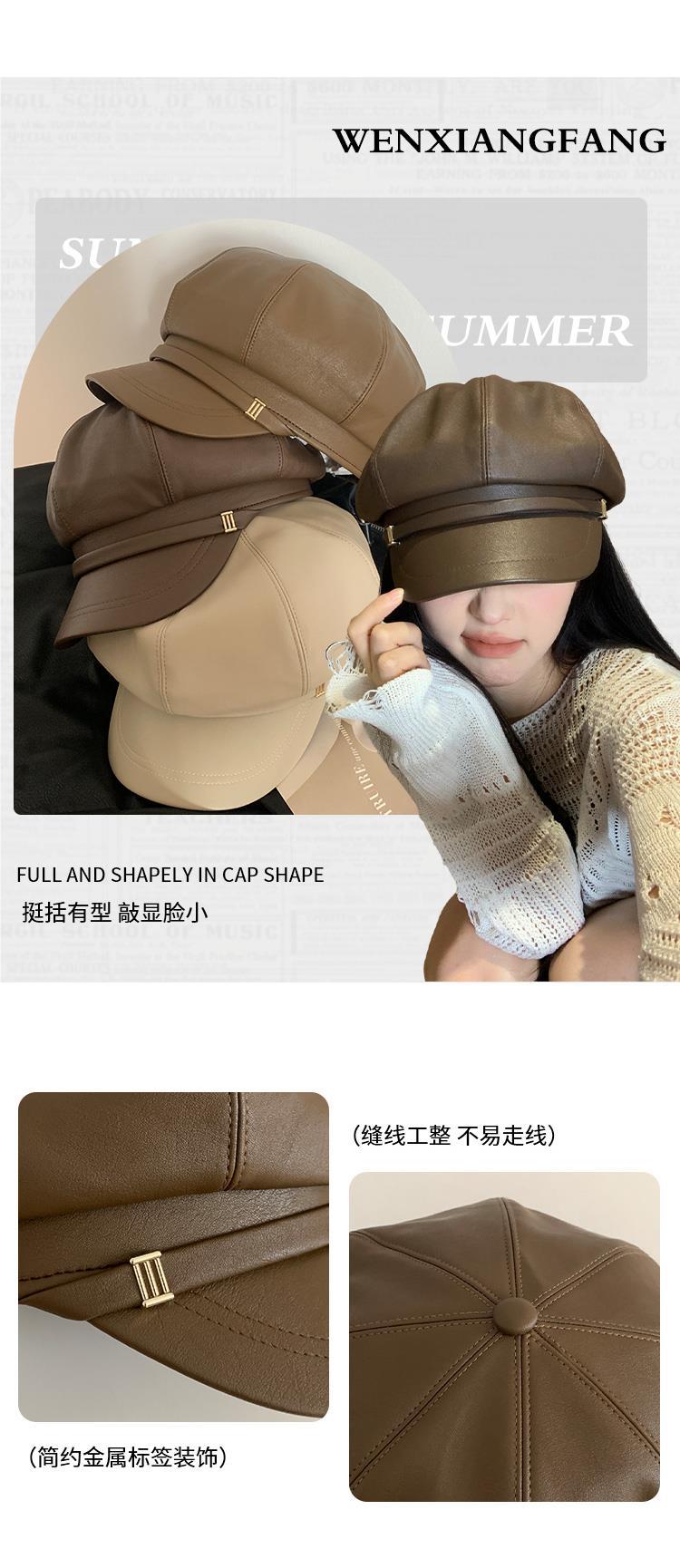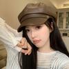 Boina de PU de moda para mujer, de verano, fina, elegante, combinable, con cabeza grande, pequeña, octogonal, a la moda, 2024