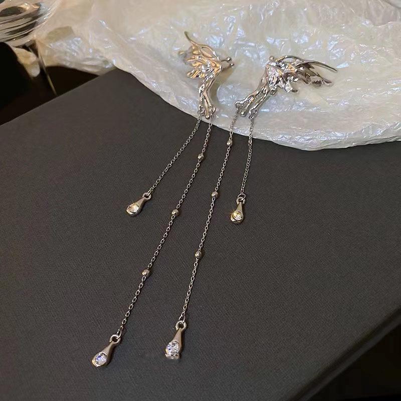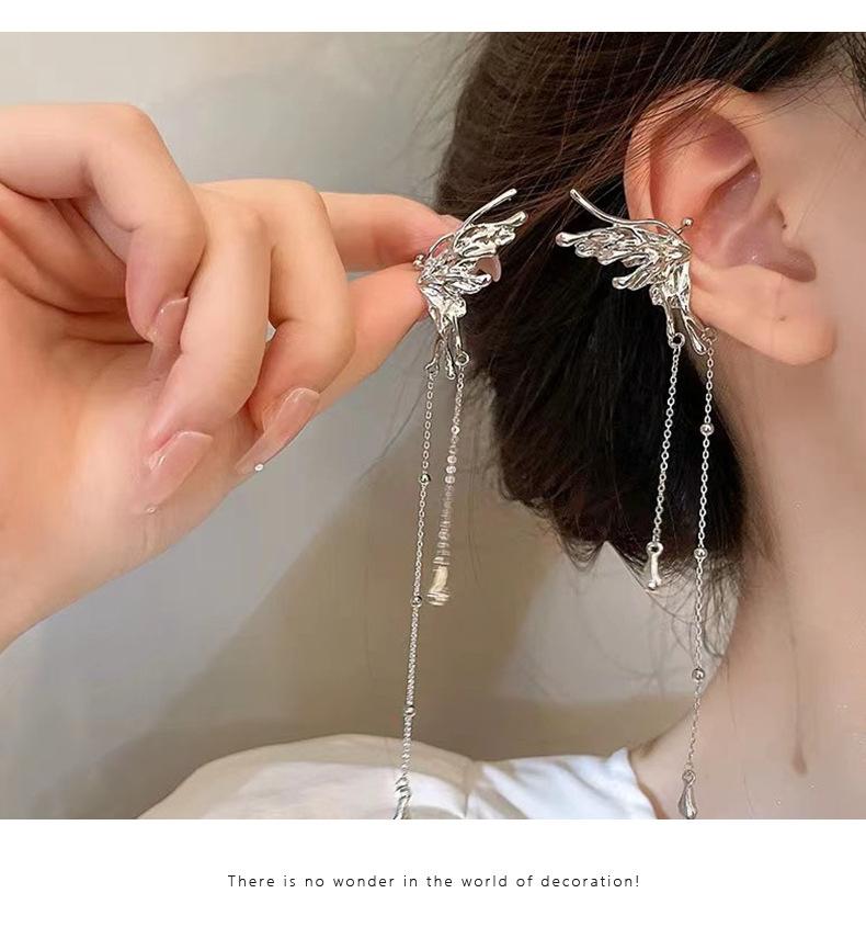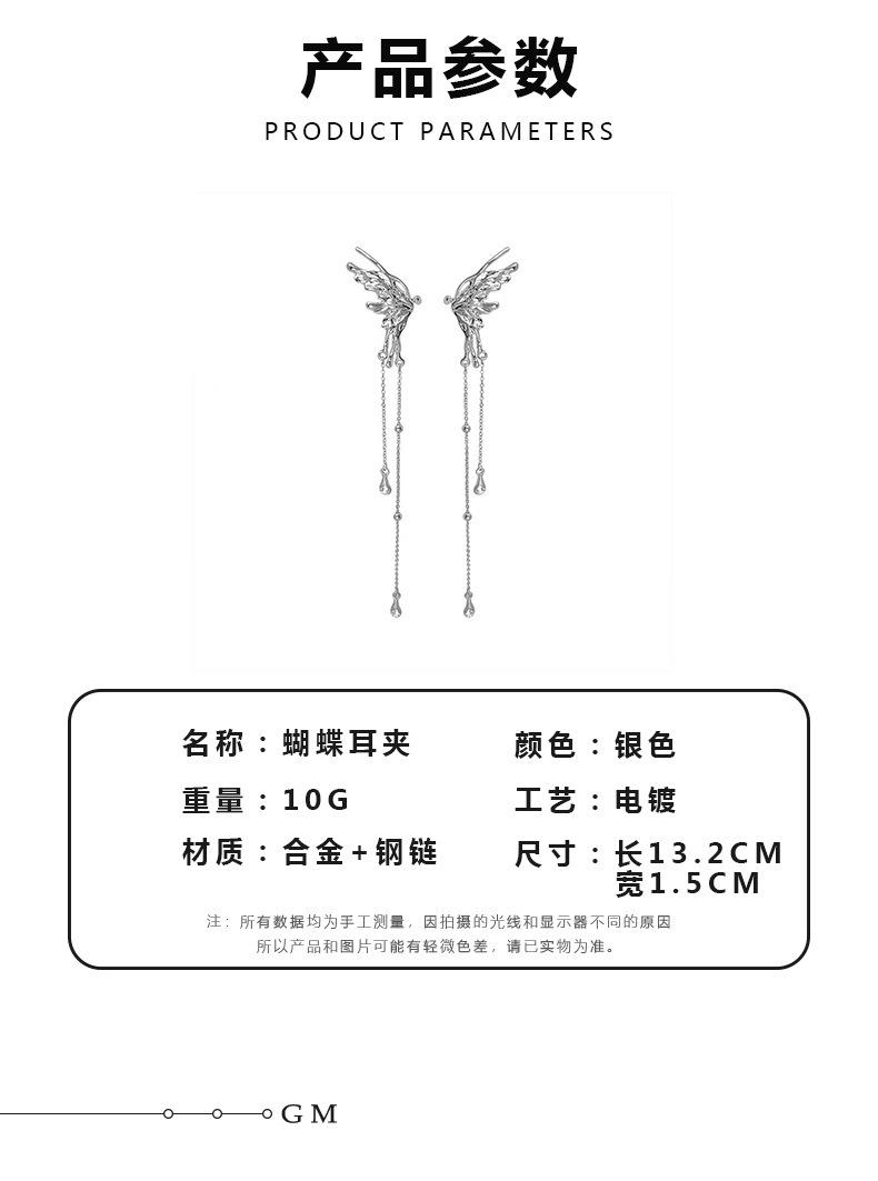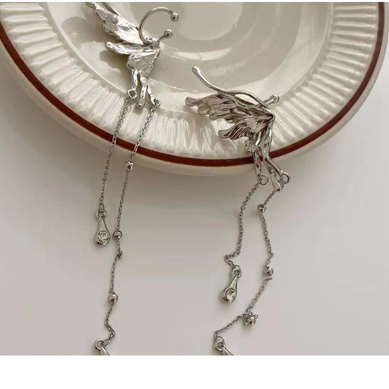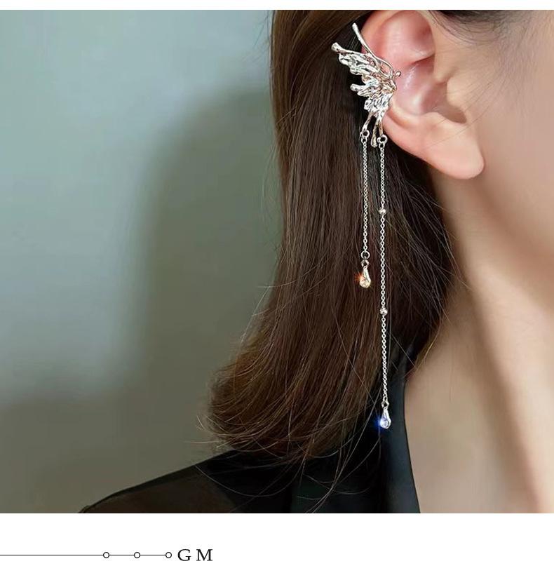 Pendientes de clip de oreja de estilo coreano sin agujeros, diseño moderno y elegante, con borlas largas de mariposa de circonita para mujer