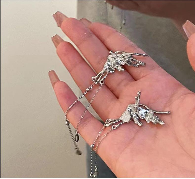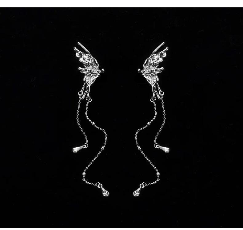 Butterfly tassel drop ear clip pair