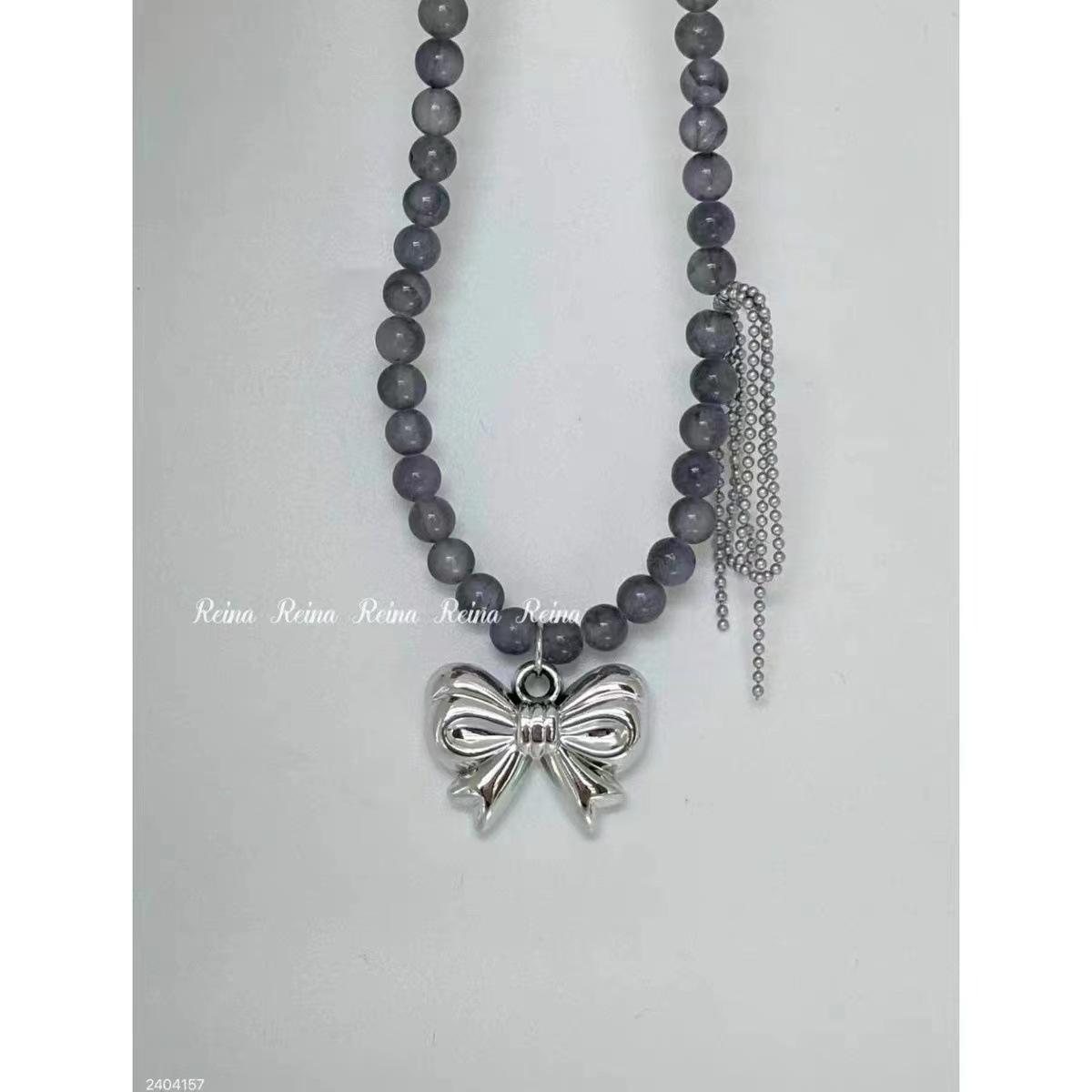 Collar de Cuentas con Colgante de Lazo Diseño para Mujer Simple de Alta Gama Elegante Moda Temperamento Versátil Cadena para el Cuello Cadena para la Clavícula