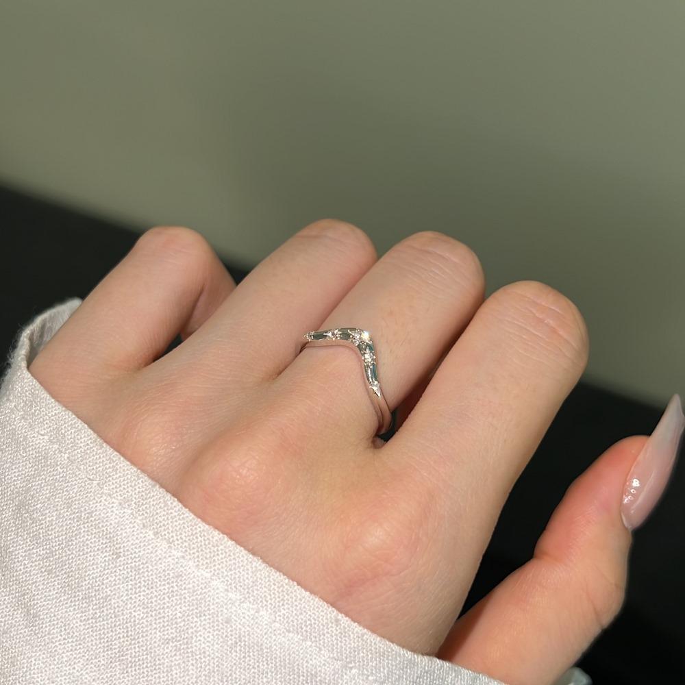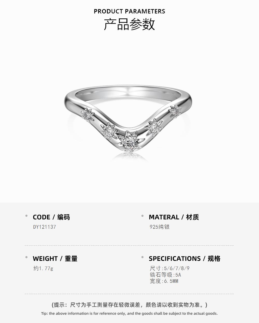 Anillo de plata de ley S925 estilo europeo y americano para mujer, diseño moderno y sencillo con circonitas de copo de nieve superbrillantes y apiladas.