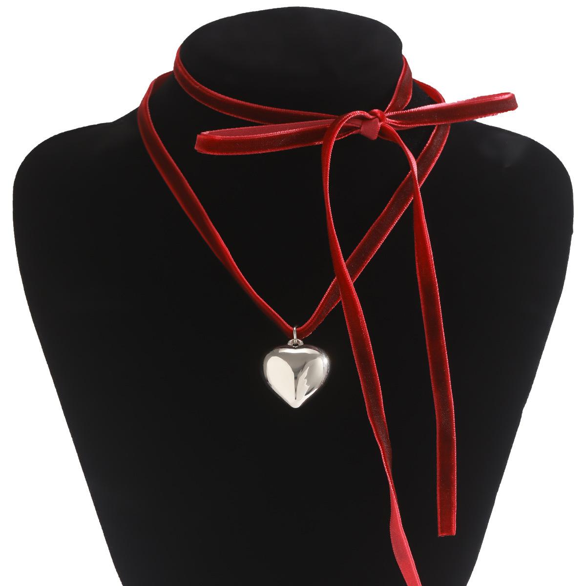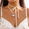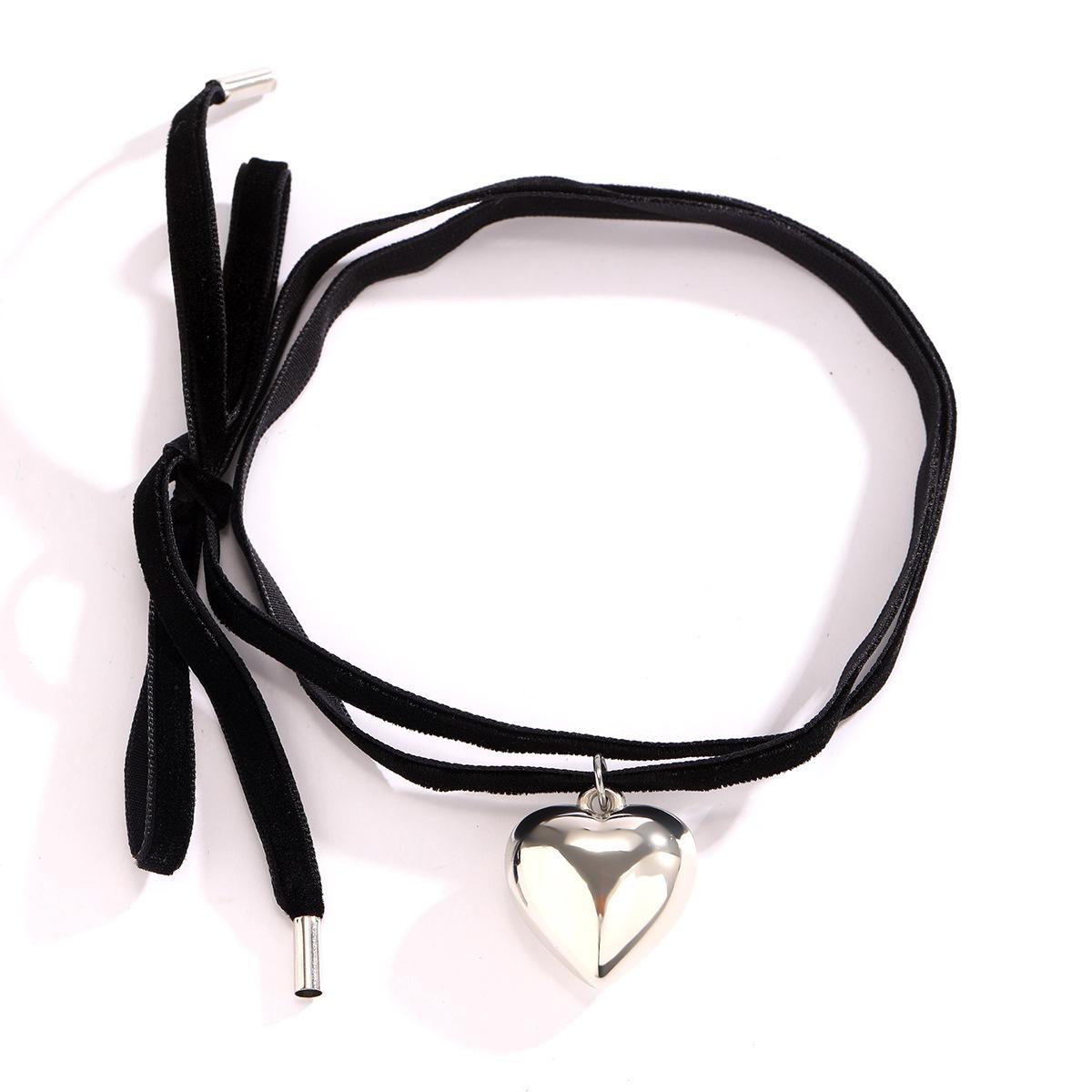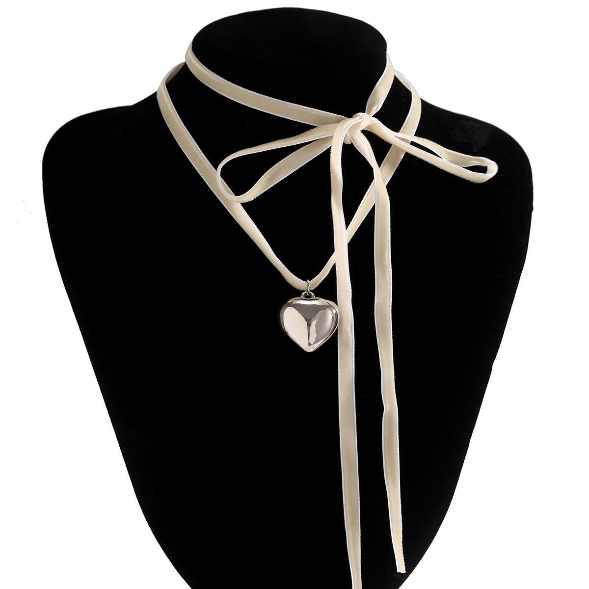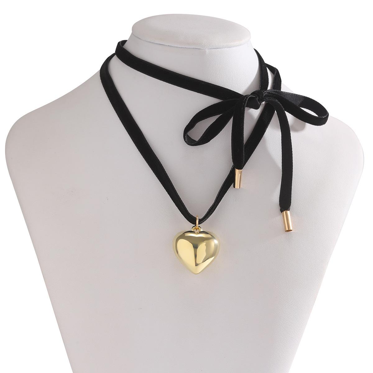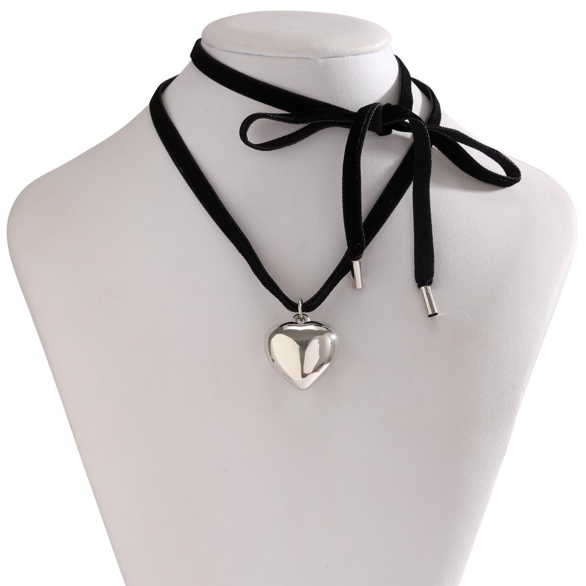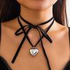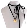 Gargantilla larga con diseño transfronterizo europeo y americano para mujer, collar con colgante en forma de corazón a juego, de franela con cordones