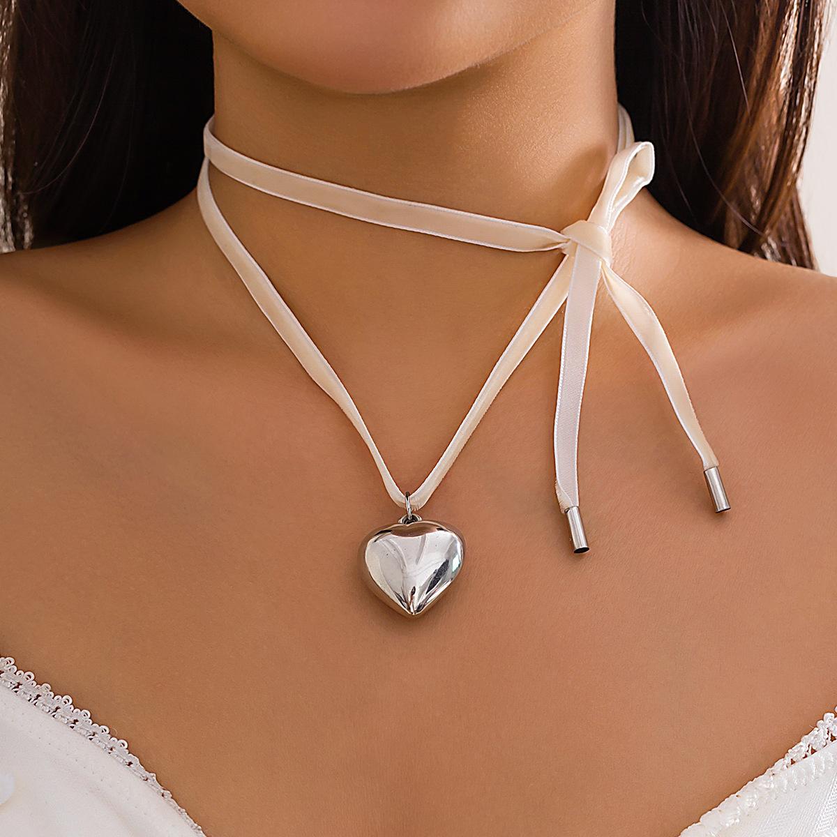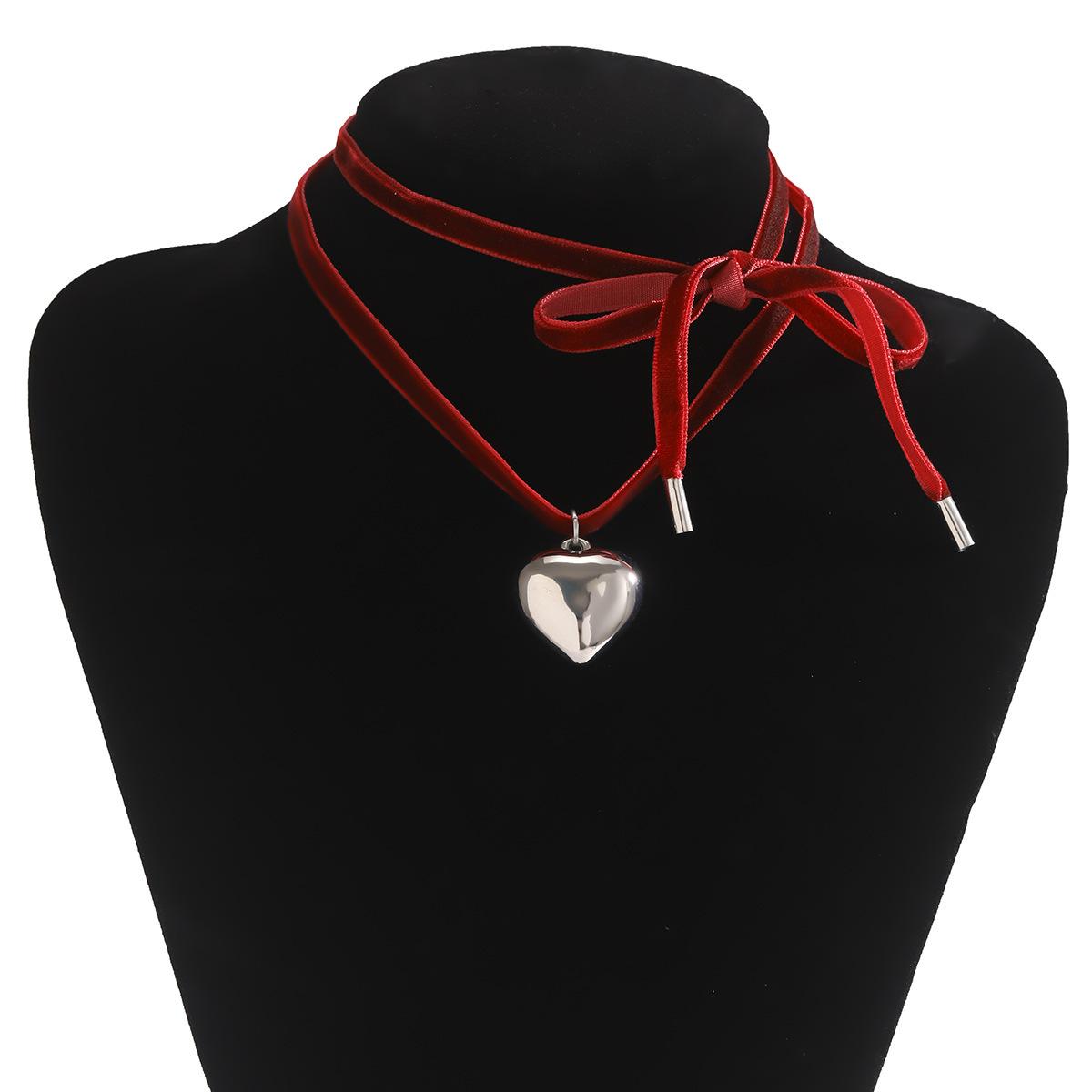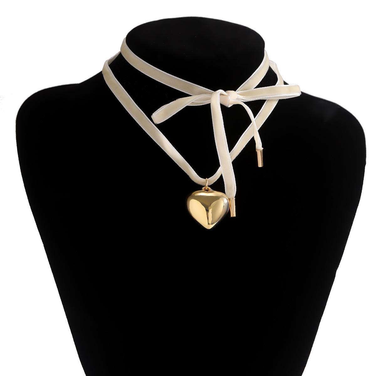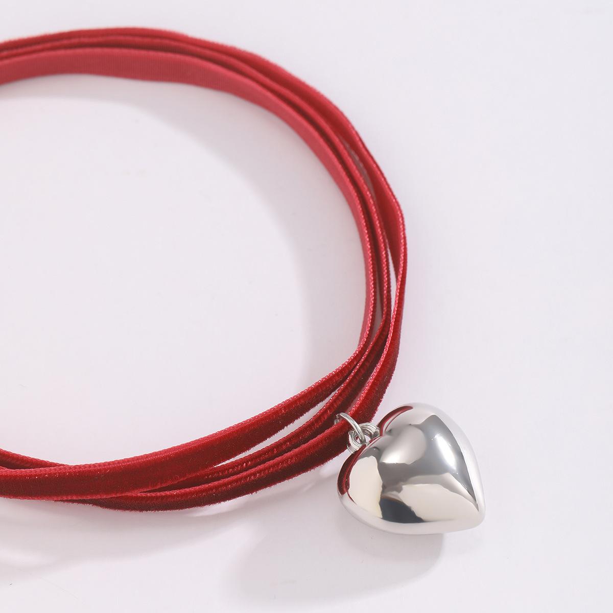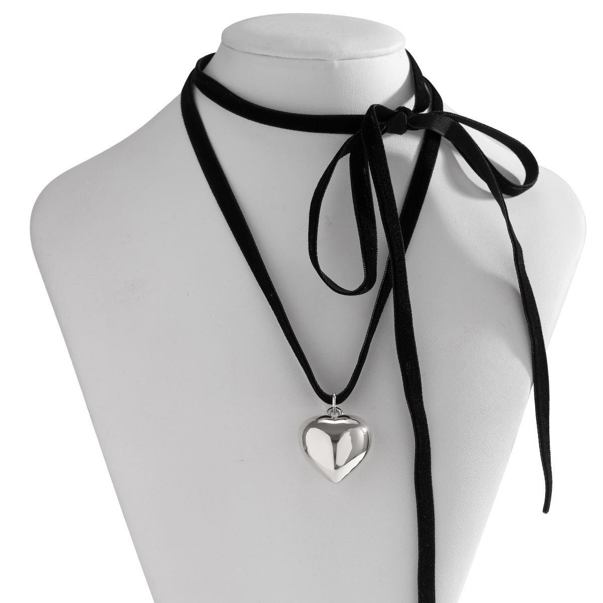 Gargantilla larga con diseño transfronterizo europeo y americano para mujer, collar con colgante en forma de corazón a juego, de franela con cordones