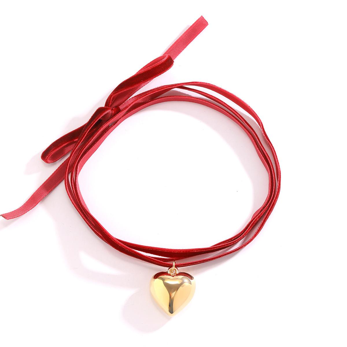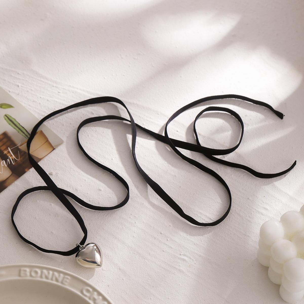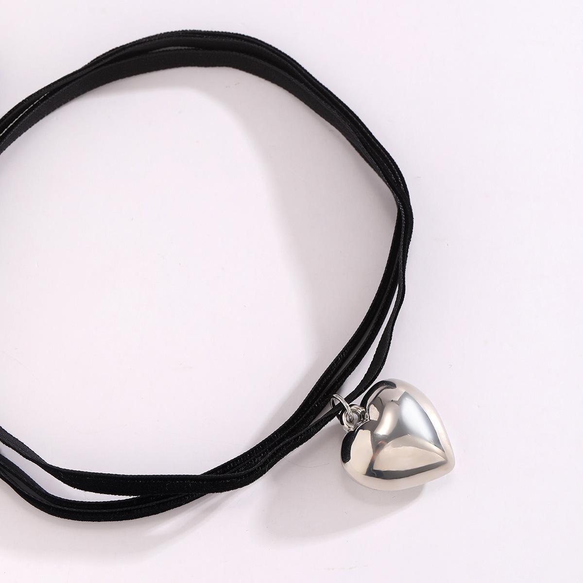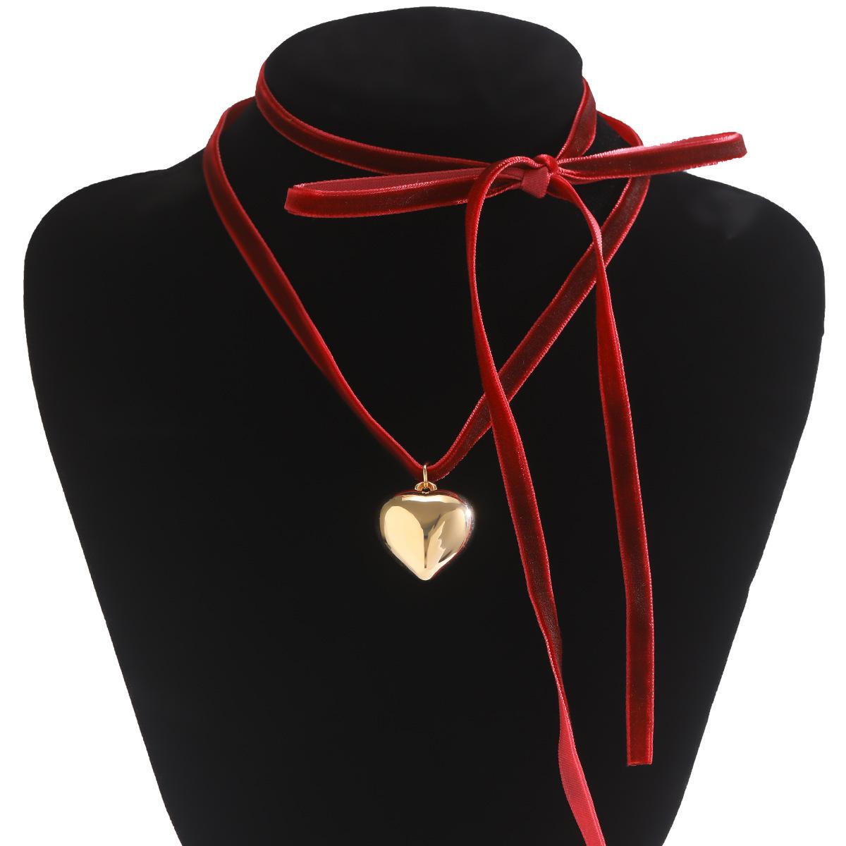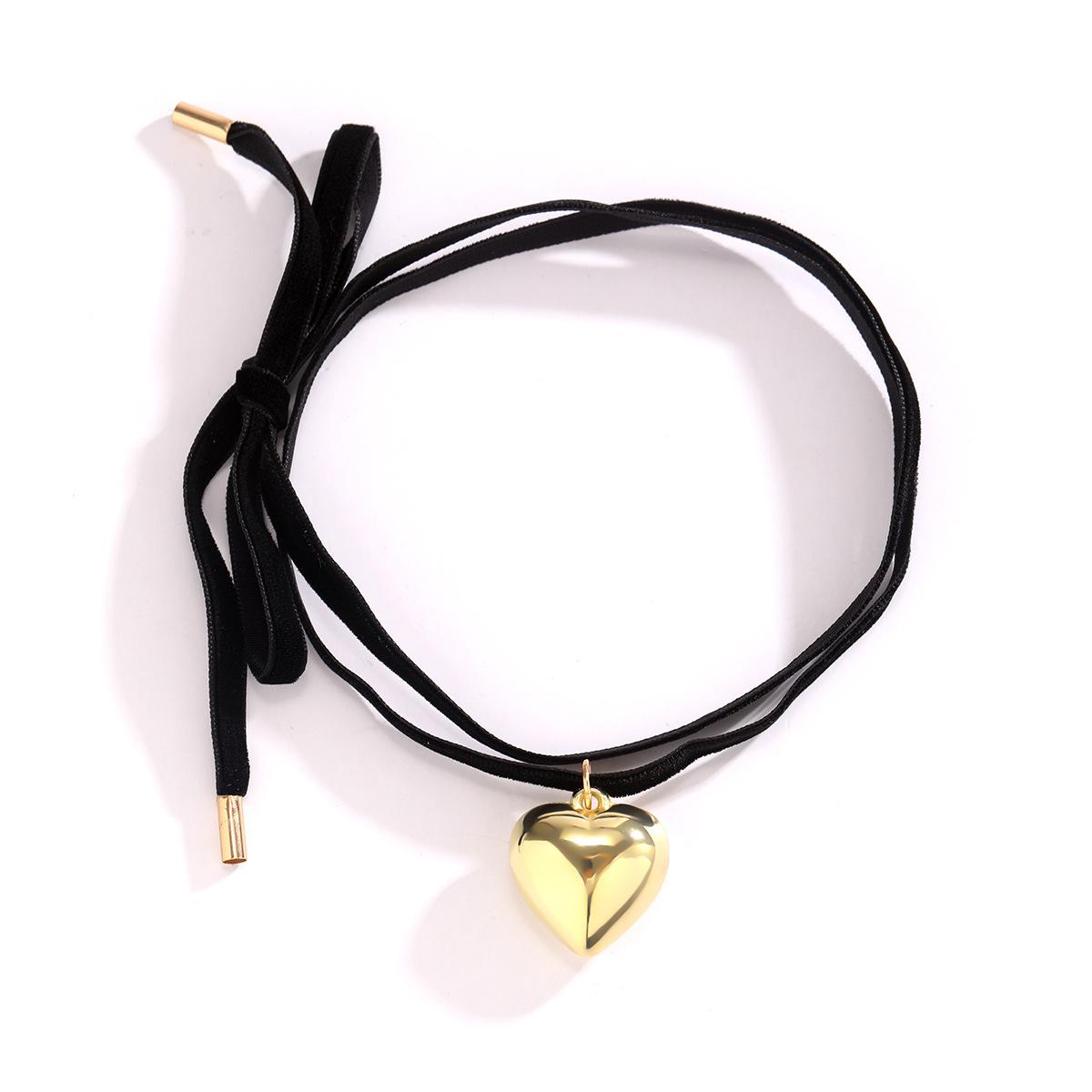 Gargantilla larga con diseño transfronterizo europeo y americano para mujer, collar con colgante en forma de corazón a juego, de franela con cordones