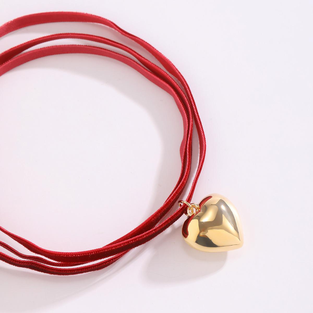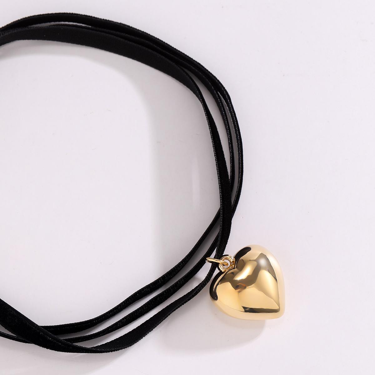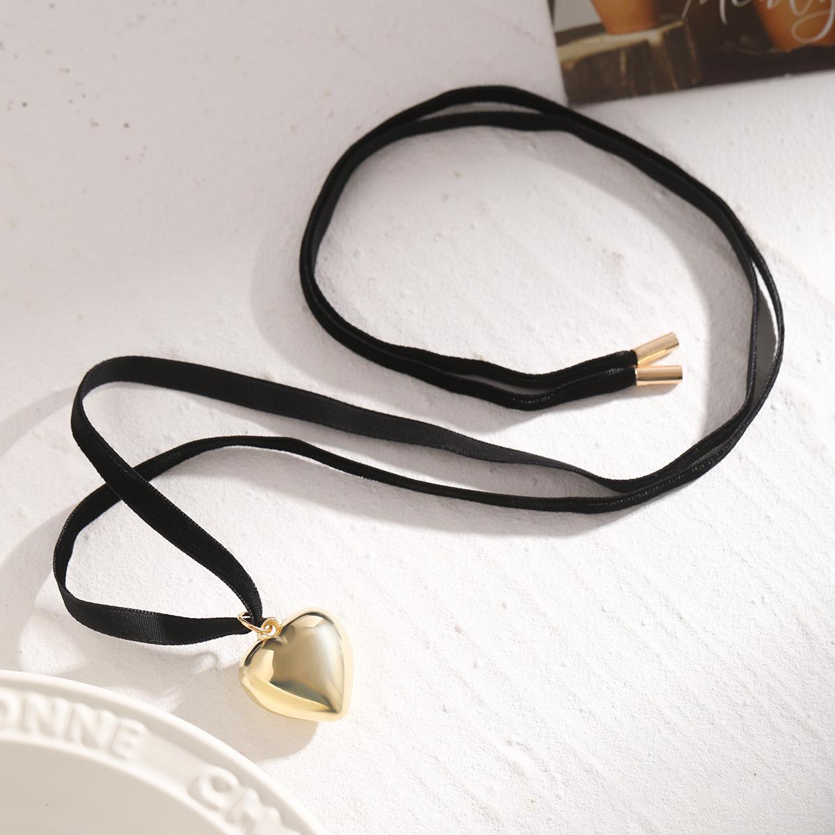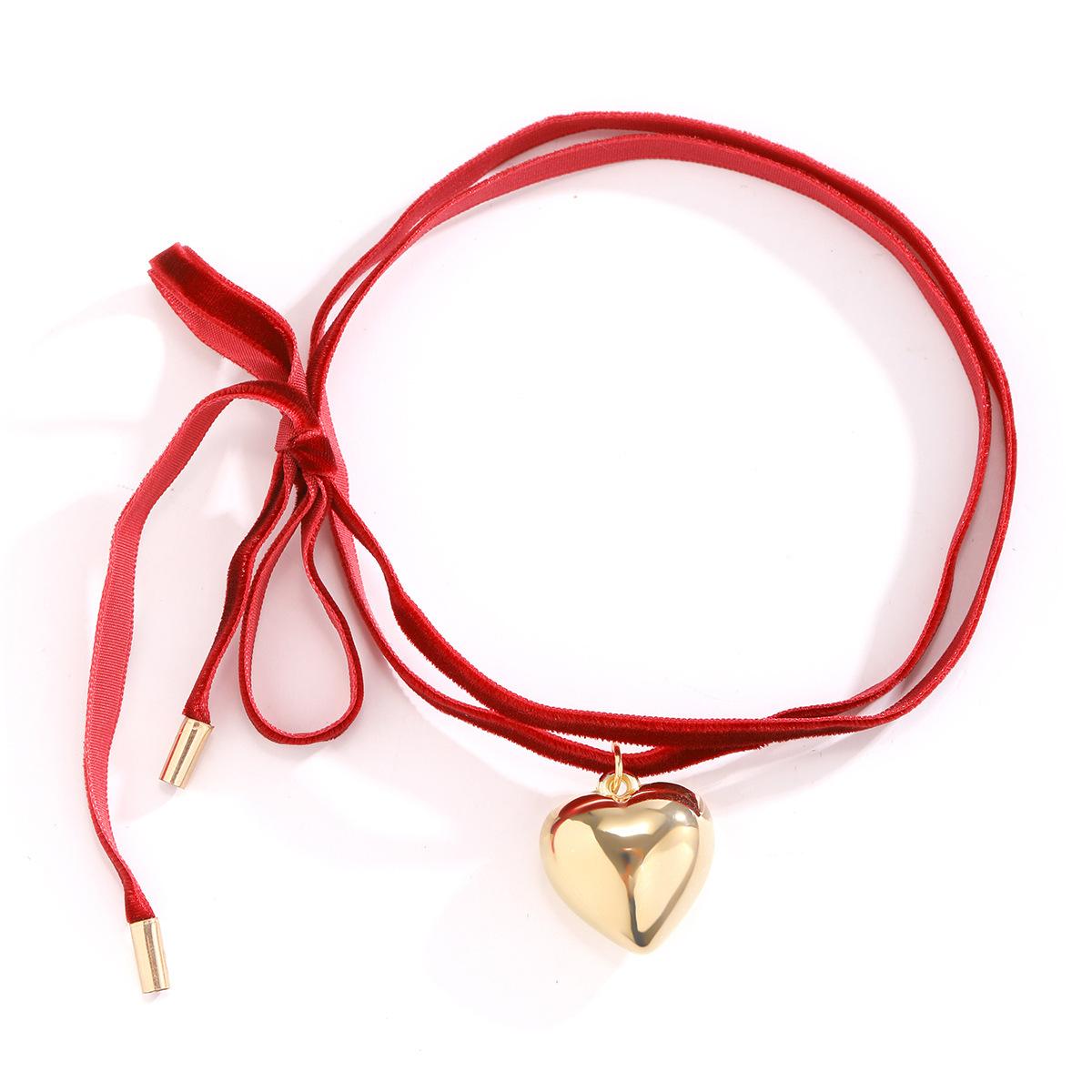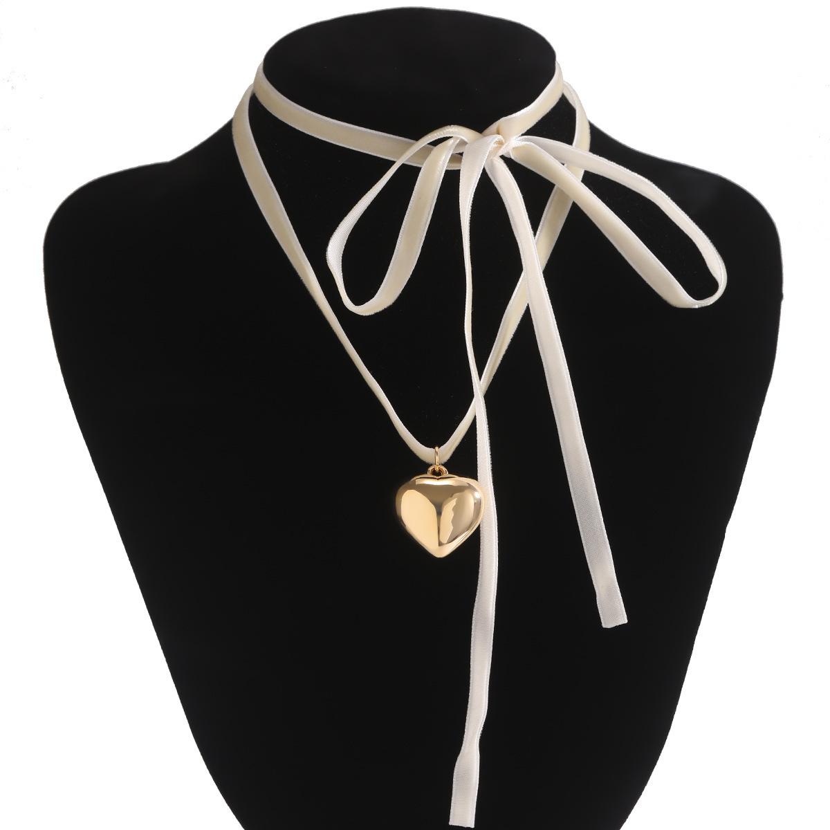 Gargantilla larga con diseño transfronterizo europeo y americano para mujer, collar con colgante en forma de corazón a juego, de franela con cordones