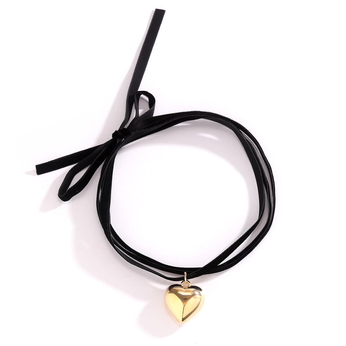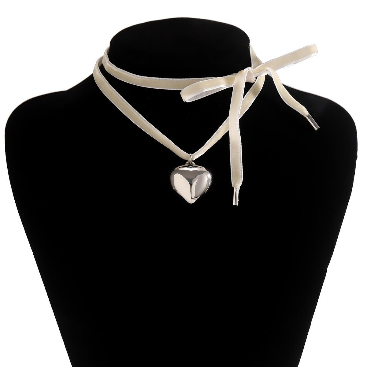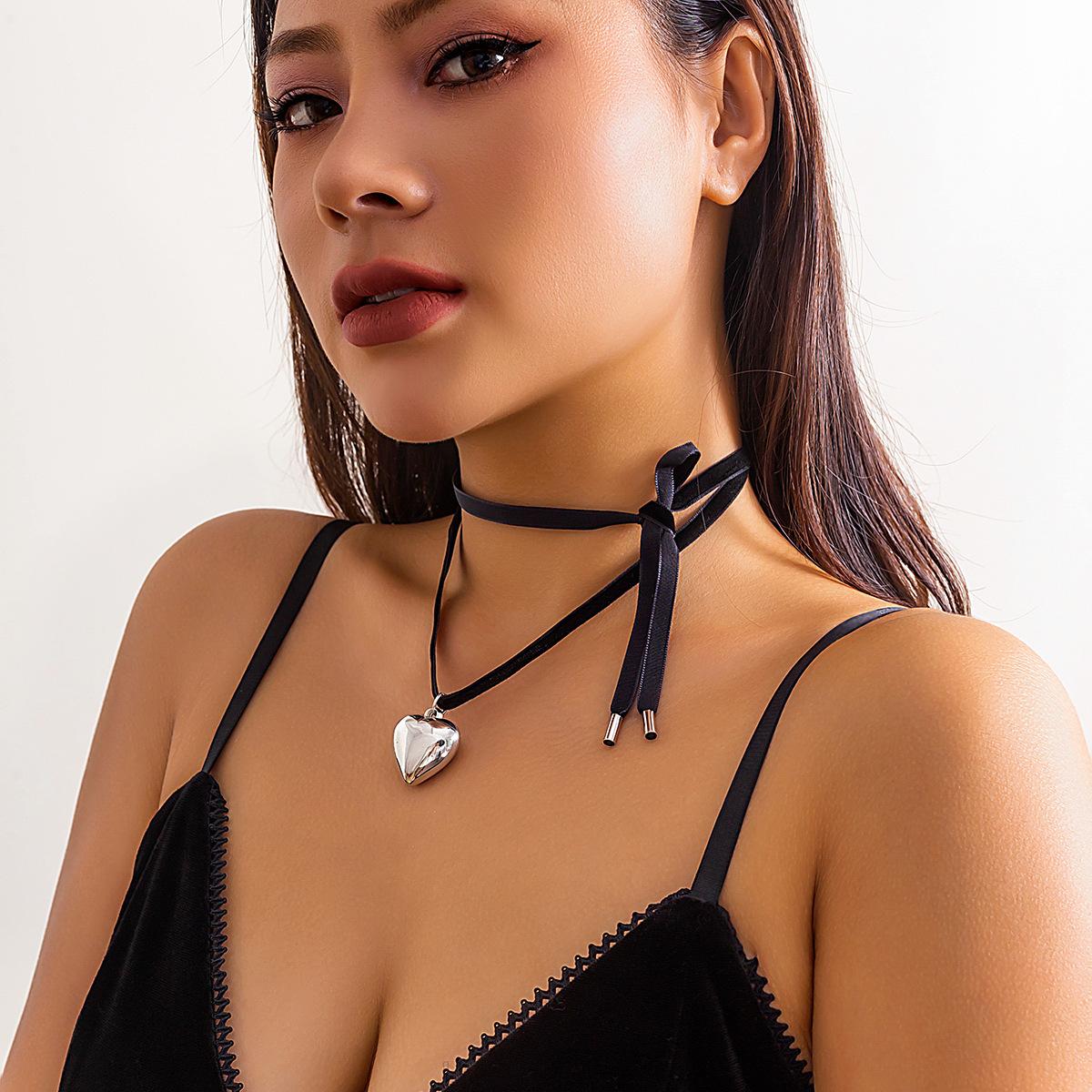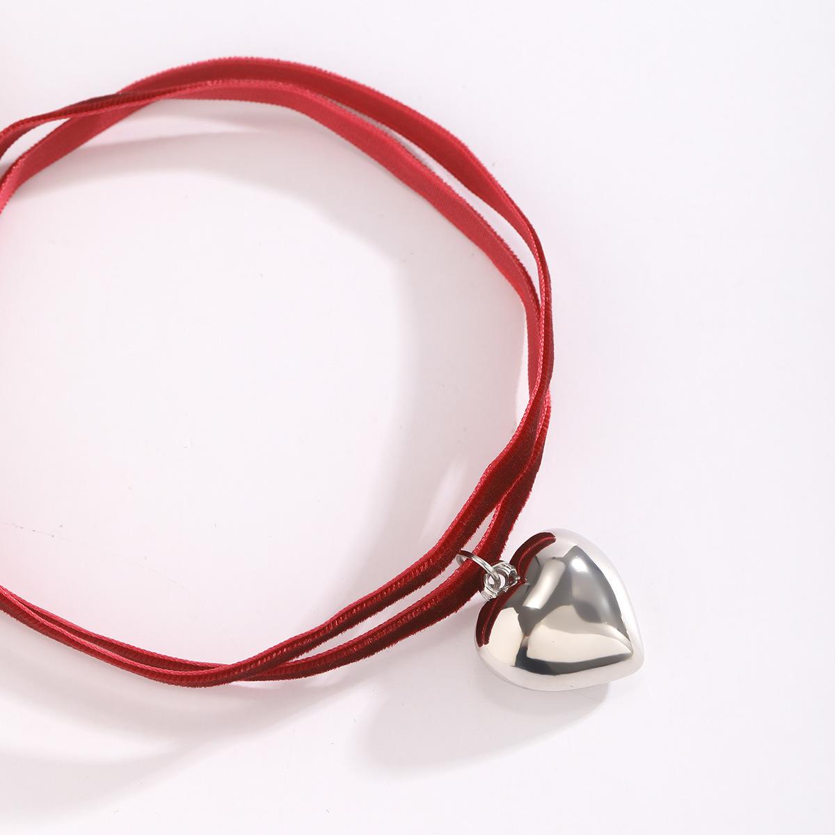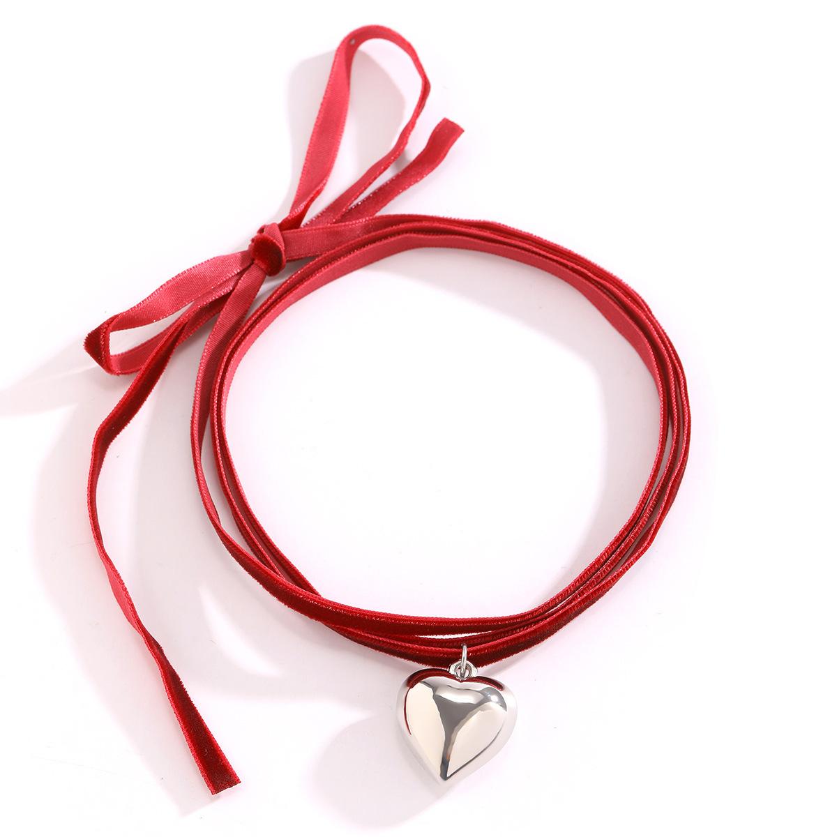 Gargantilla larga con diseño transfronterizo europeo y americano para mujer, collar con colgante en forma de corazón a juego, de franela con cordones