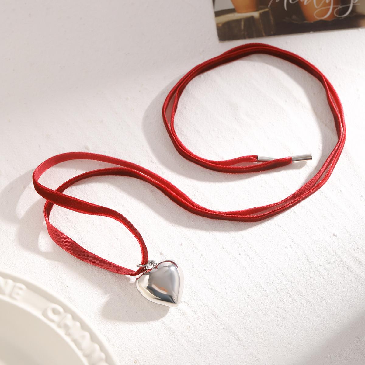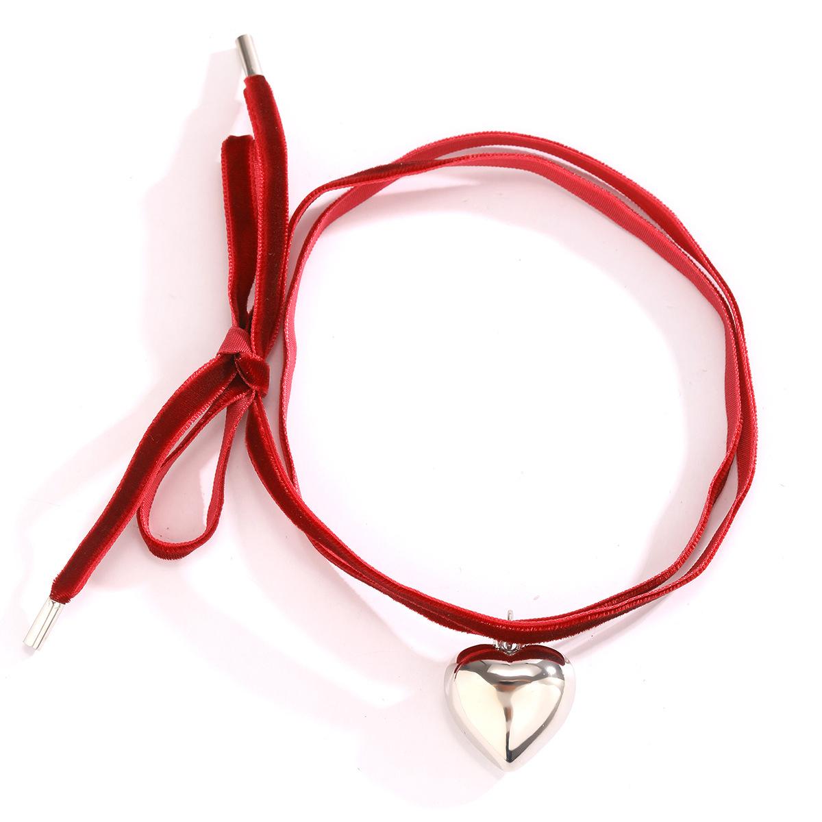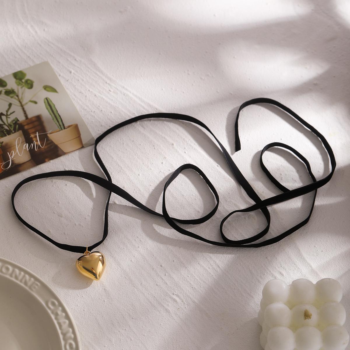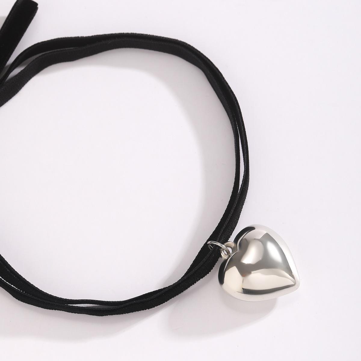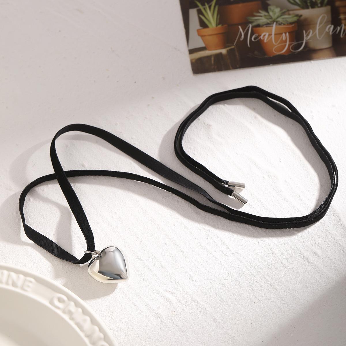 Gargantilla larga con diseño transfronterizo europeo y americano para mujer, collar con colgante en forma de corazón a juego, de franela con cordones