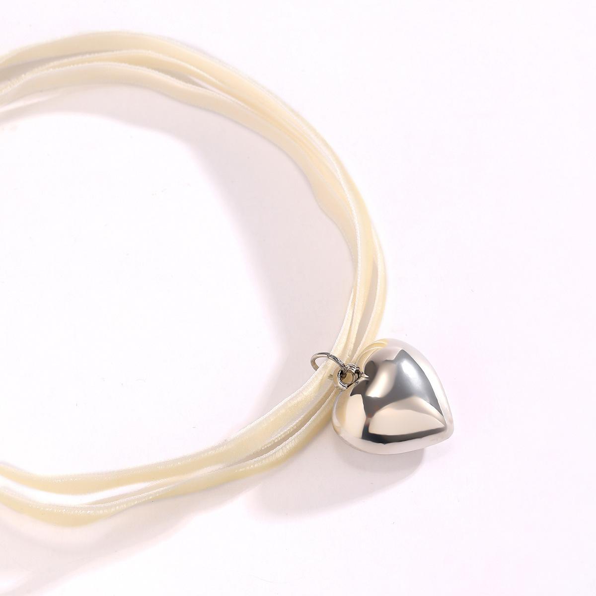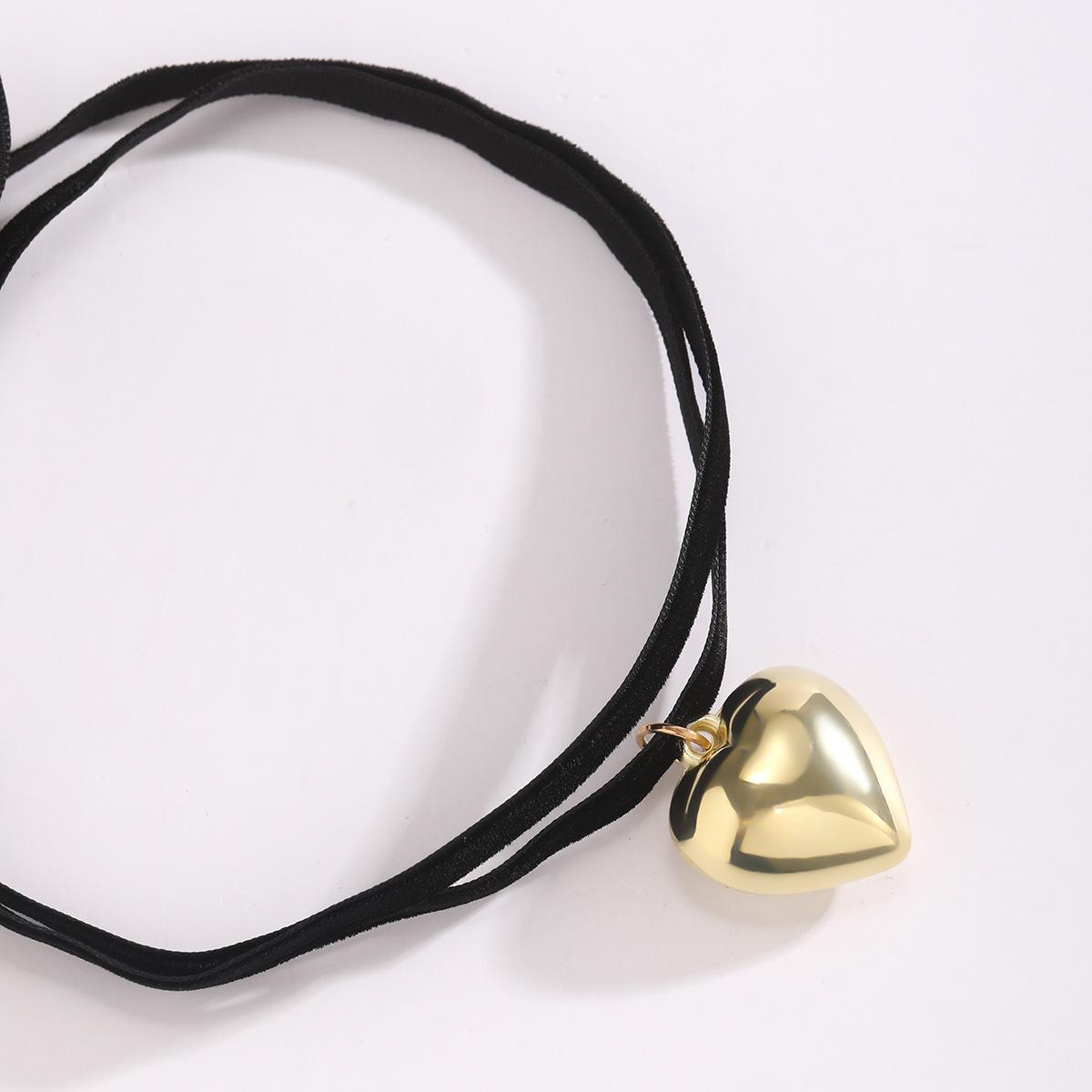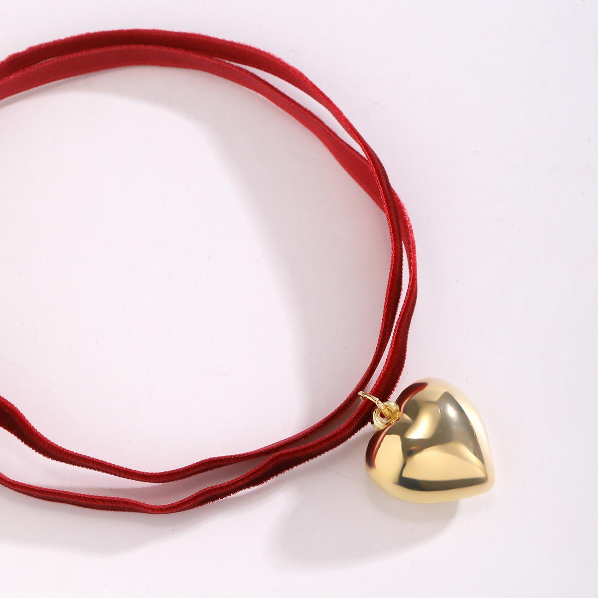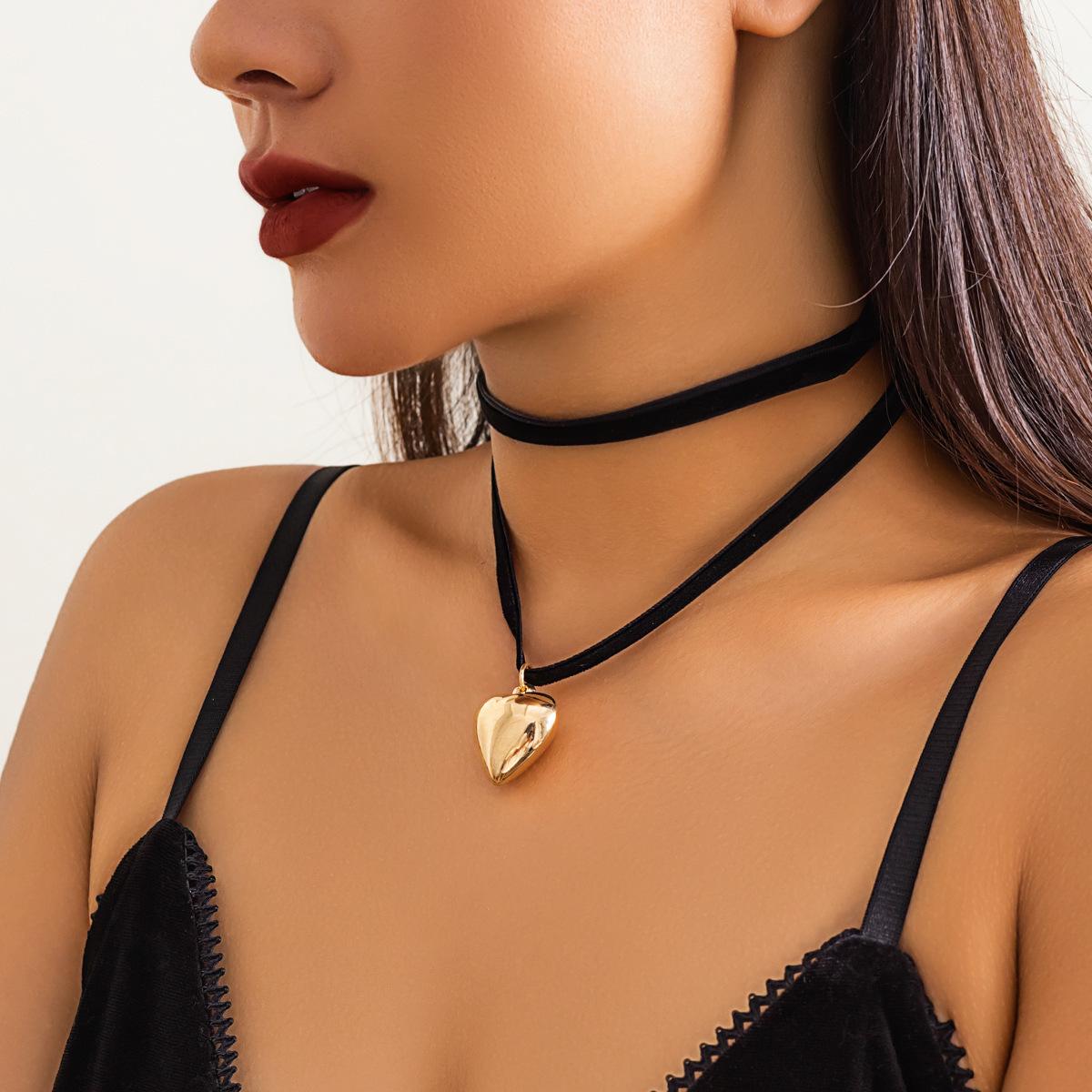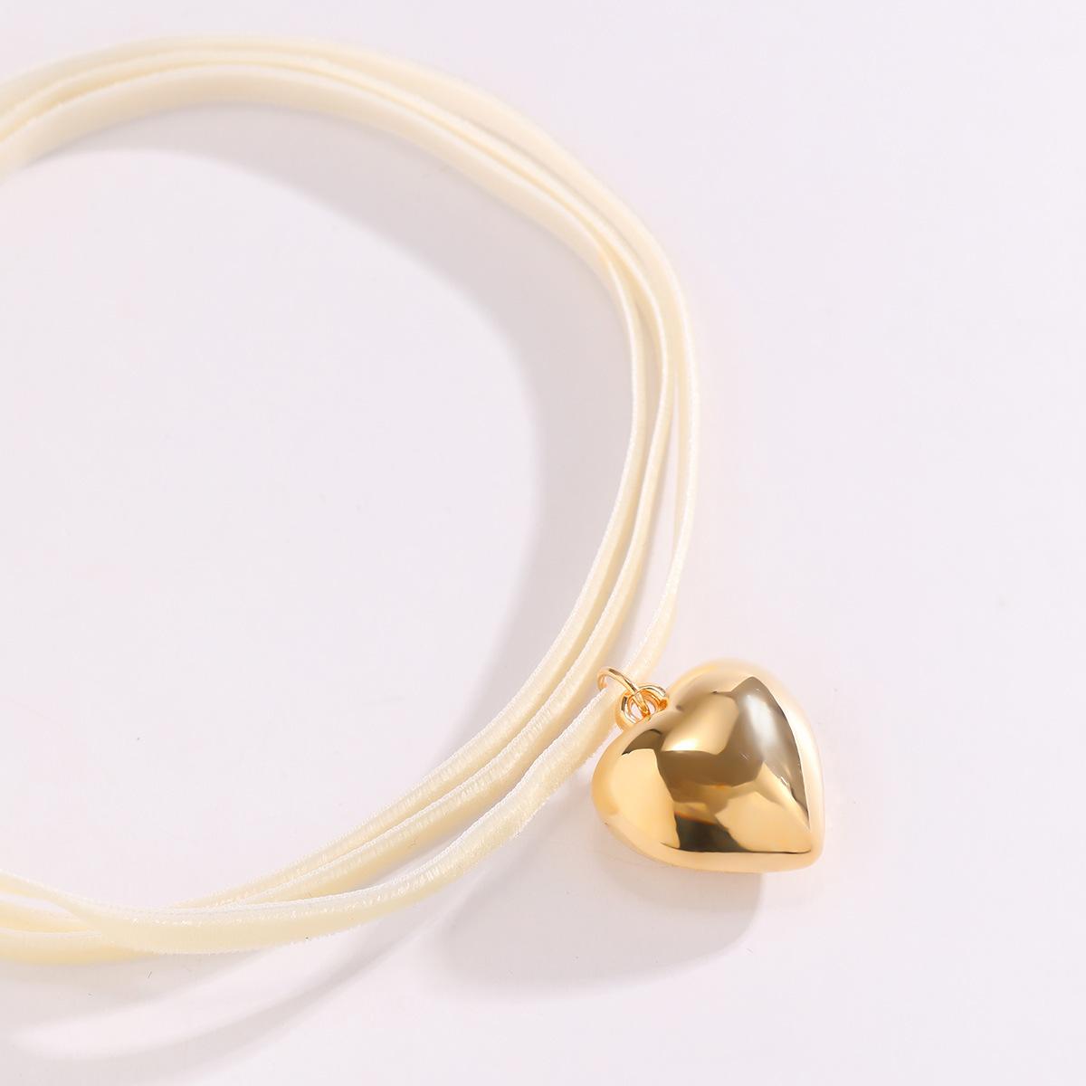Gargantilla larga con diseño transfronterizo europeo y americano para mujer, collar con colgante en forma de corazón a juego, de franela con cordones