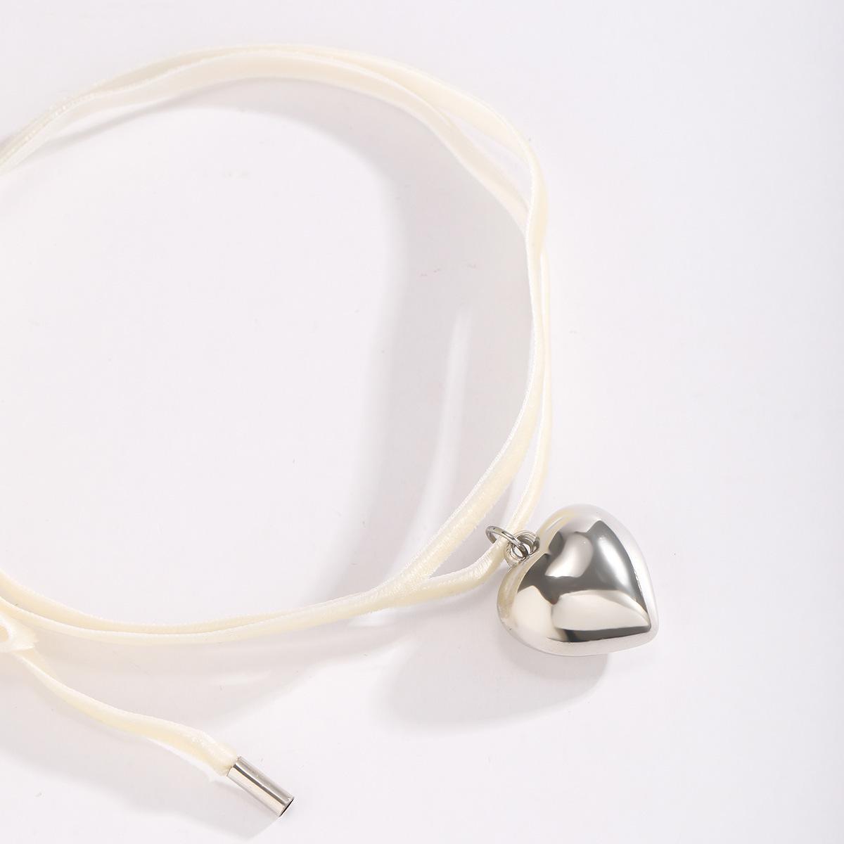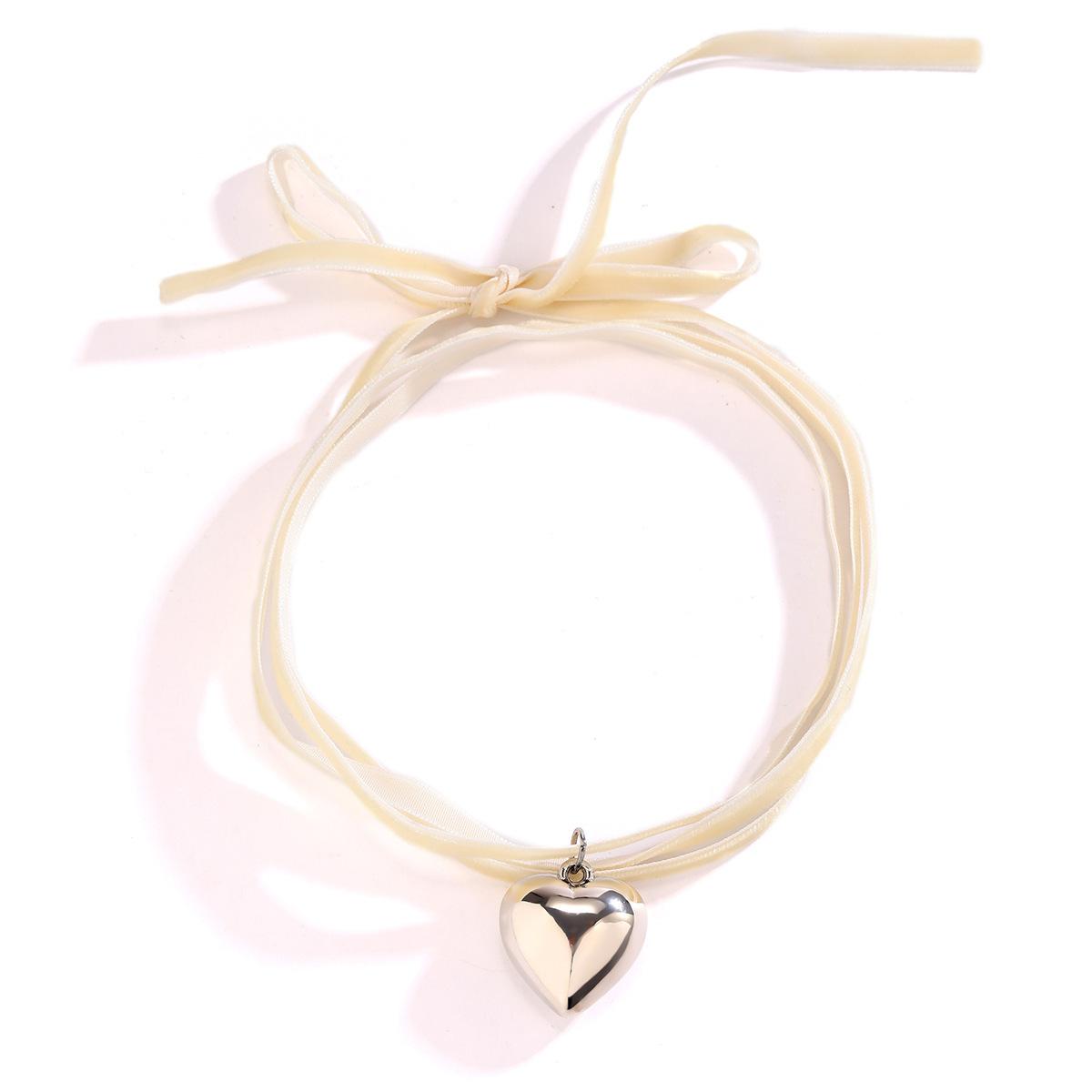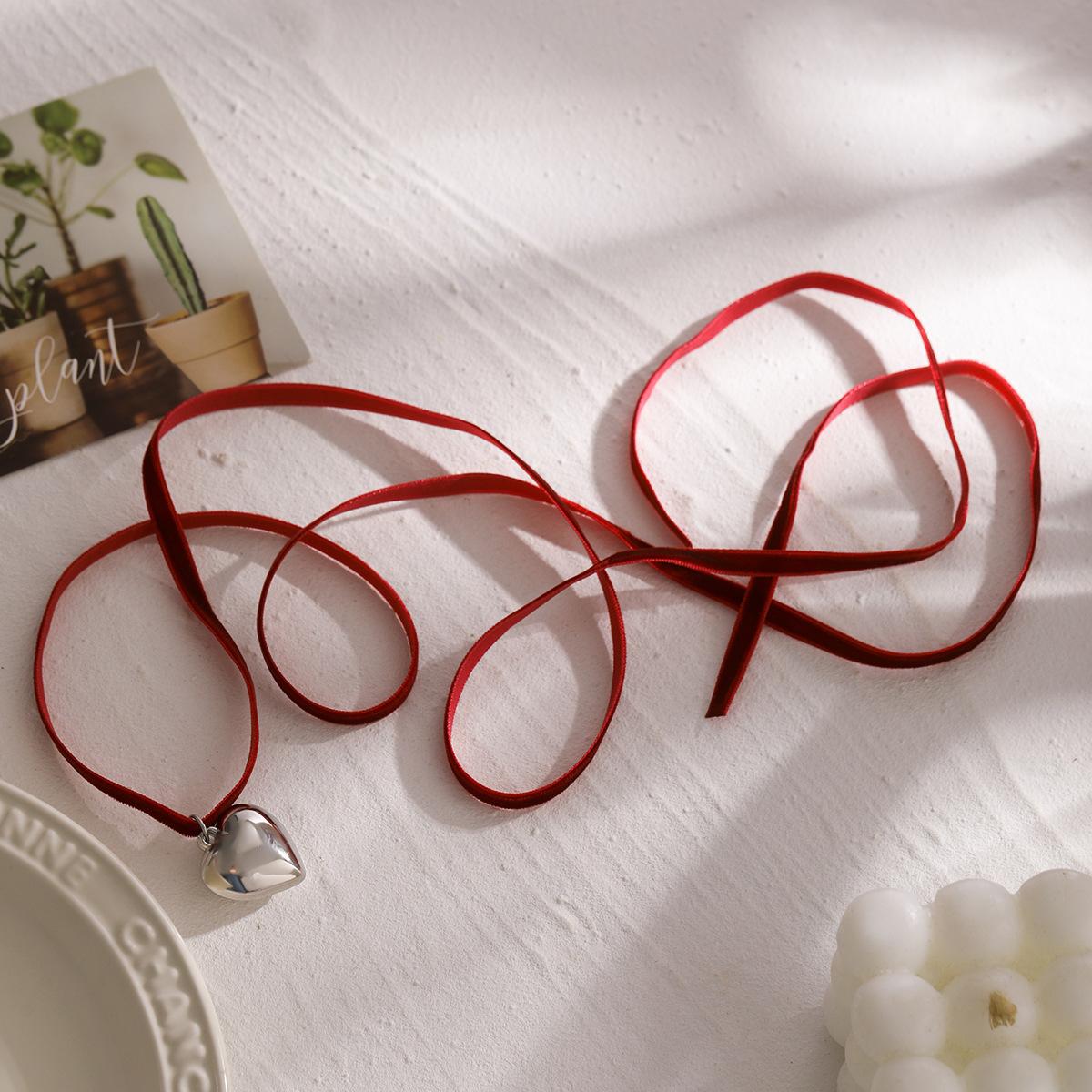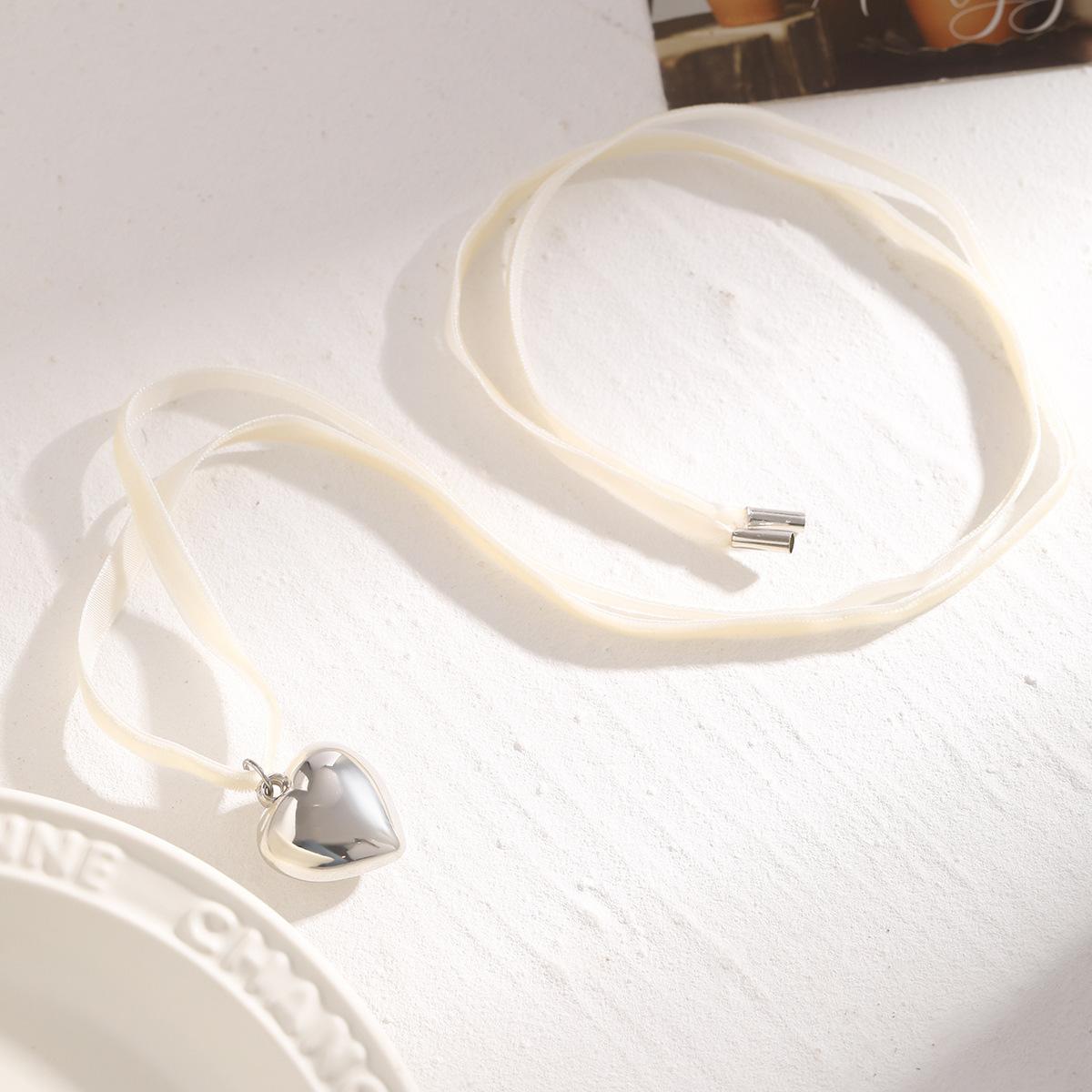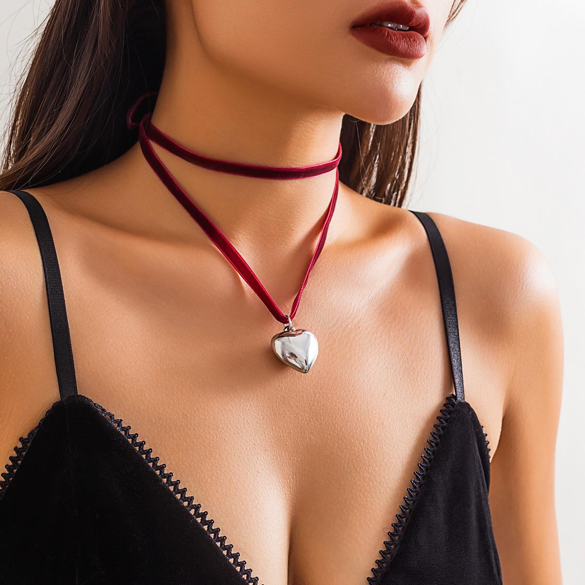 Gargantilla larga con diseño transfronterizo europeo y americano para mujer, collar con colgante en forma de corazón a juego, de franela con cordones