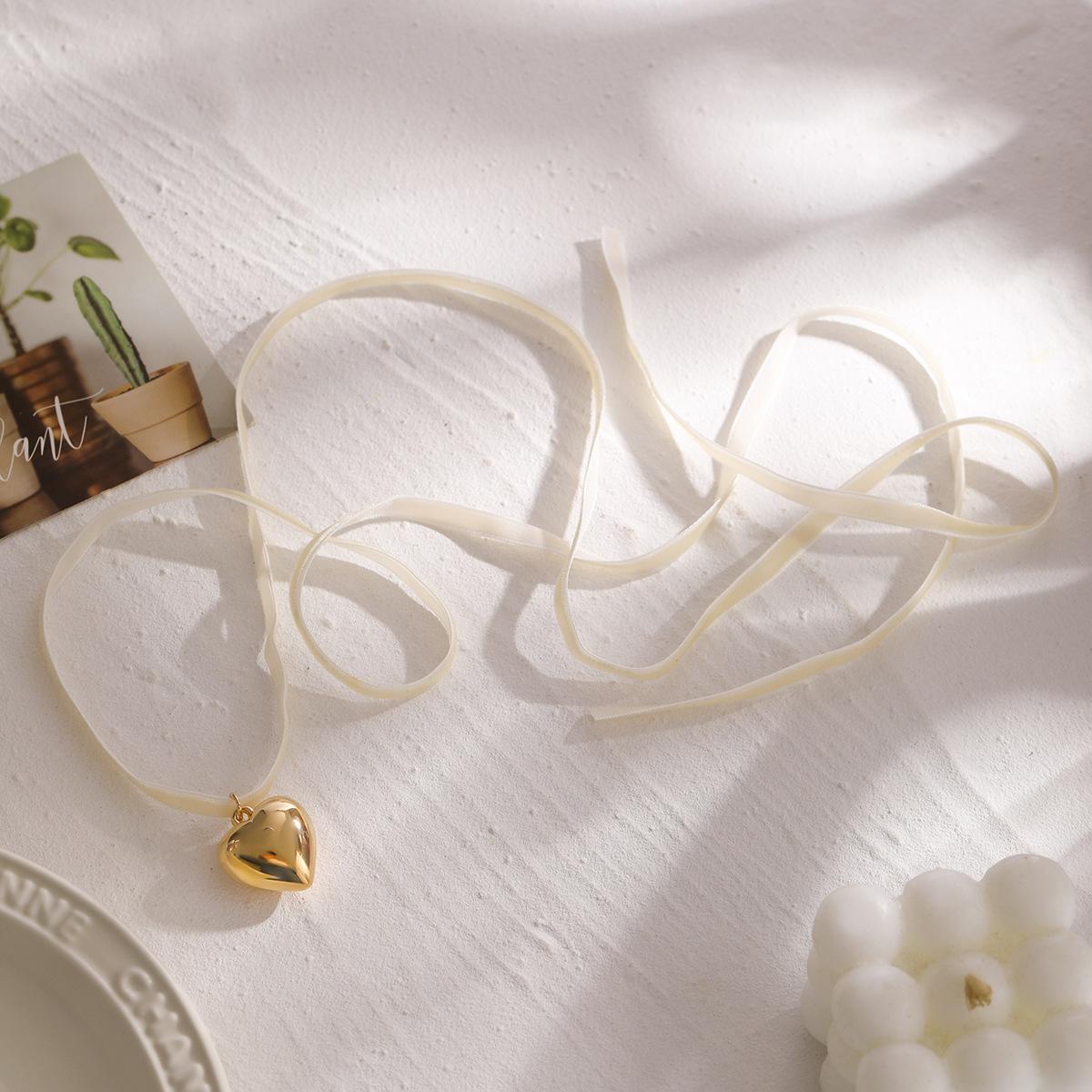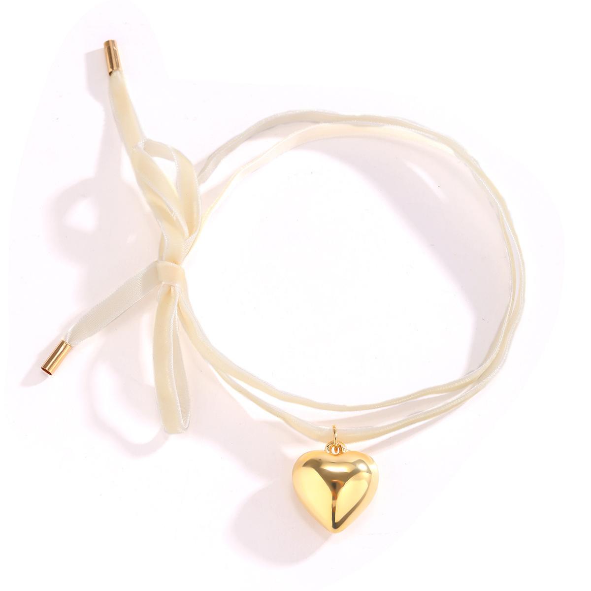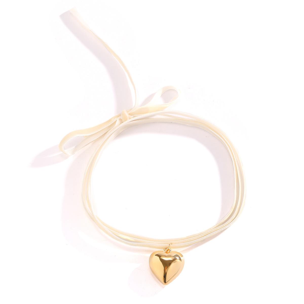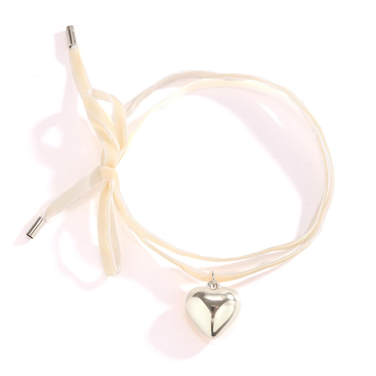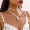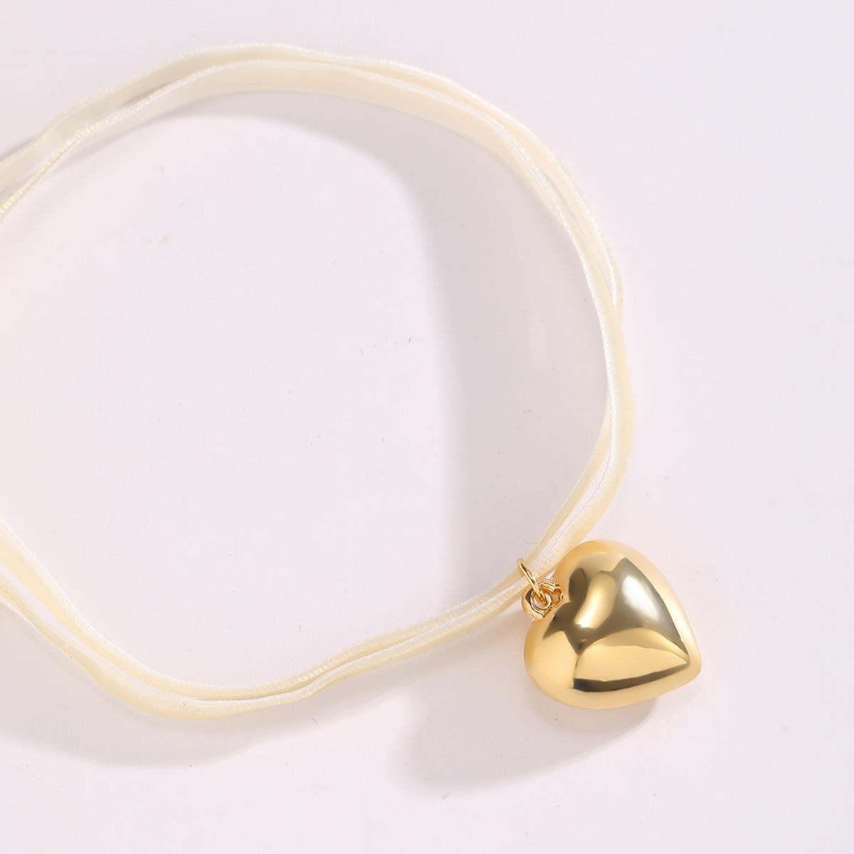 Gargantilla larga con diseño transfronterizo europeo y americano para mujer, collar con colgante en forma de corazón a juego, de franela con cordones