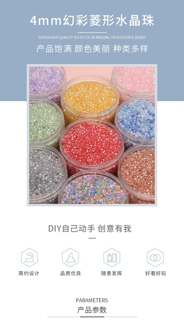 Cuentas de cristal de diamante mágico facetado de 4 mm, cuentas de arroz, accesorios para pulseras y collares hechos a mano.