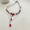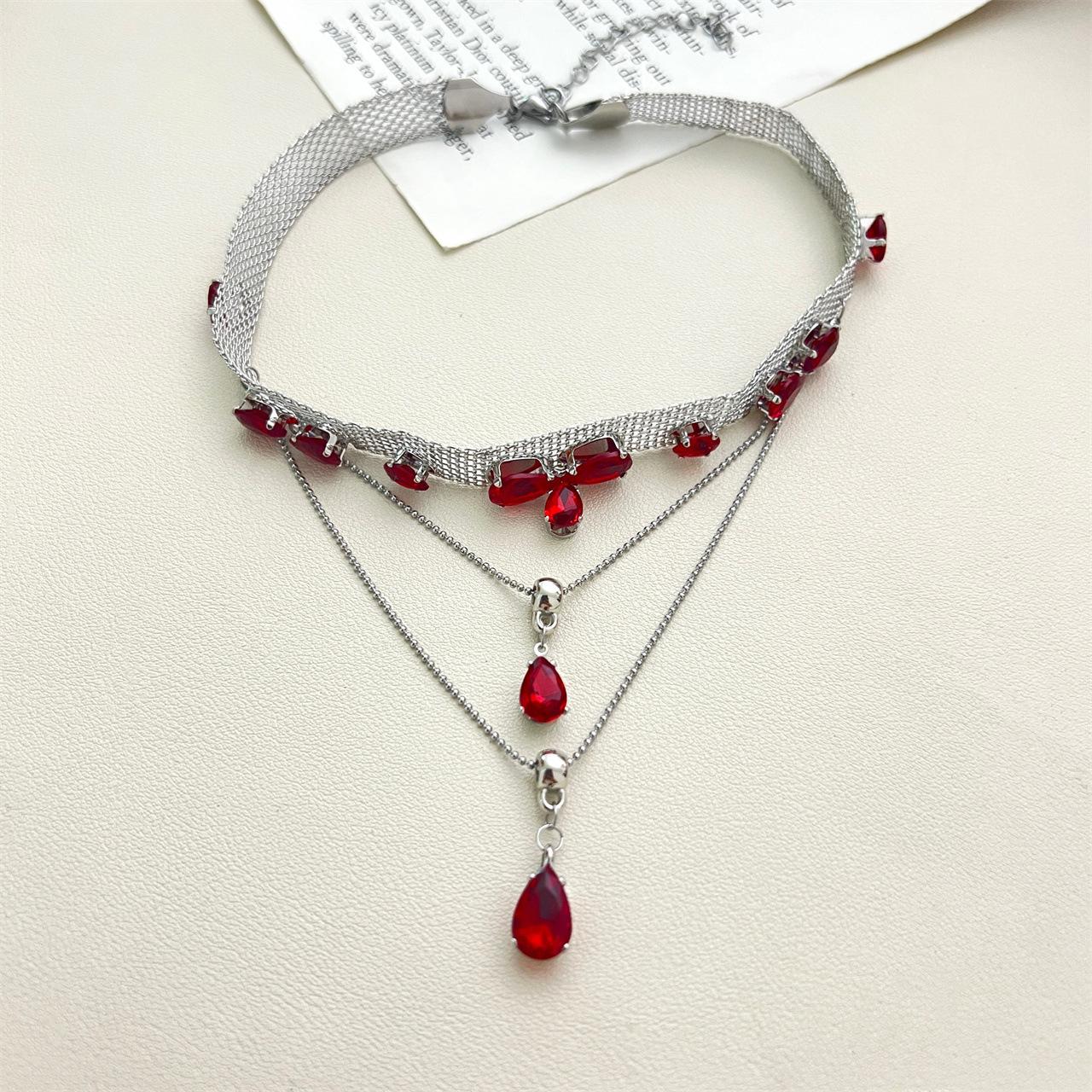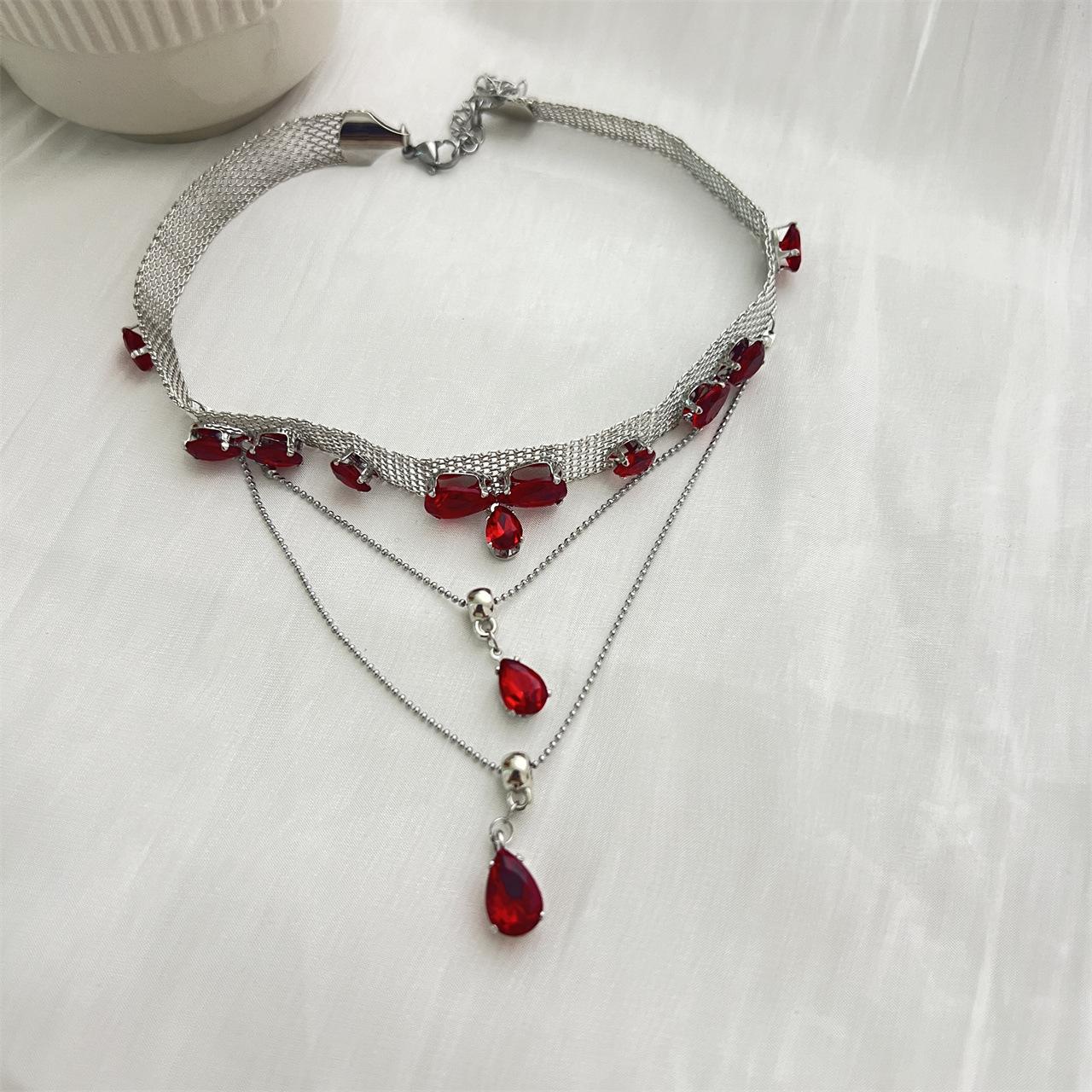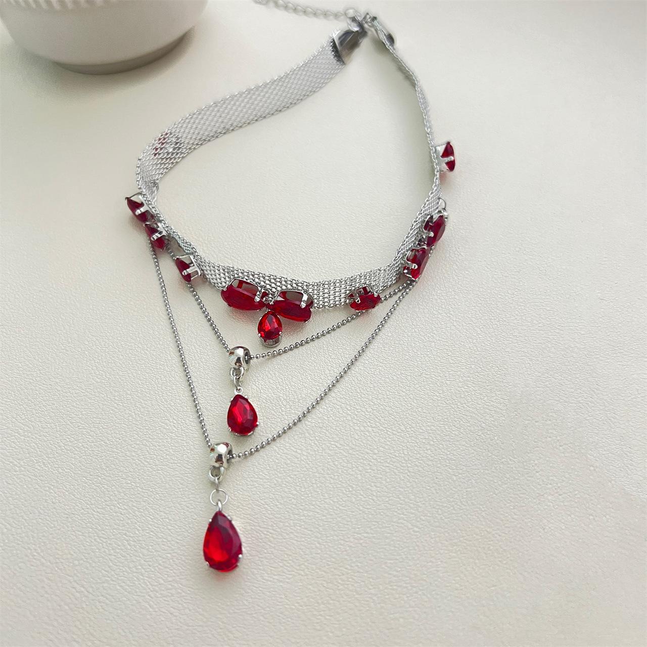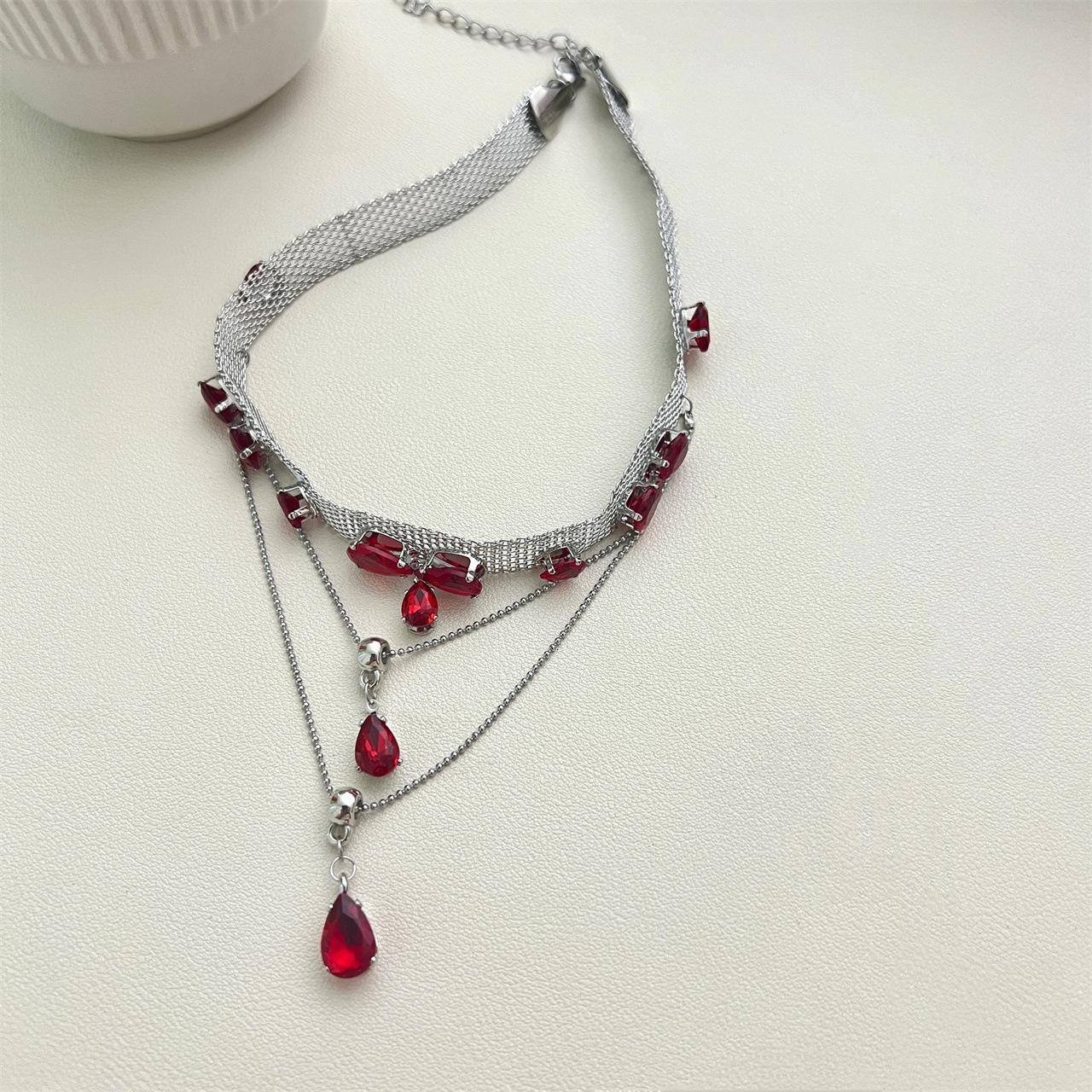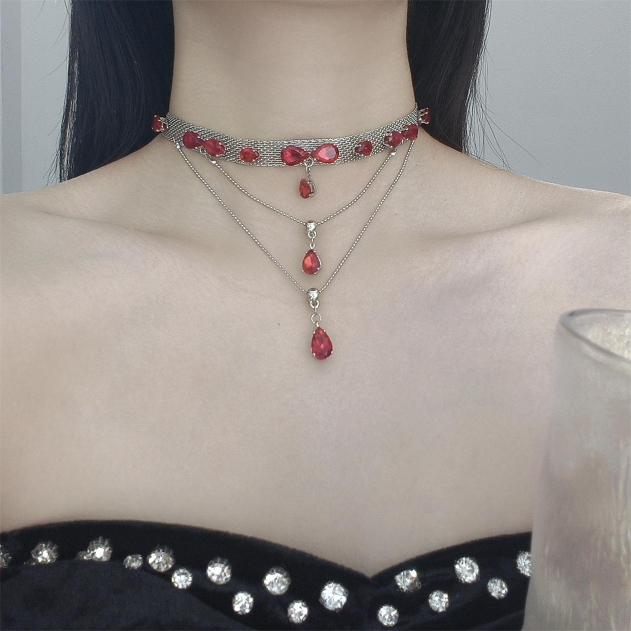 Collar Colgante Rojo Súper Brillante con Borla de Diamantes Completos, Multicapa Apilado Elegante de Alta Gama, Lujoso Ligero, Dulce y Genial, Gargantilla