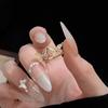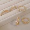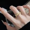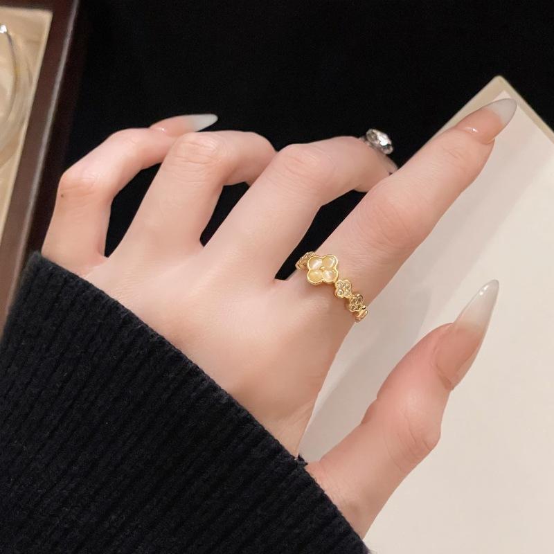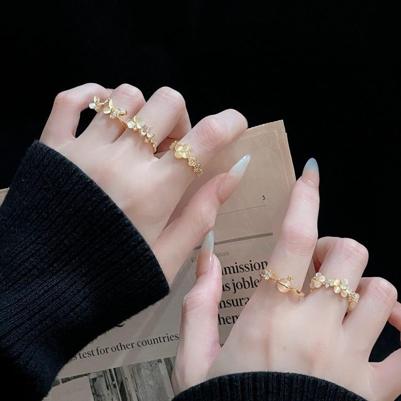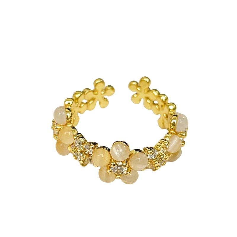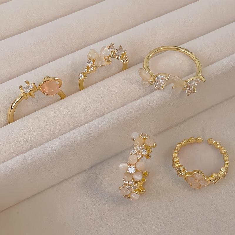Anillo Abierto de la Serie Ojo de Gato de Imitación de Lujo Ligero Exquisito Dorado con Diseño de Nicho de Flor y Anillo de Mariposa para Mujer