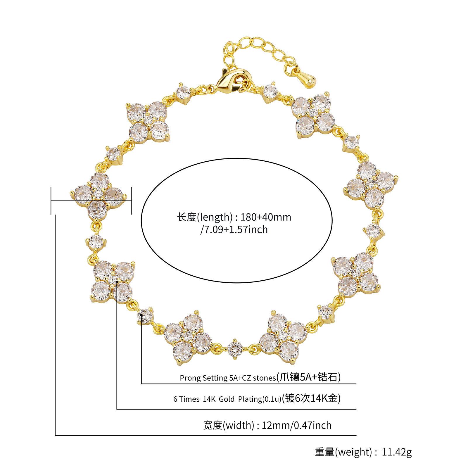 Pulsera Trébol de Cuatro Hojas de Industria Pesada de Diamantes Completos para Mujer Lujo Ligero Flash Zirconio Sentido de Alta Gama Pulsera Nicho Joyería en stock Venta al por Mayor de Fábrica