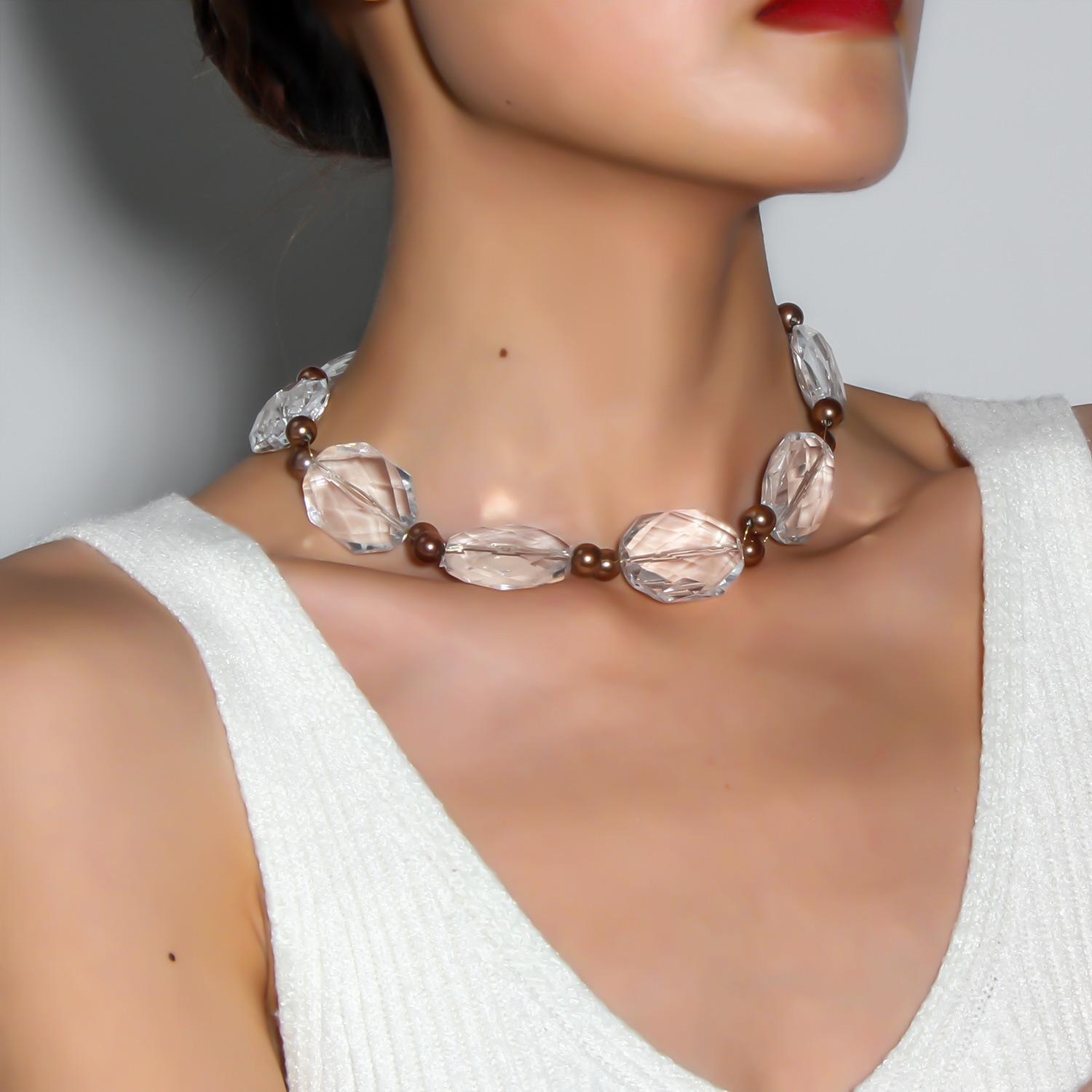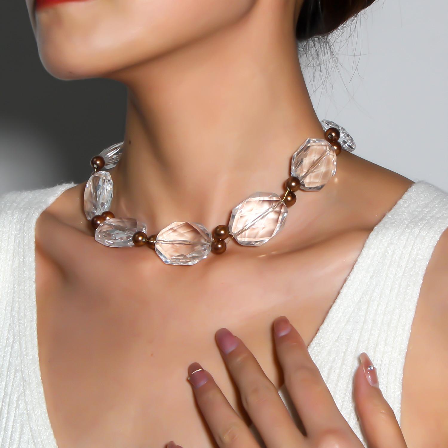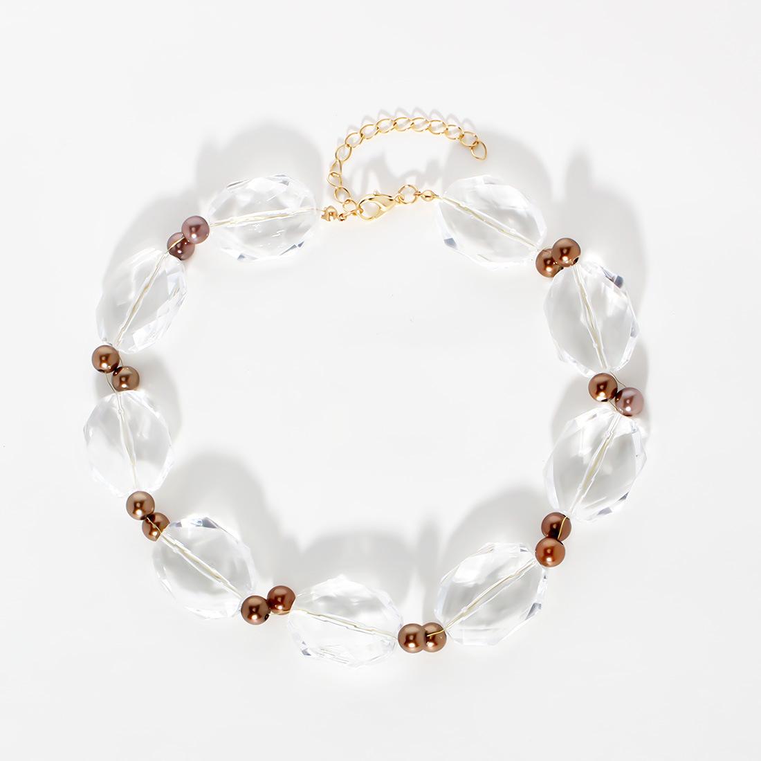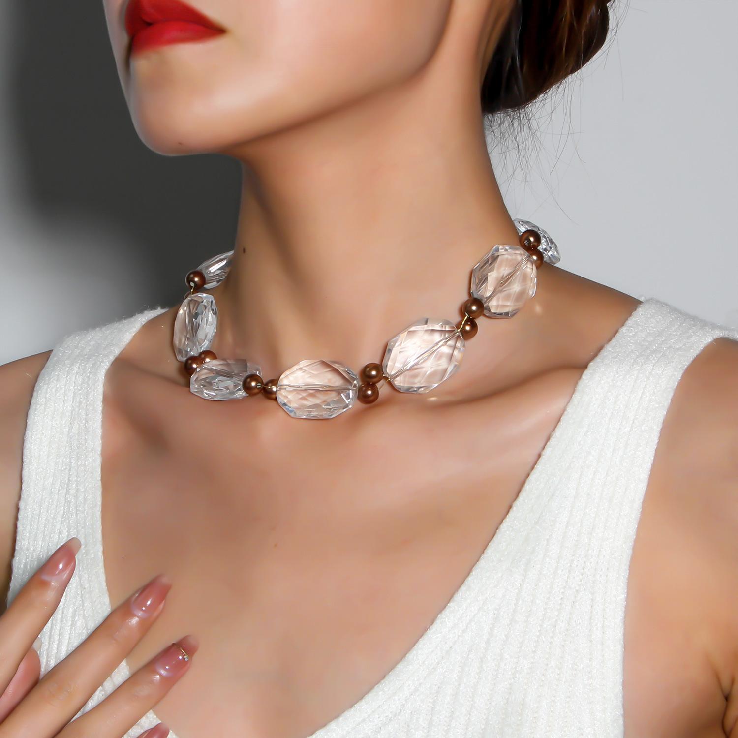 Collar de cristal blanco retro europeo y americano con cadena clavícula NK23690.