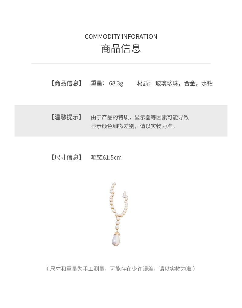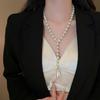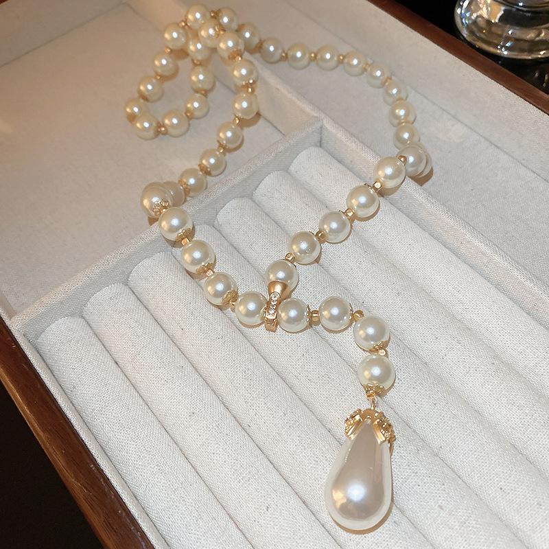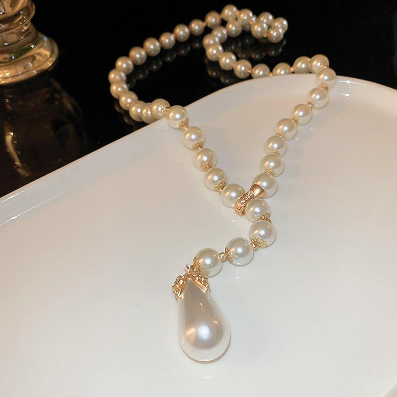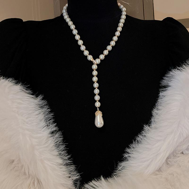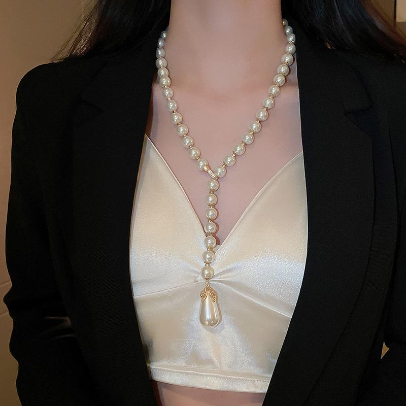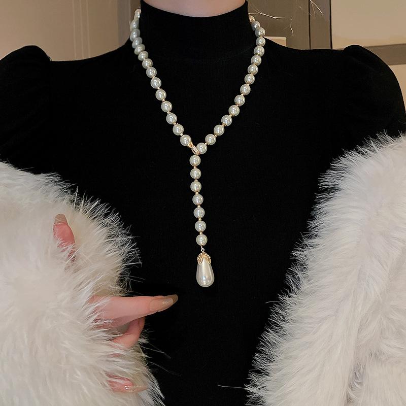 Collar de perlas con forma de gota de agua incrustado de diamantes, cadena para suéter de temperamento de lujo ligero francés, explosiones en vivo, joyería de otoño e invierno, mujeres, venta al por mayor